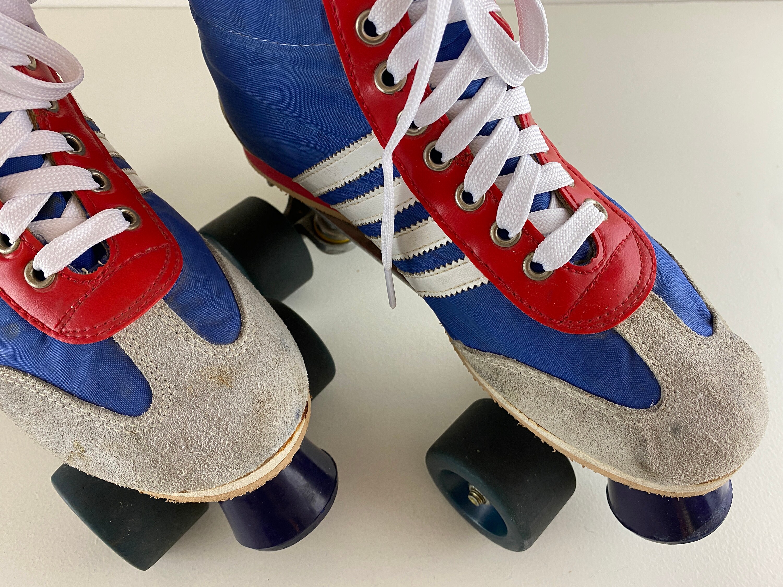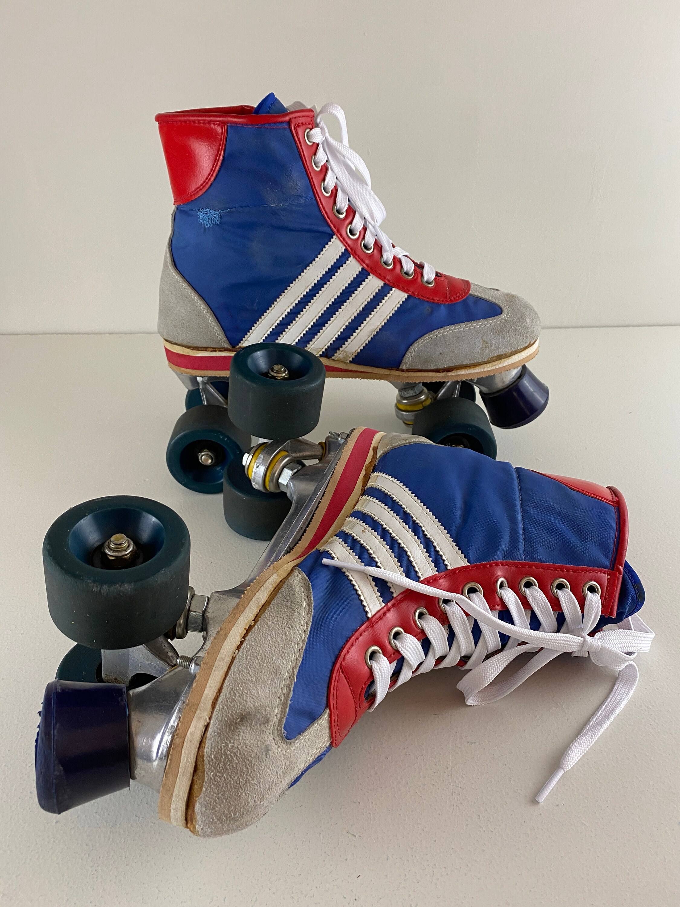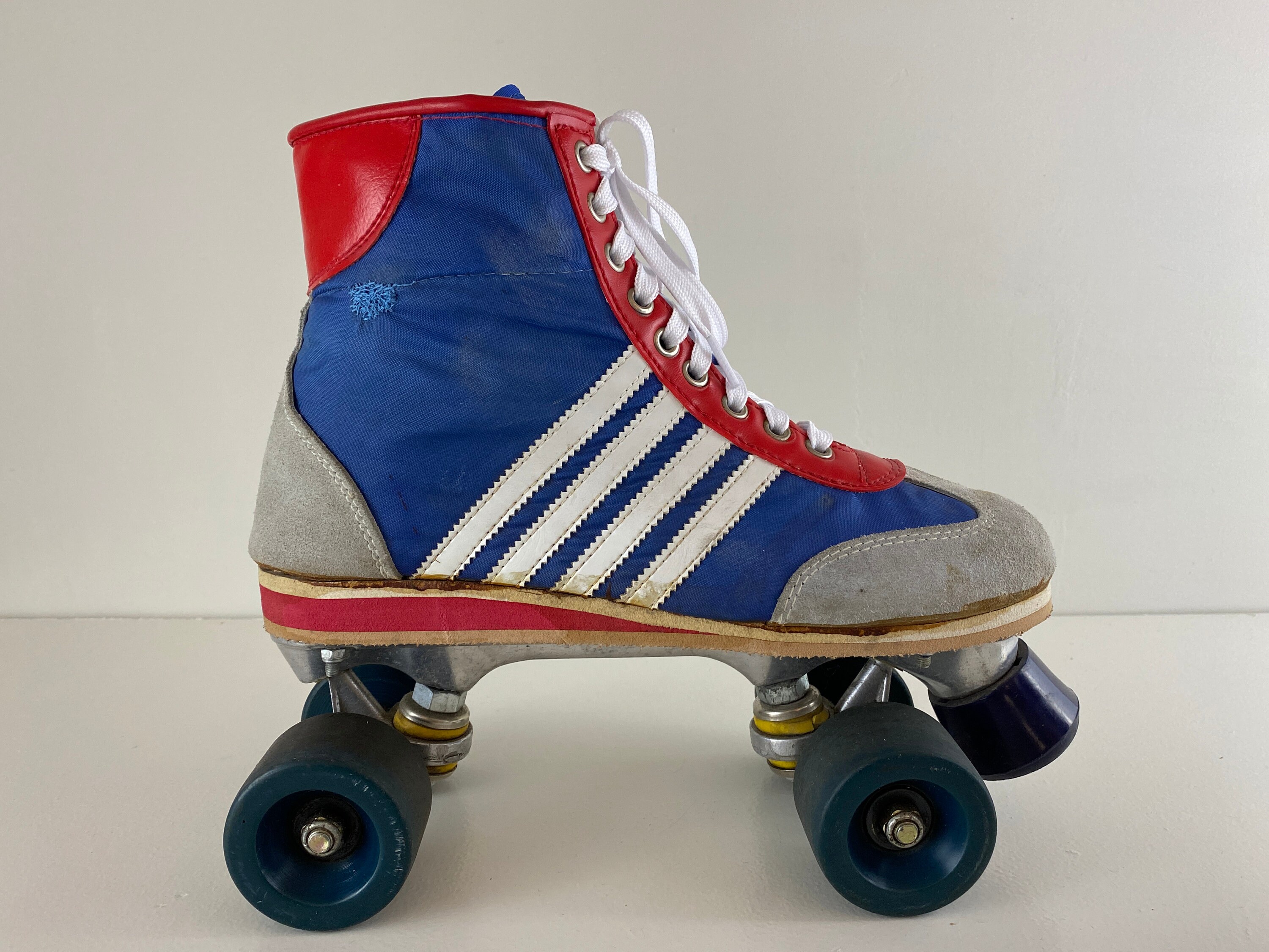 Vintage 70s Retro Roller skates red, grey, white and blue, Size: EU 42 USwoman 9.5, USman 8.5, UK 8.0