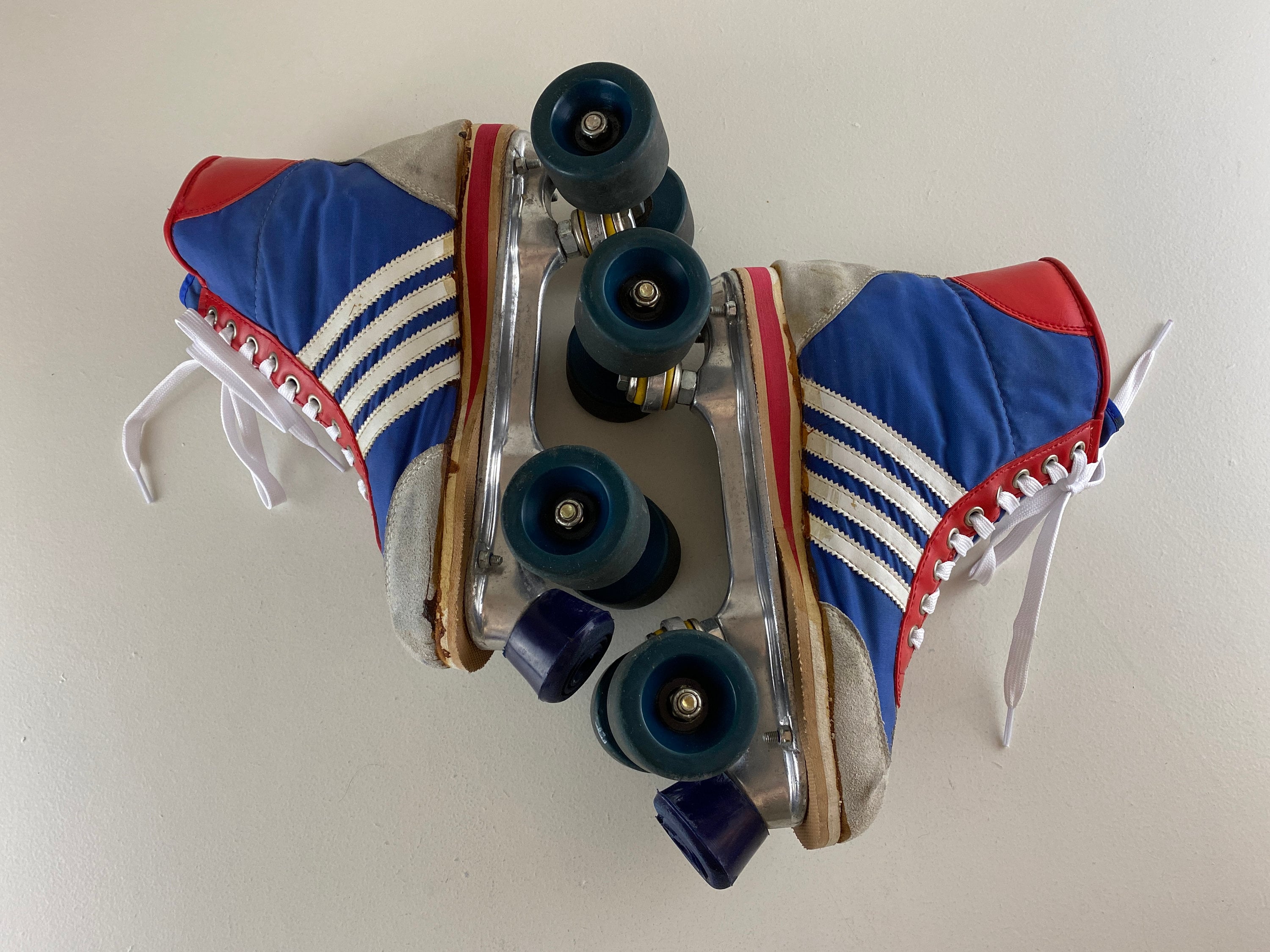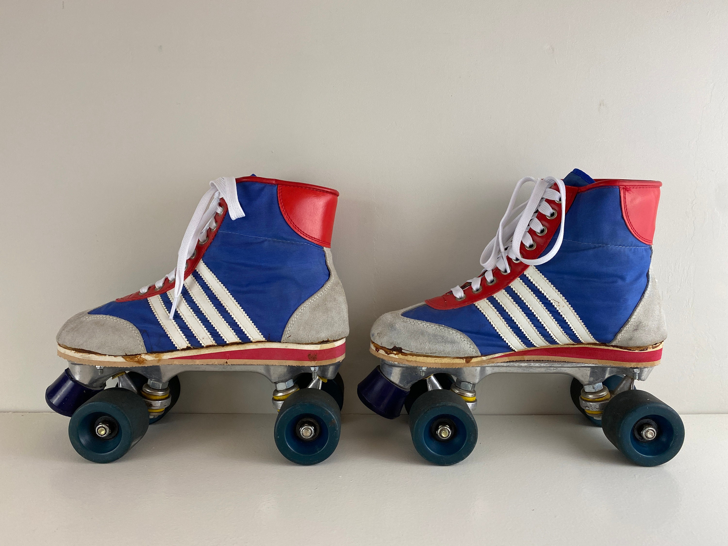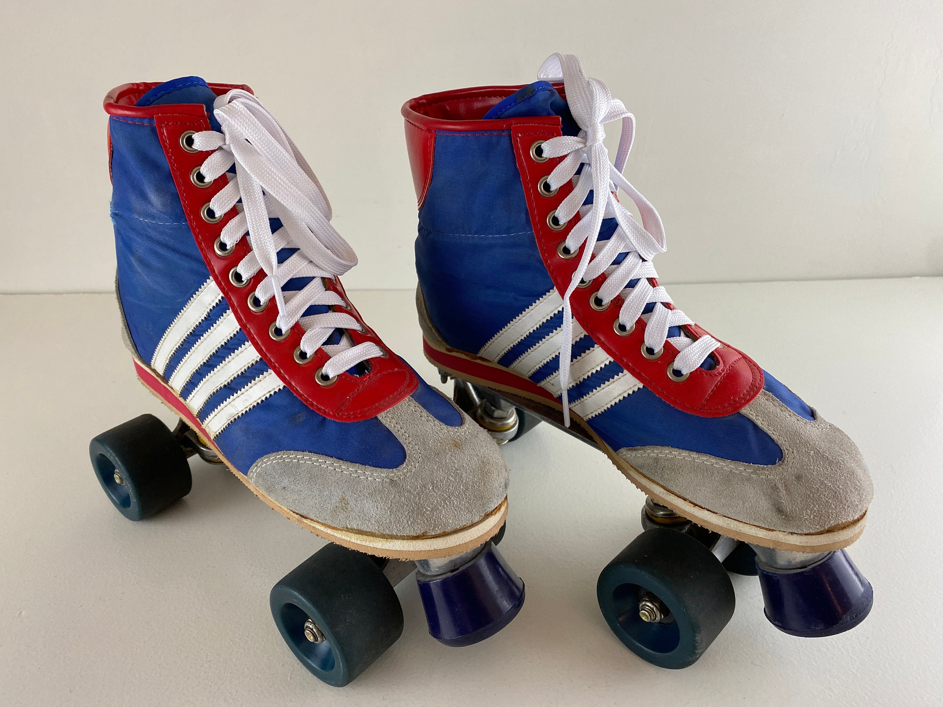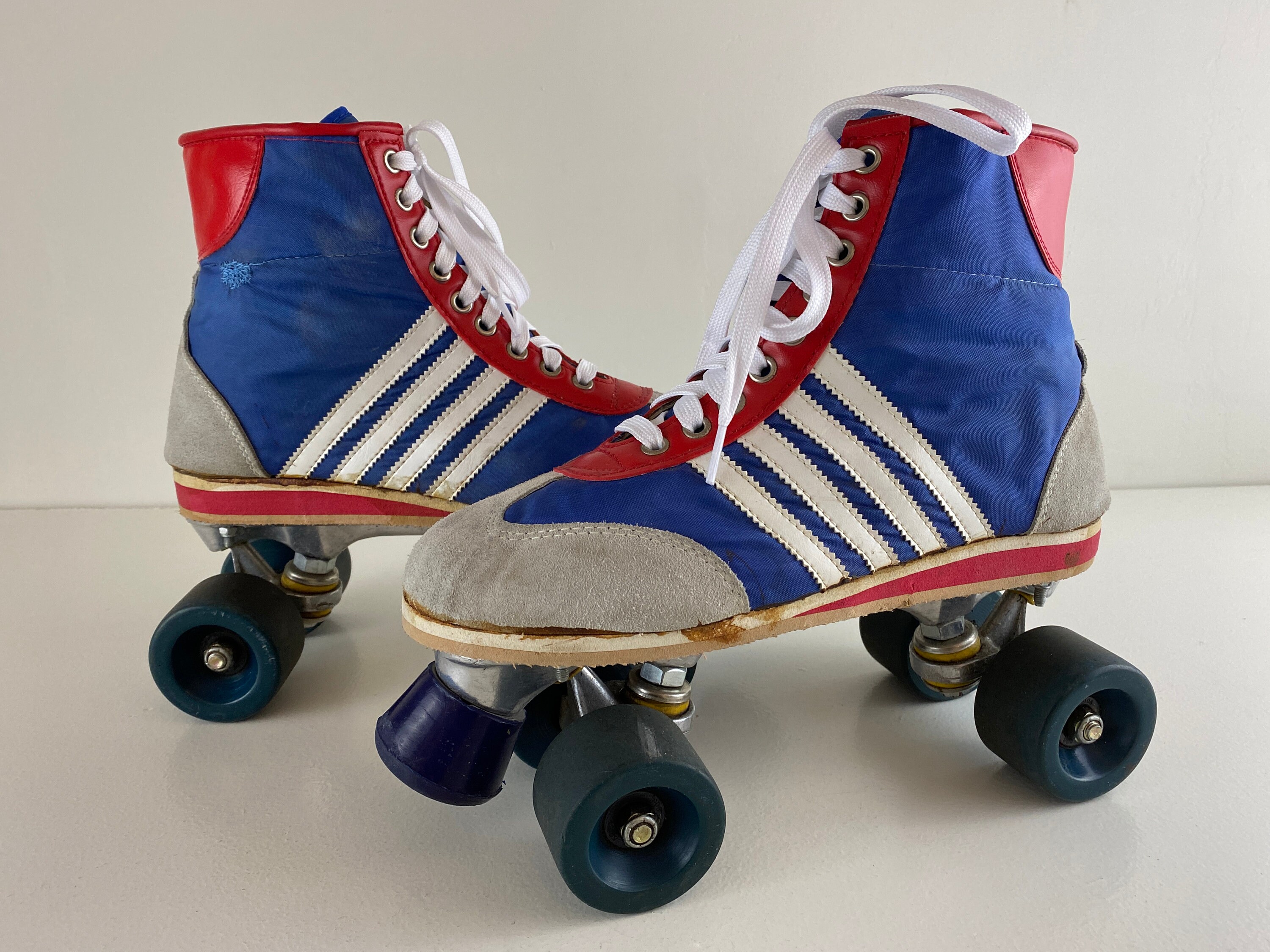 Vintage 70s Retro Roller skates red, grey, white and blue, Size: EU 42 USwoman 9.5, USman 8.5, UK 8.0