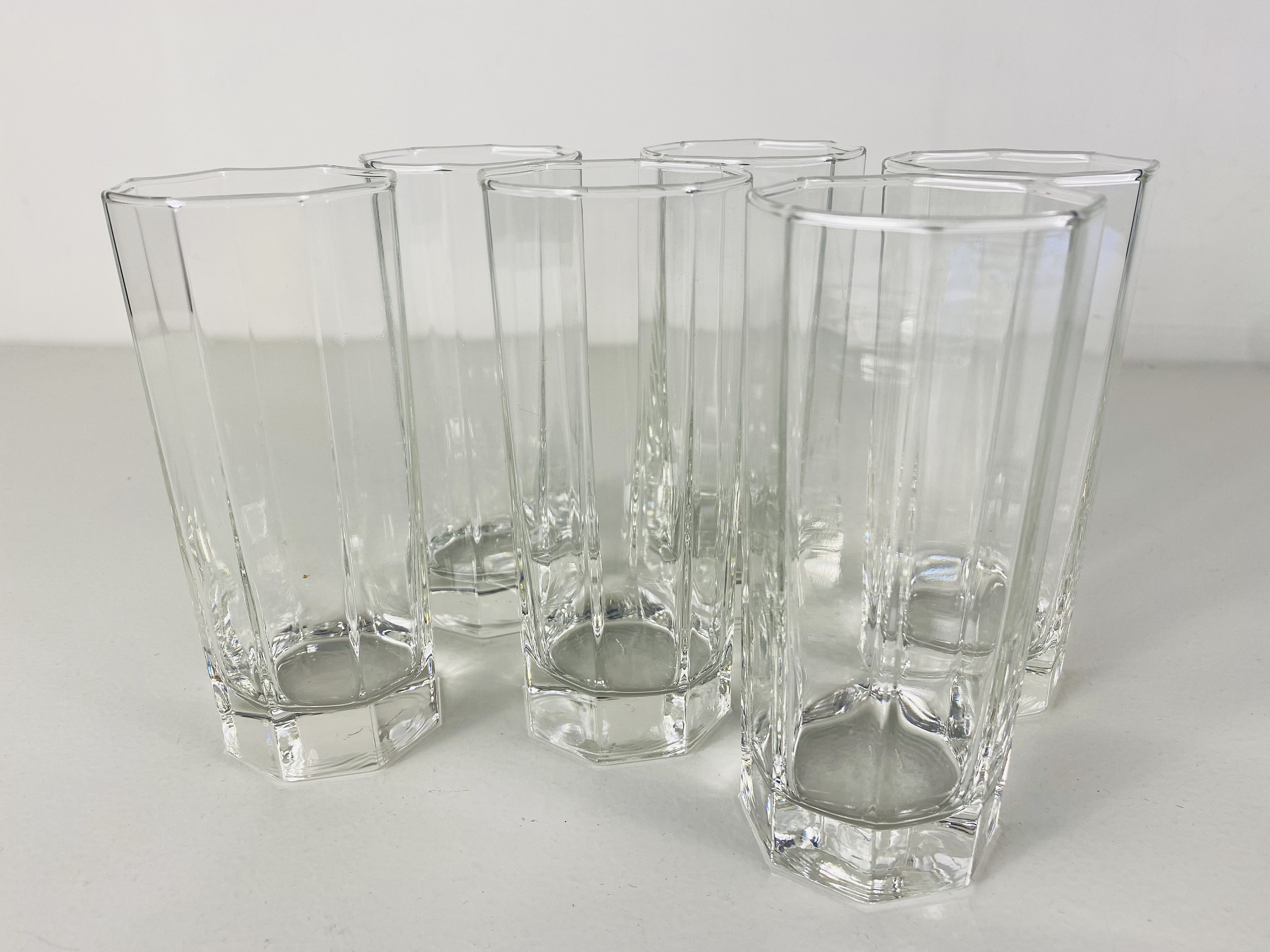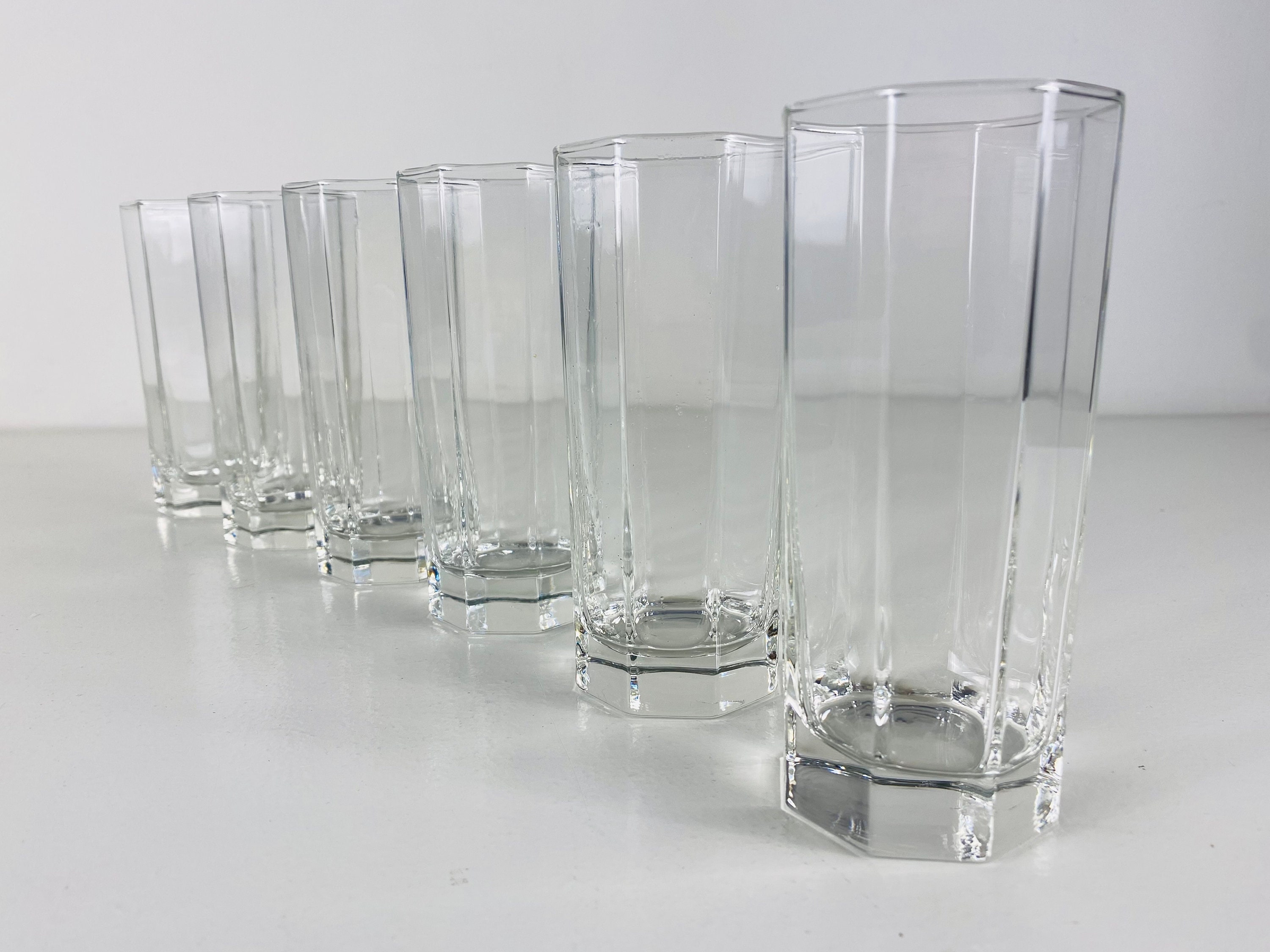 6 Luminarc Octime drinking glasses, lemonade glasses, water glasses, long drink glasses, Luminarc France from the 1980's.