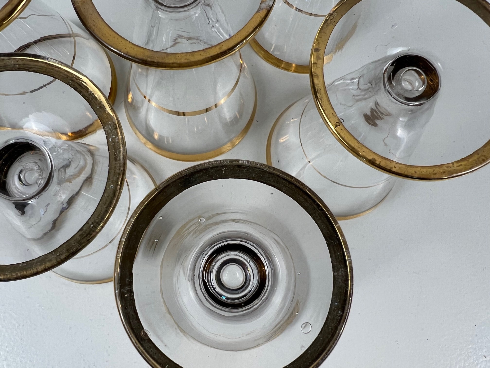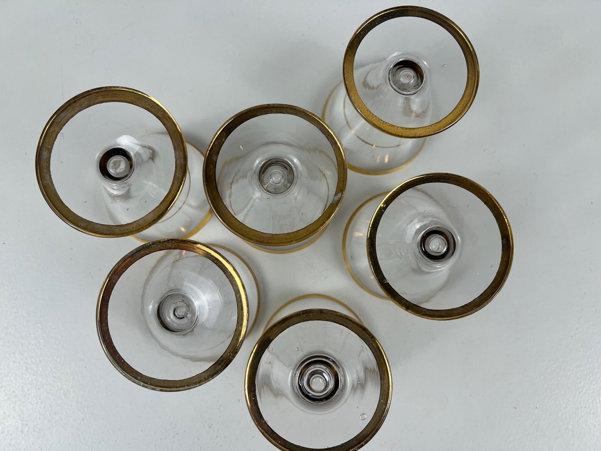 The glasses are in good vintage condition with normal signs of use. The gold rims have faded a bit here and there. See the photos.