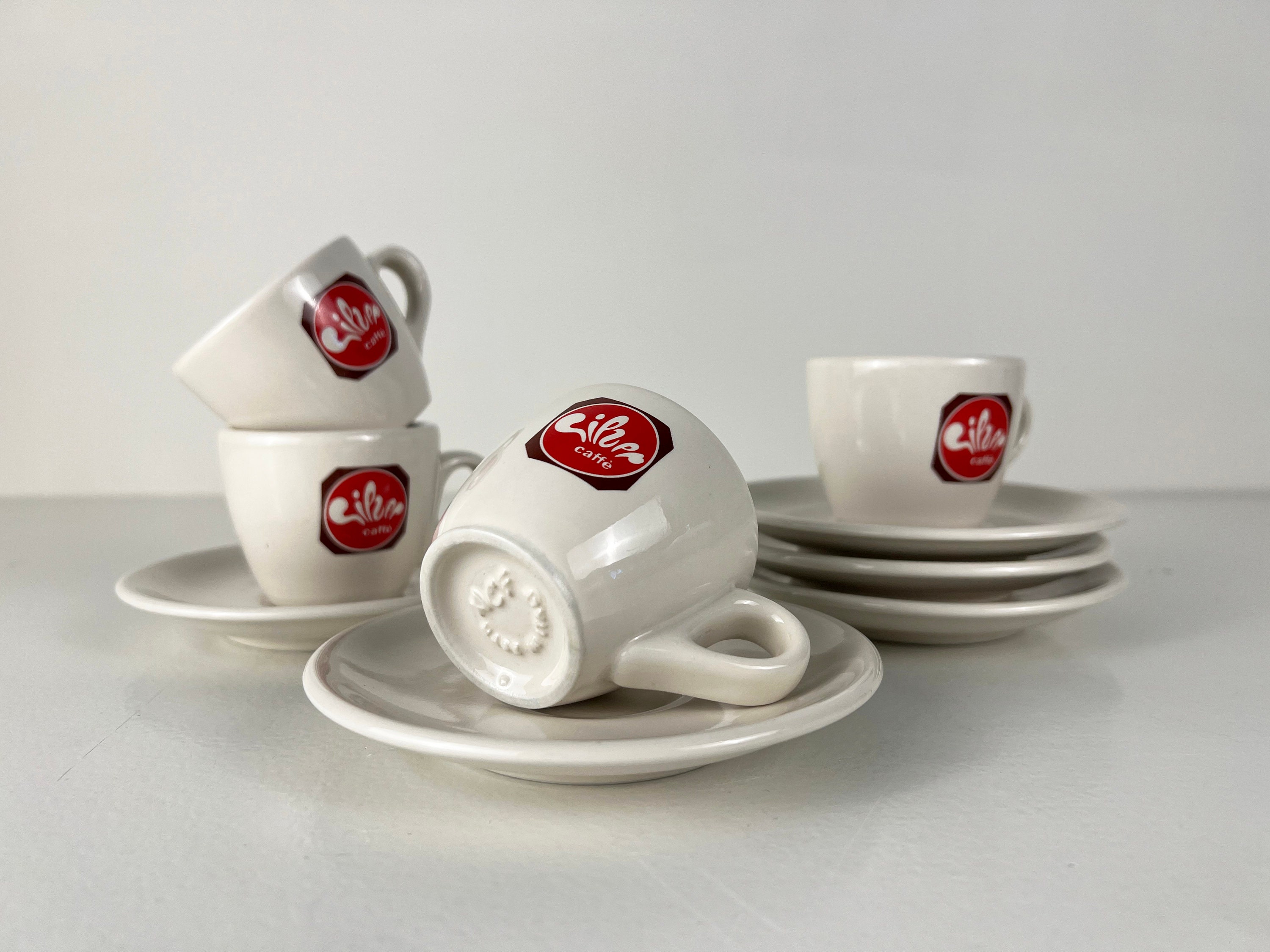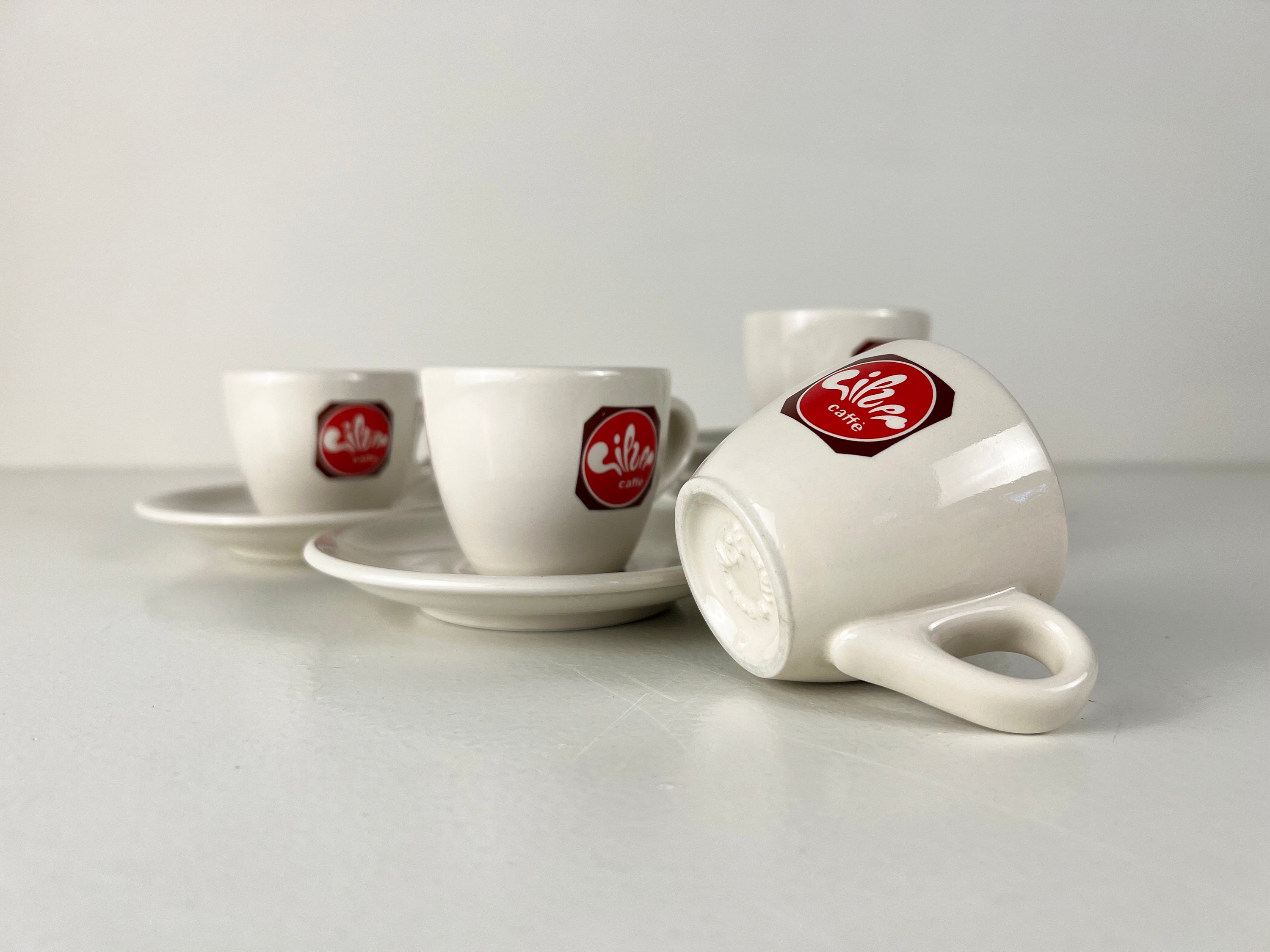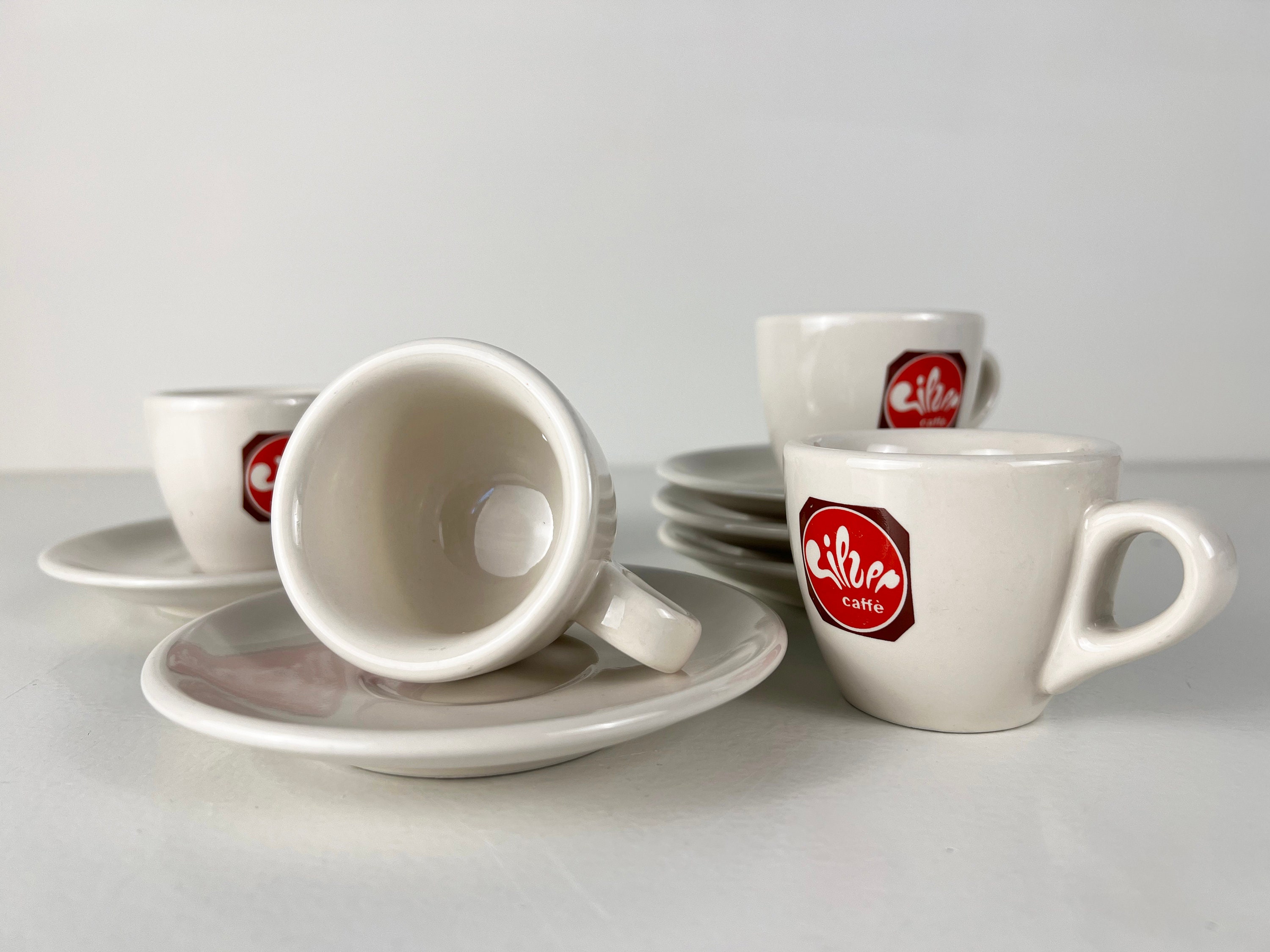 Very nice set of vintage espresso cups from Italy advertising 'Caffé Silver'. Marked on the bottom in raised design "ACF Made in Italy"