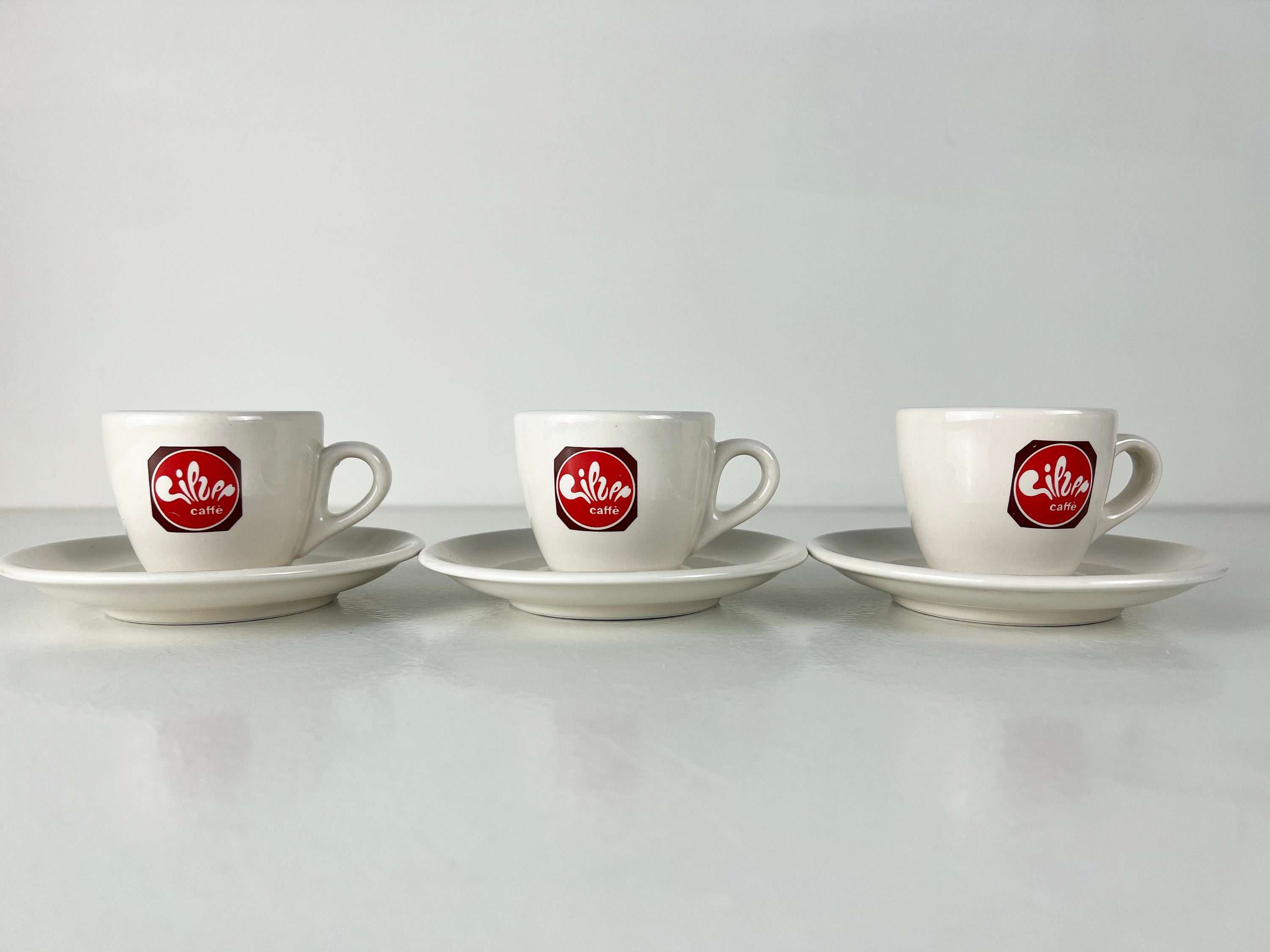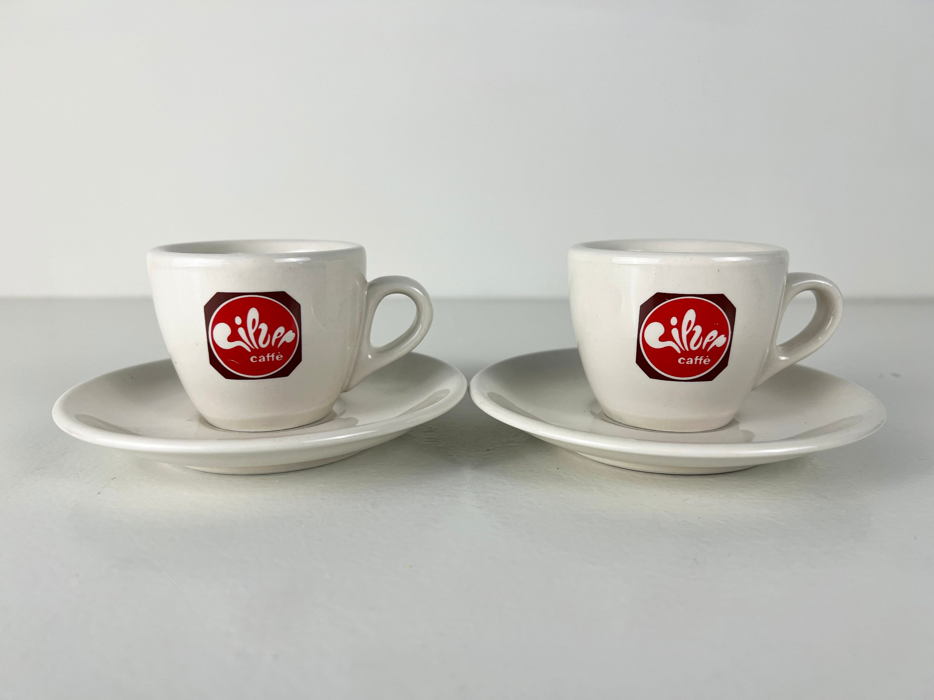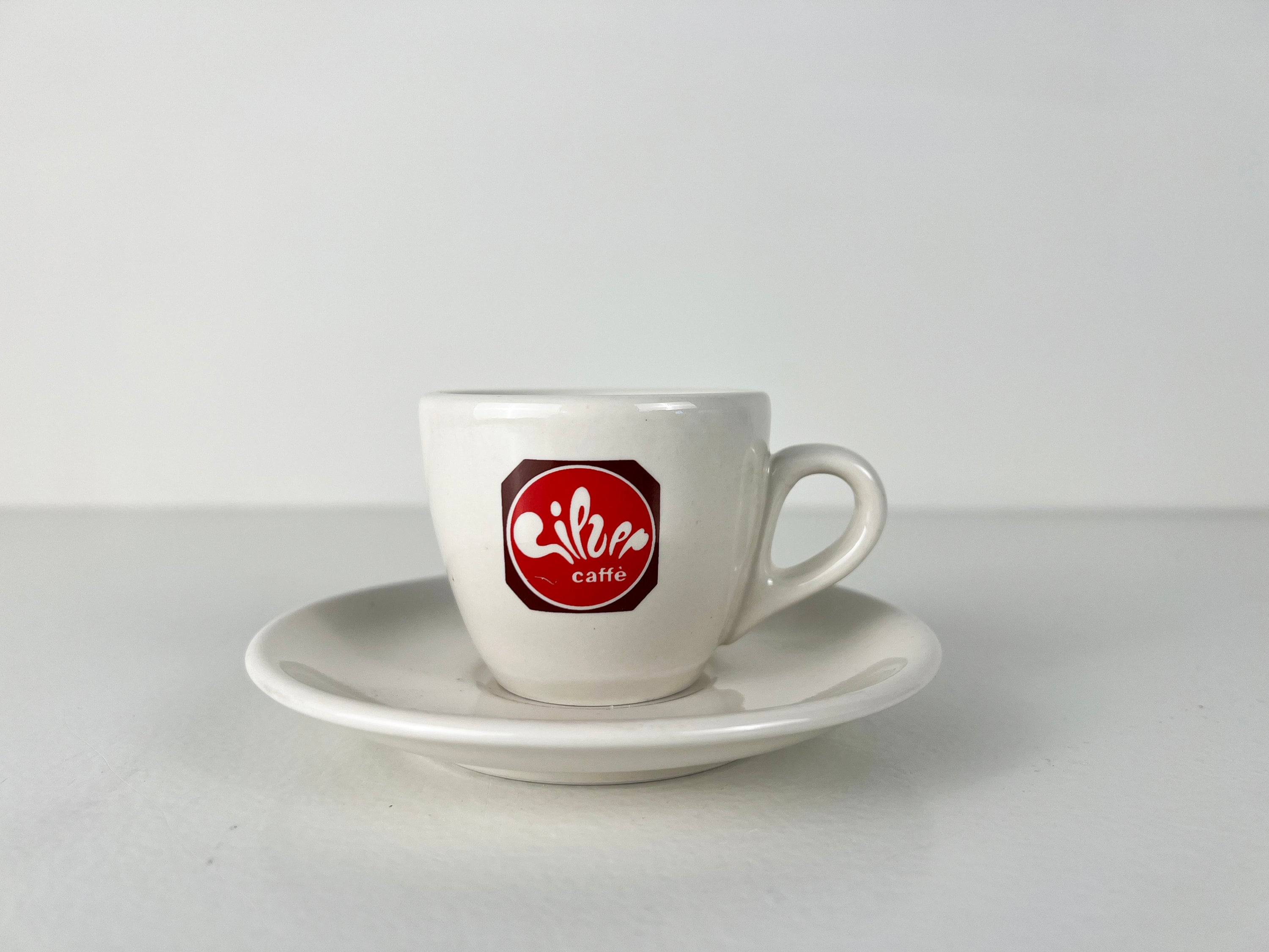 Very nice set of vintage espresso cups from Italy advertising 'Caffé Silver'. Marked on the bottom in raised design "ACF Made in Italy"