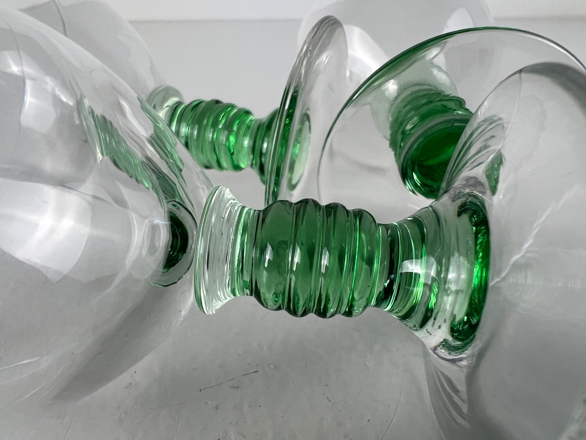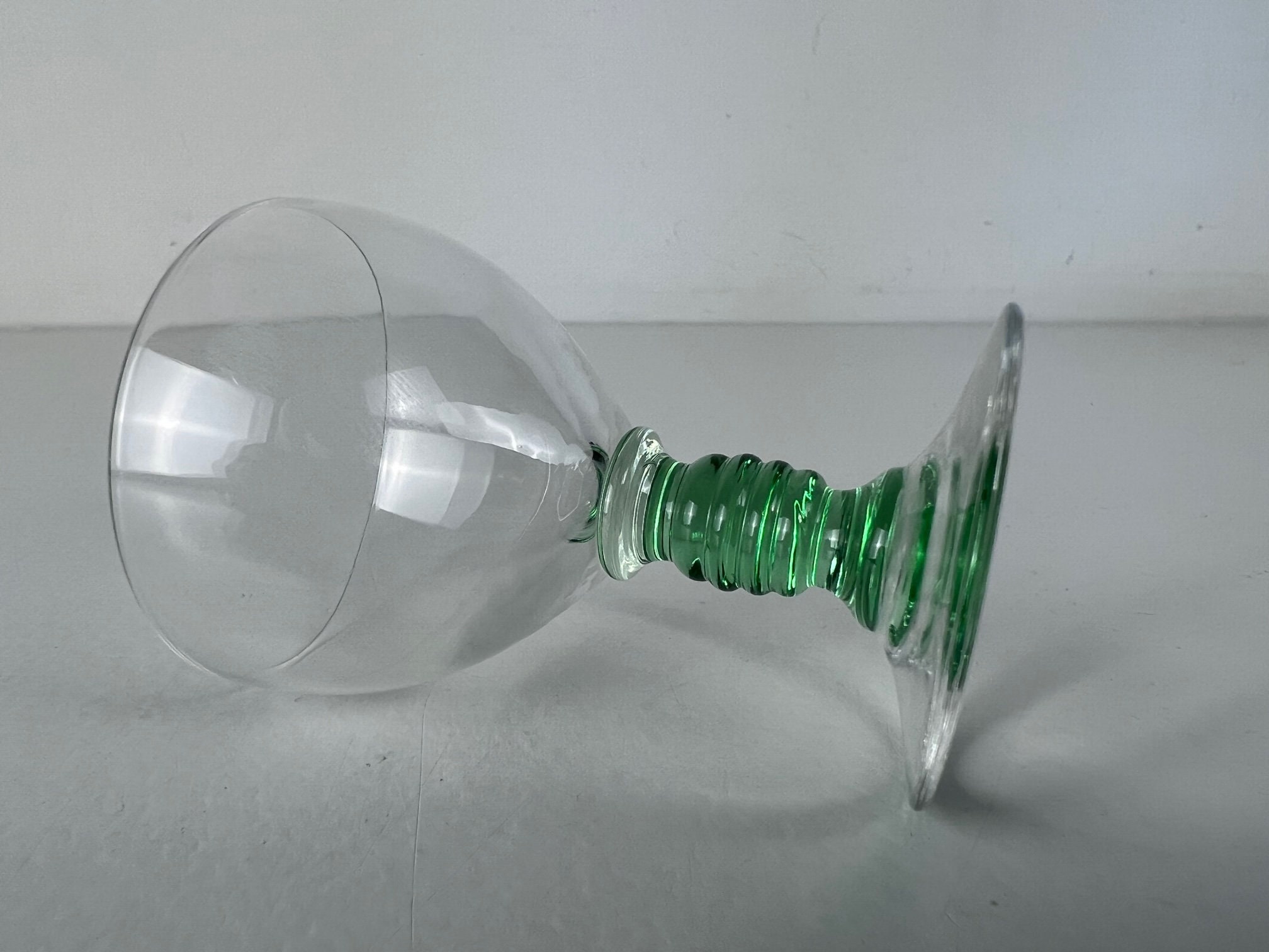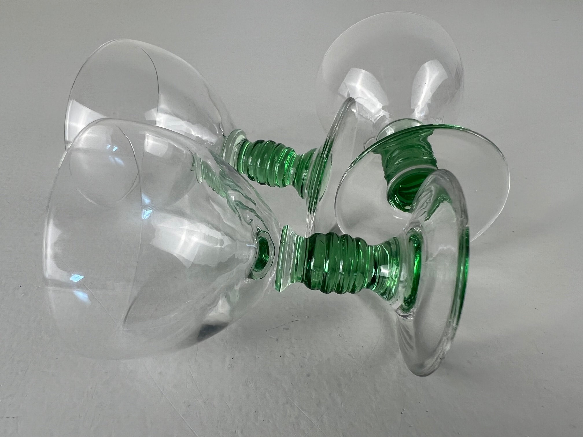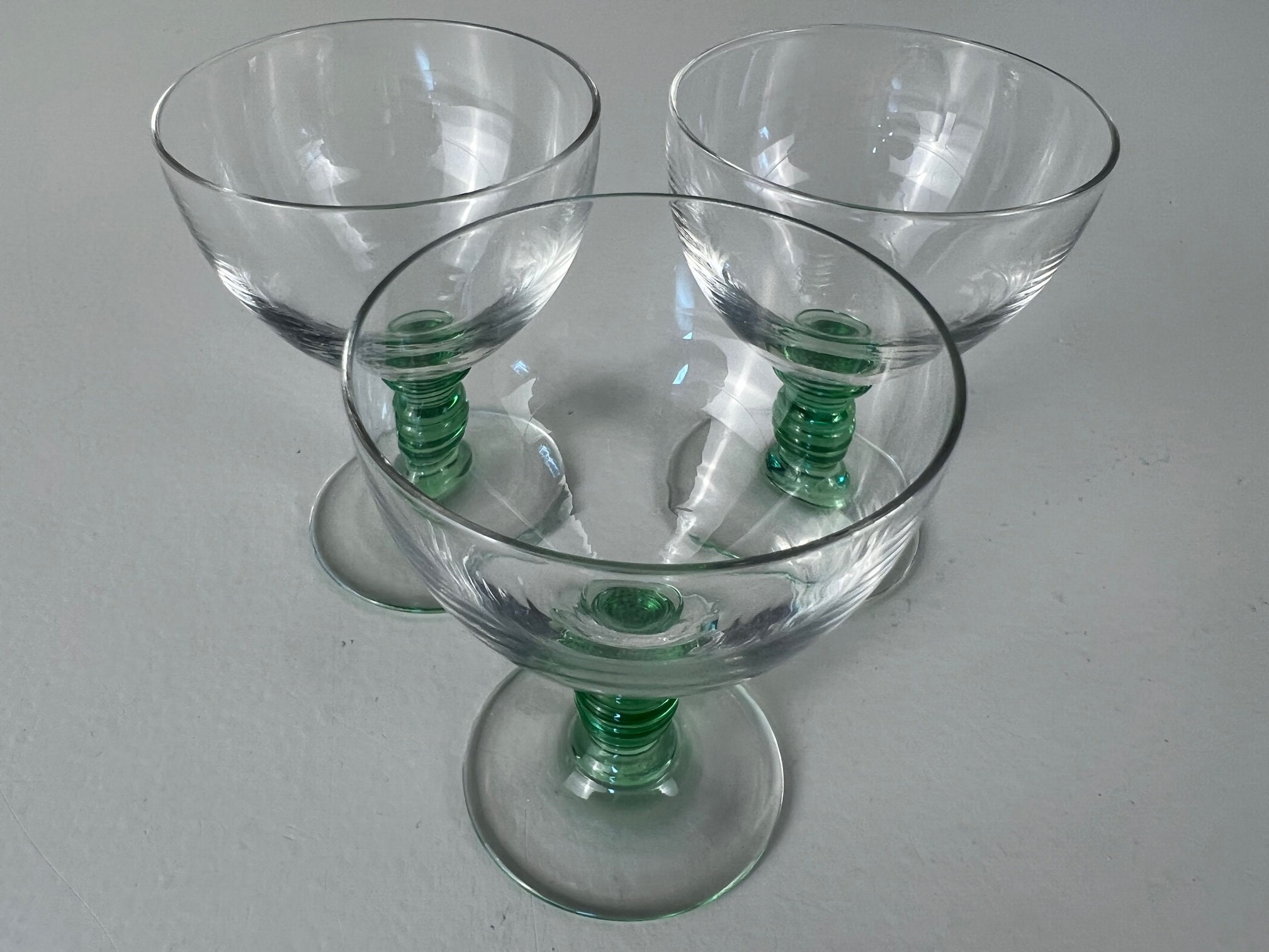 Drink in style with these 3 delicate shot glasses, liquor glasses with a beautiful sea green stem and clear glass chalice.