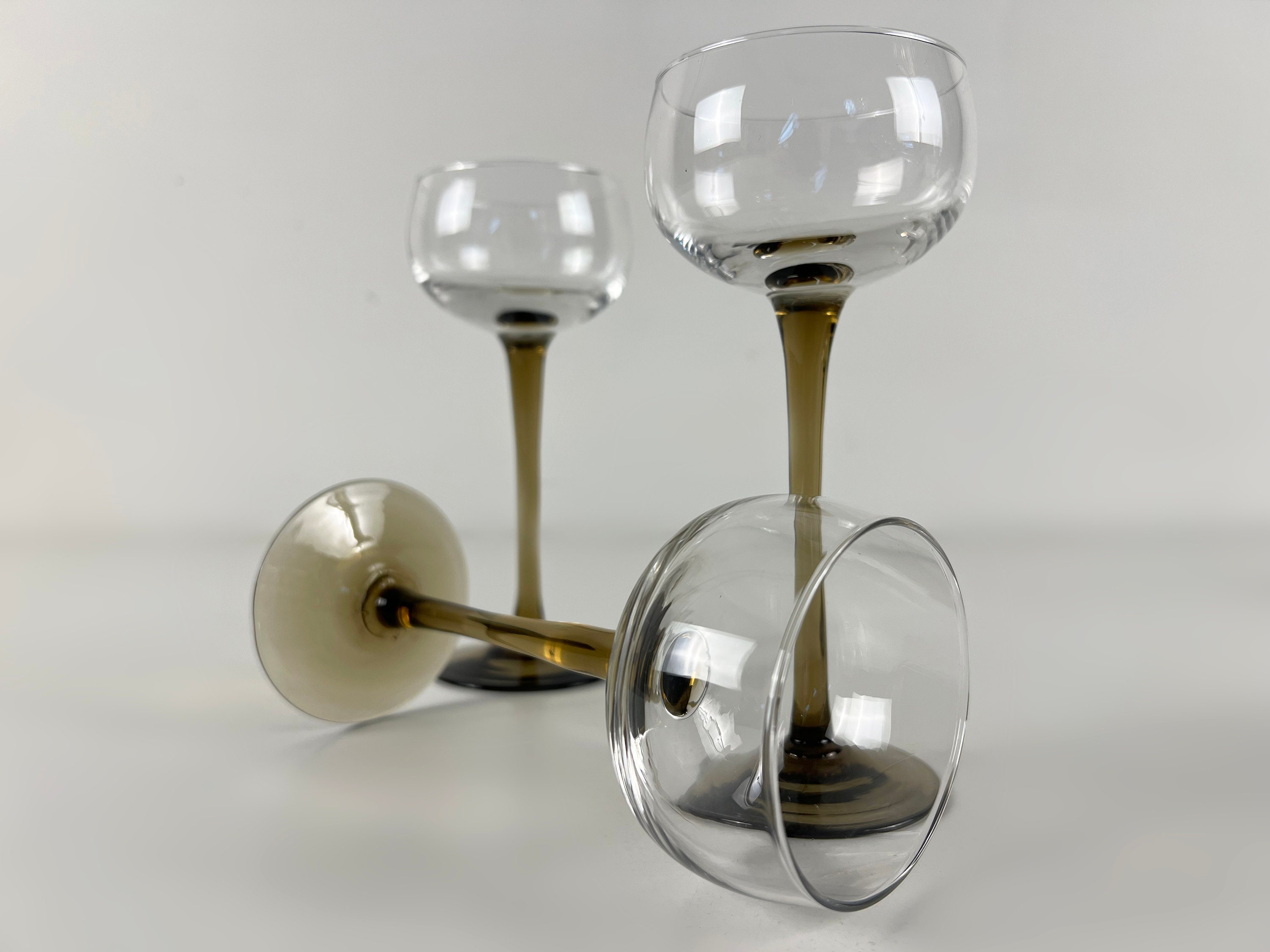 Set of 2 or 3 vintage purple brown, plum colored stemmed white wine glasses, French Alsace wine glasses.
