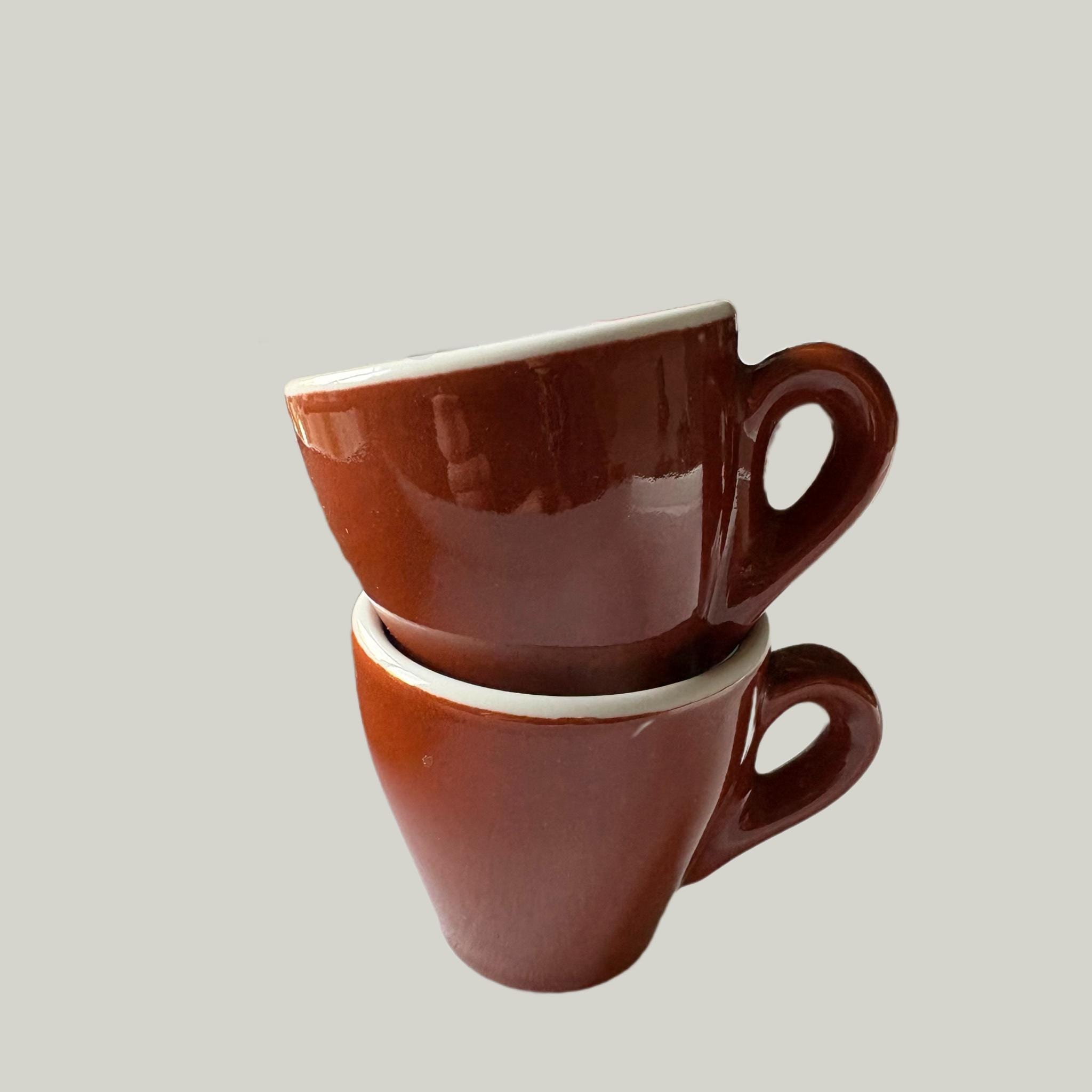 Set of 2, 3 or 4 vintage porcelain classic brown, bar quality espresso cups, Nuova point Italy 1990s
