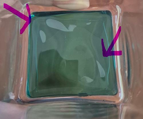 Unfortunately, all the glasses in the package have a slight error (which was probably made during the production process). At the bottom of each glass, you can see that some parts of the glass are not the same blue color and are almost opaque. It's difficult to see unless under a right angle, but once you see it, you can't unsee. I still like the glasses but I am also slightly disappointed.