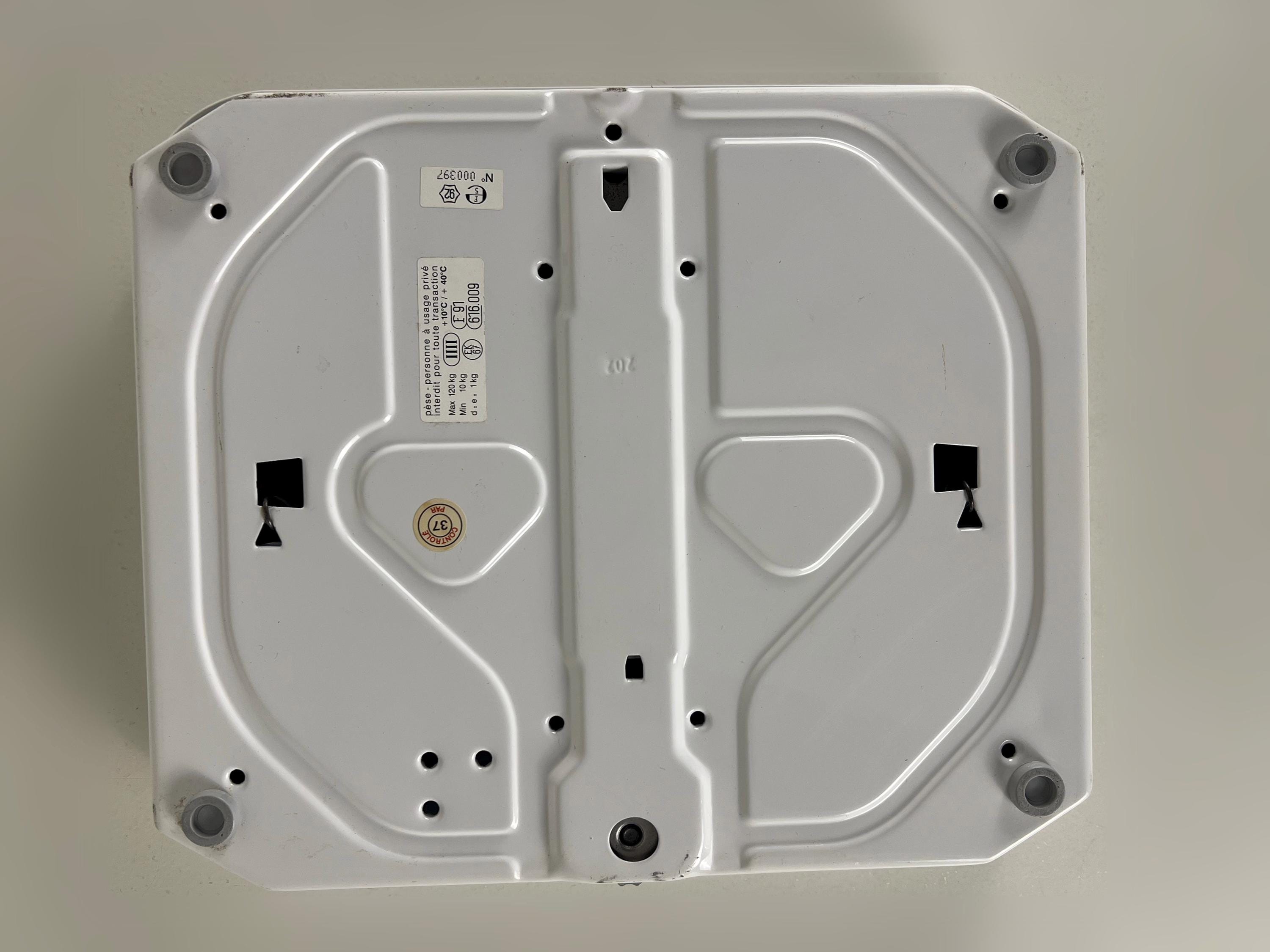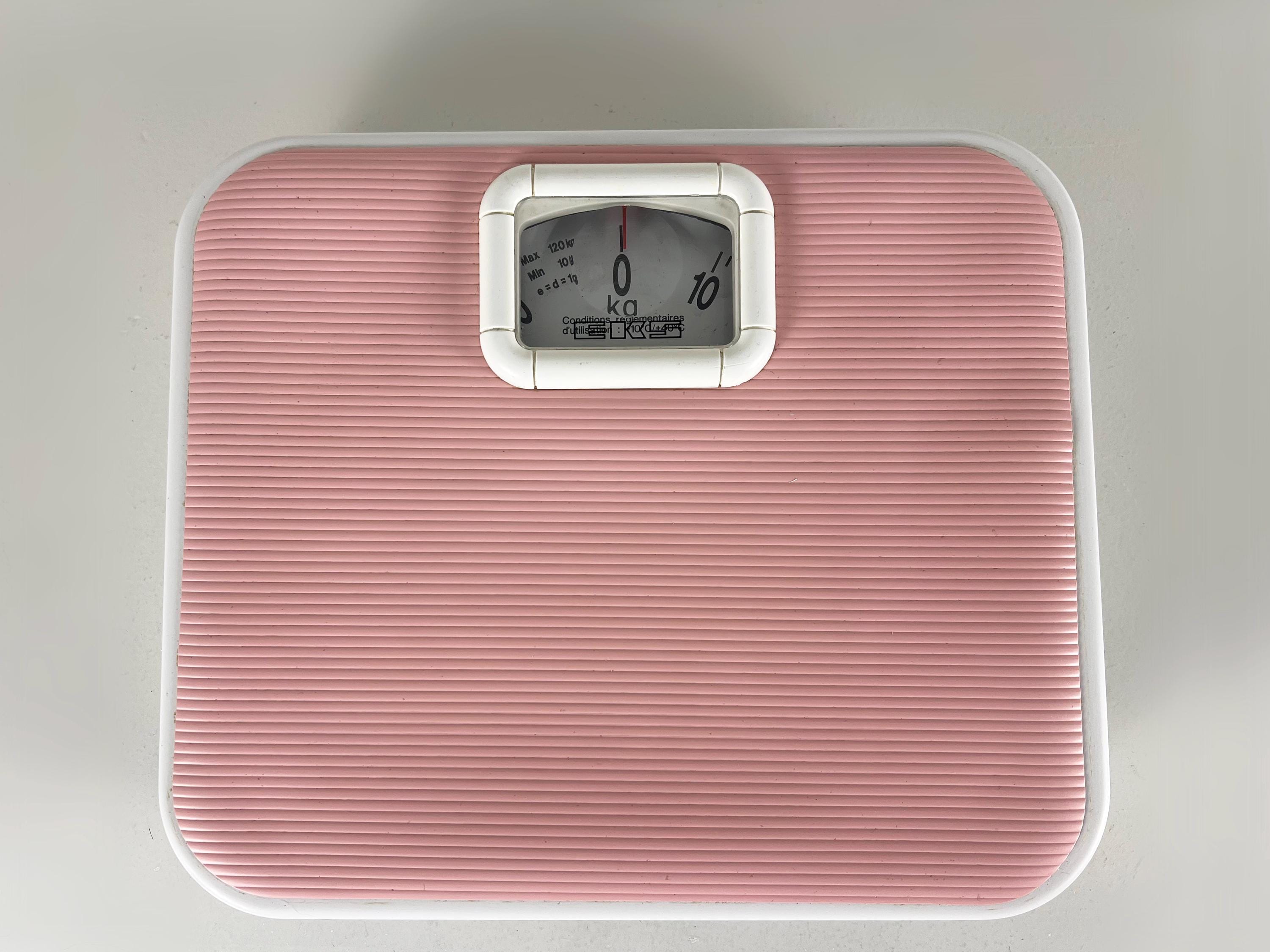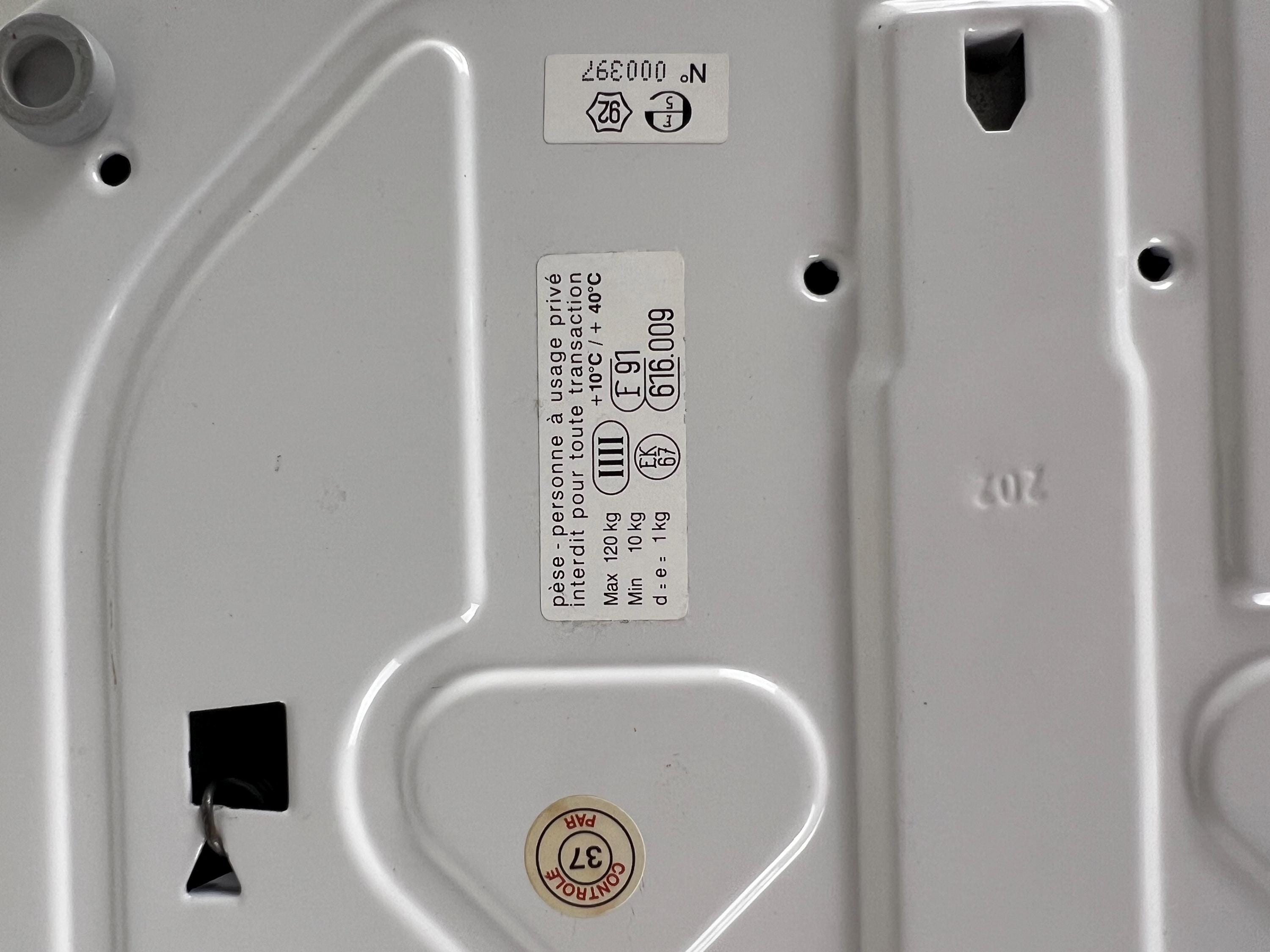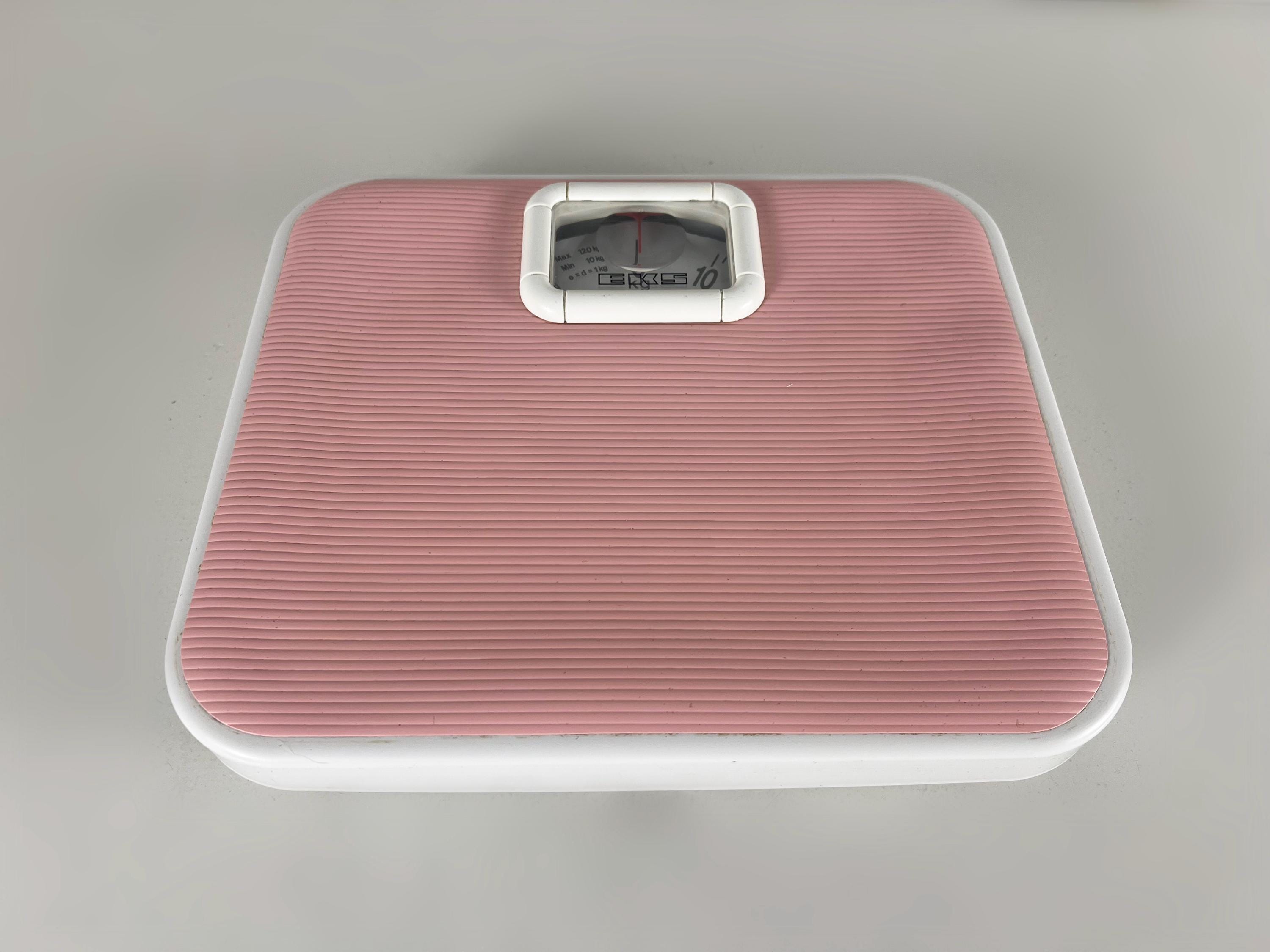 This metal mid century bathroom scale in pink and white is in good vintage condition This French made retro item is quite sturdy and of course works just as well today as ever. It weighs kg (up to 120 kg) and not lb.