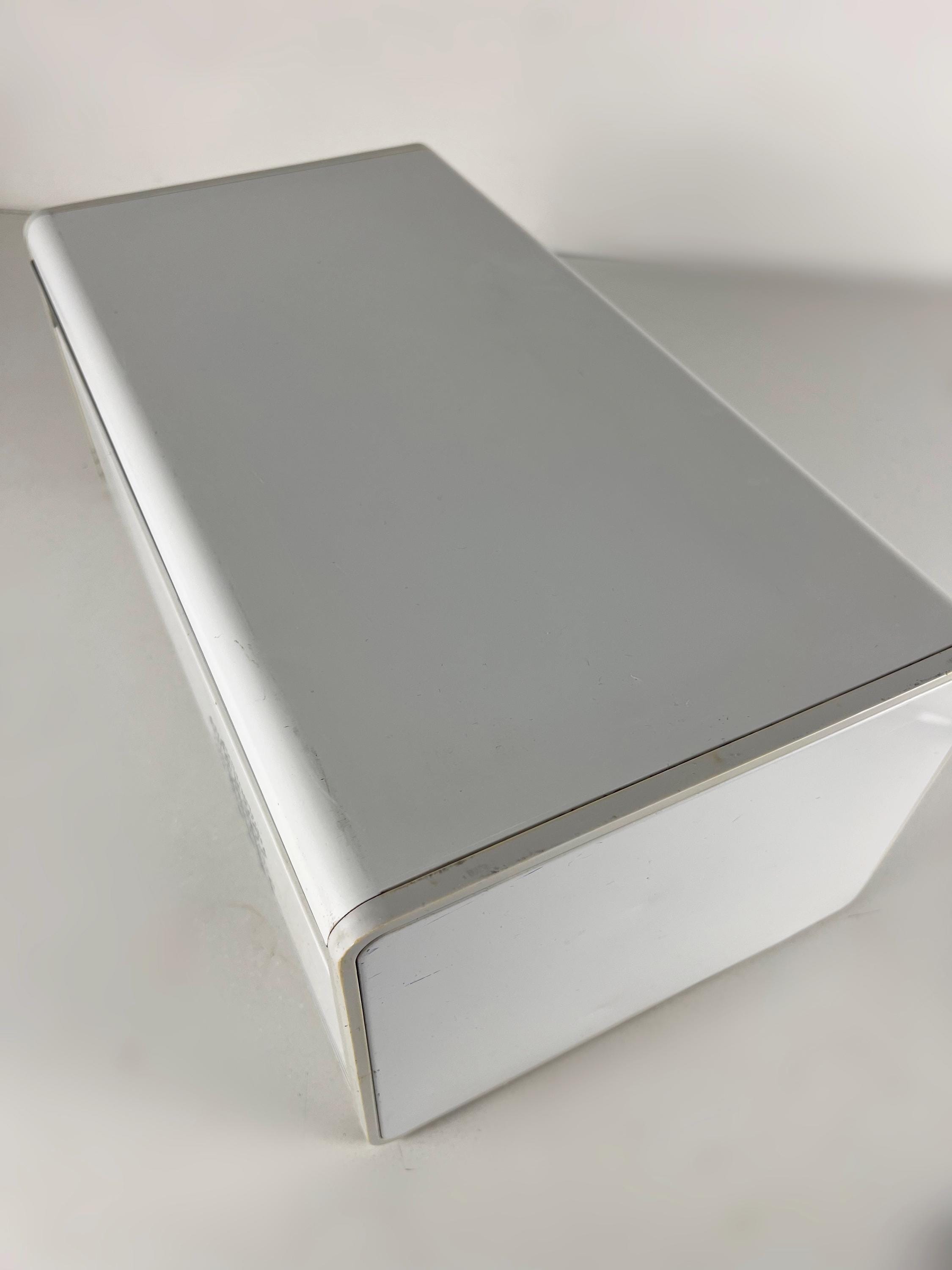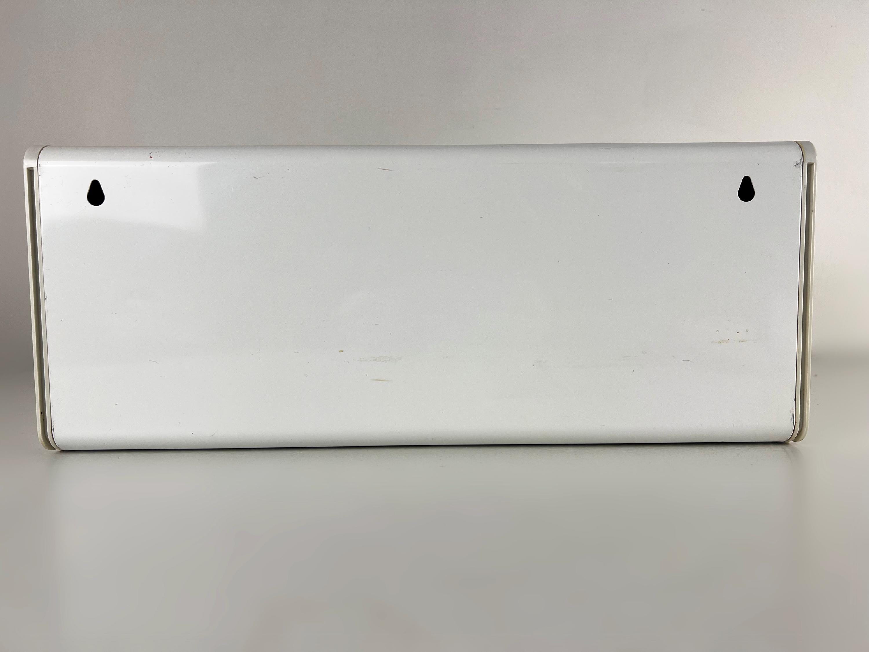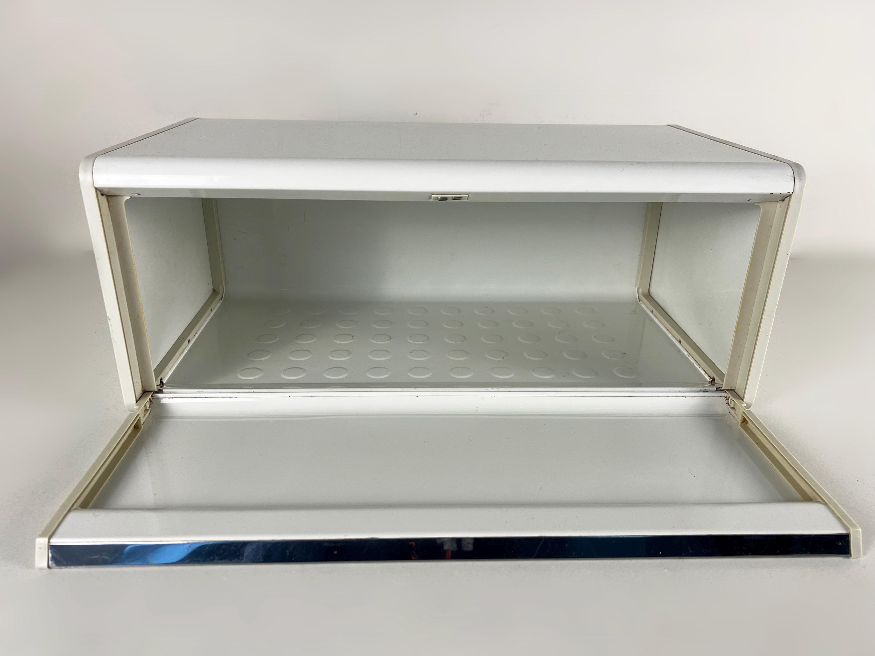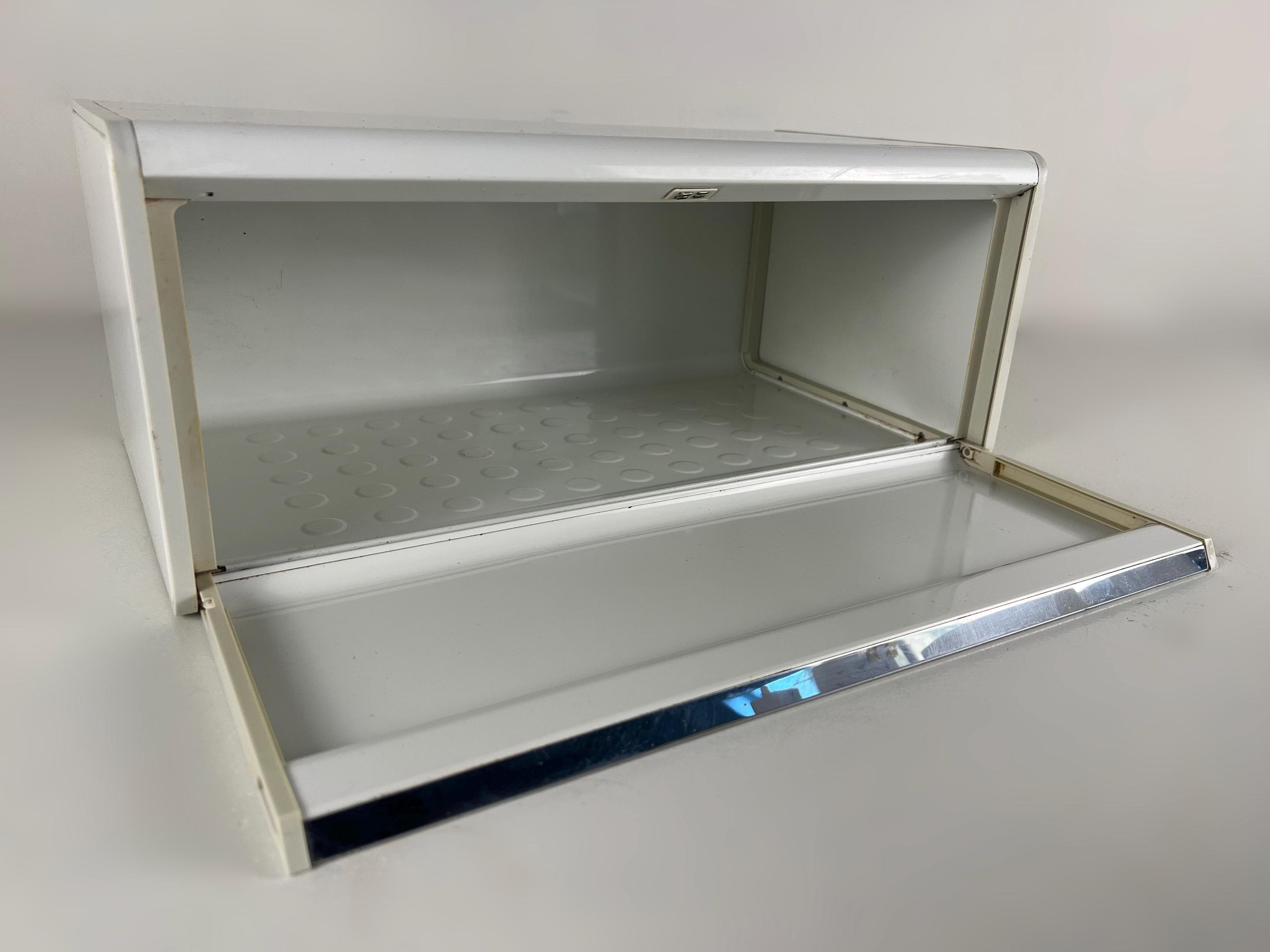 Brabantia bread box white metal bread box with a blue decor of trees, vintage mid century design 1980s