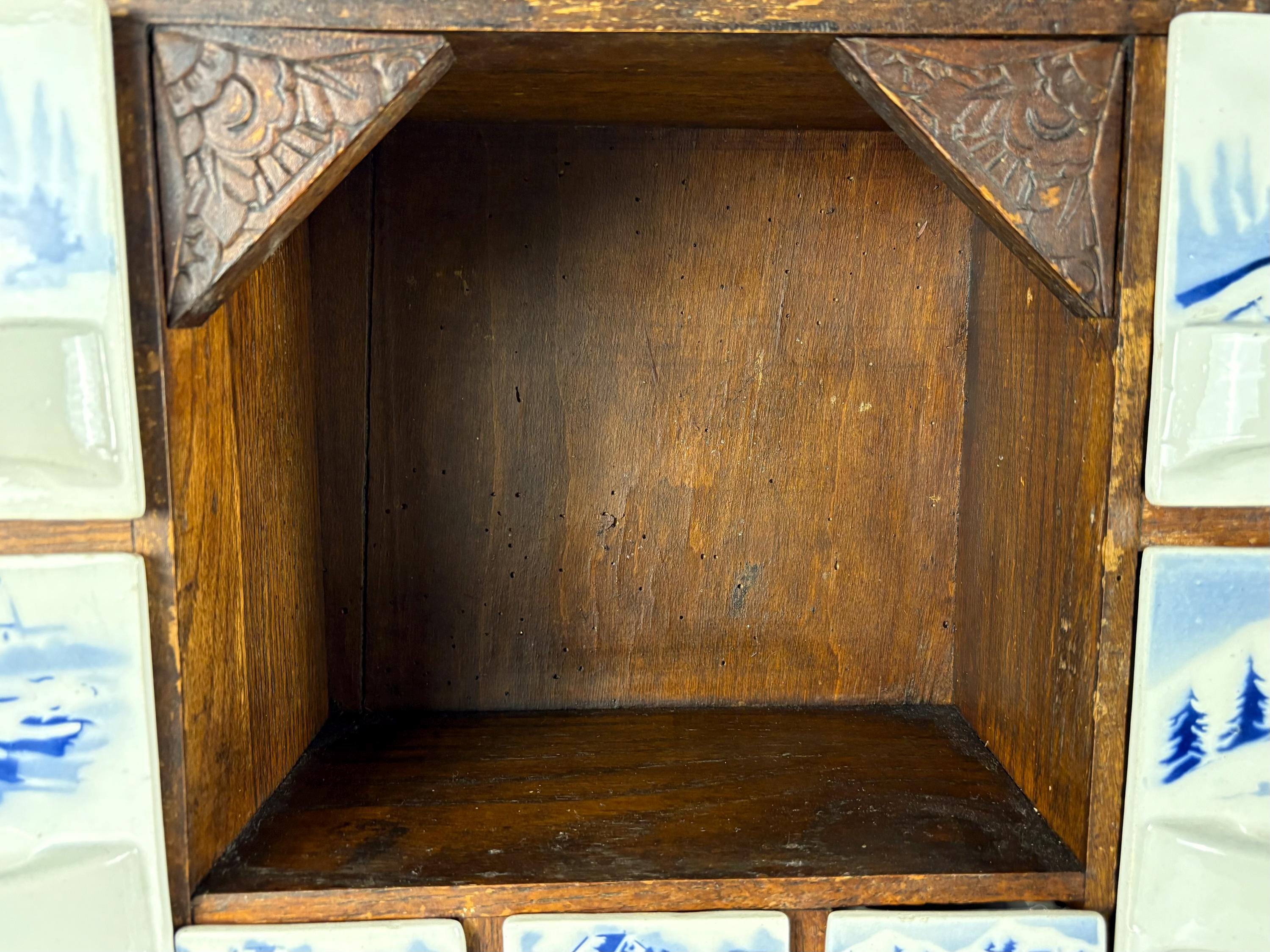 Wooden spice rack cabinet, Belgian spice cabinet with porcelain drawers, Beautiful antique Belgian decor 1930s