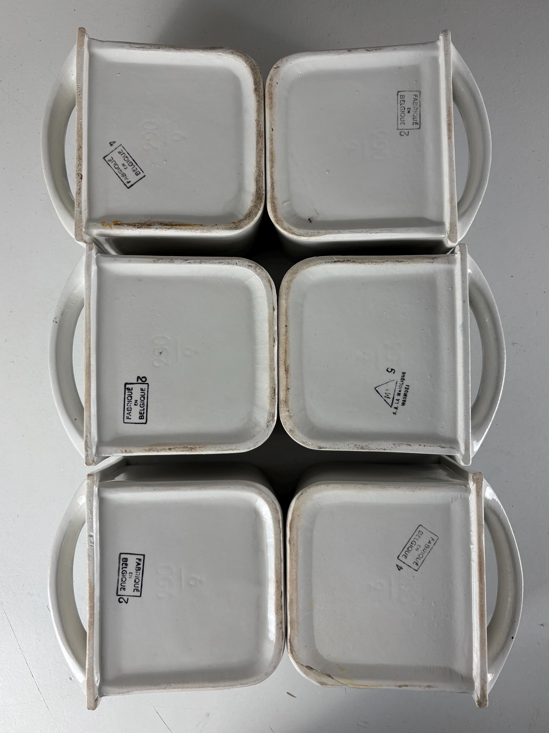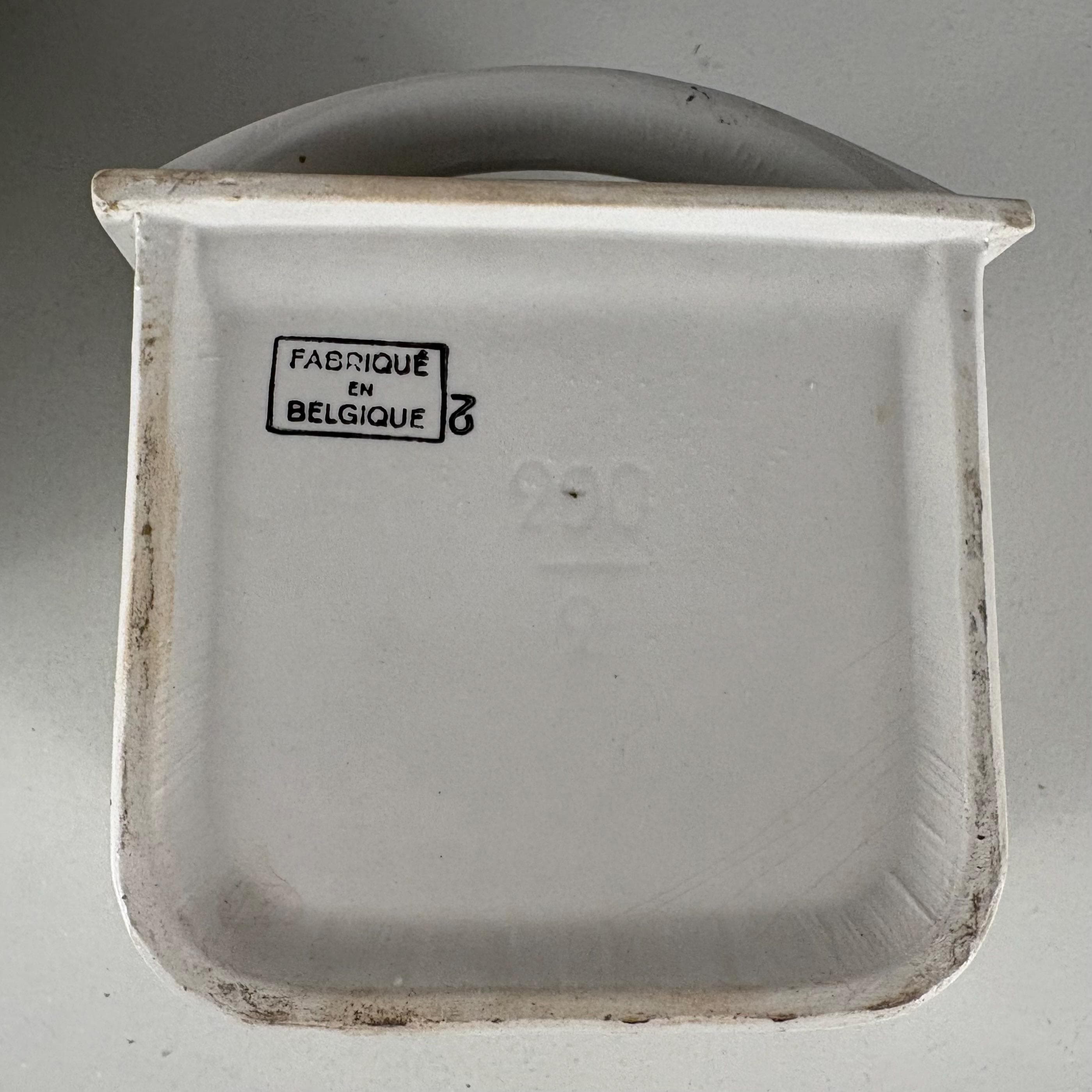 The trays have a stamp on the back: 'Fabriqué en Belgique'. The cabinet has metal hooks for wall hanging.