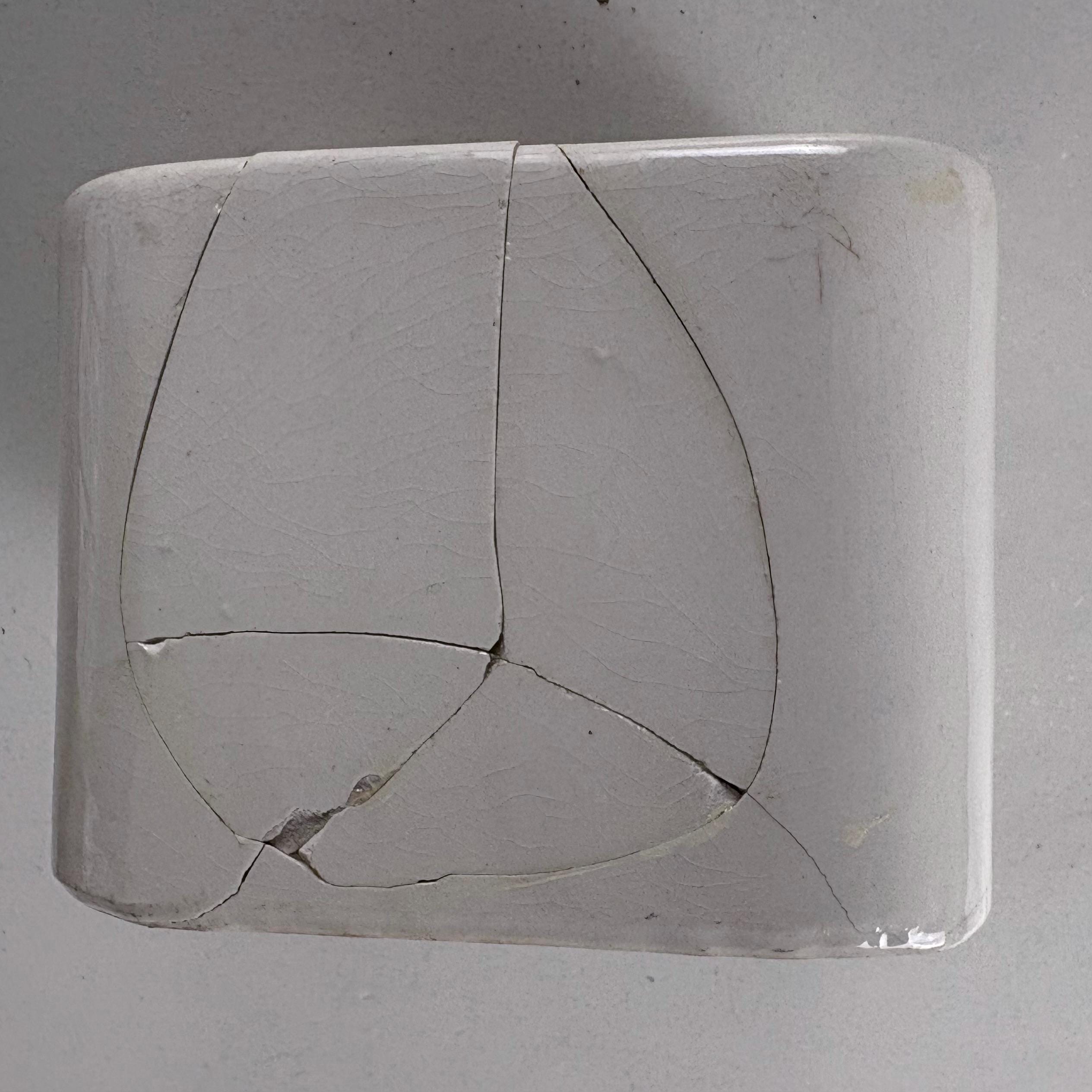 The cabinet is in good vintage condition but shows several signs of age. The wood shows a history of woodworm (holes). Of course the wood has been treated. The porcelain coffee tray has been glued. The flower tray has a crack. You still can use them. See the photo for these features.