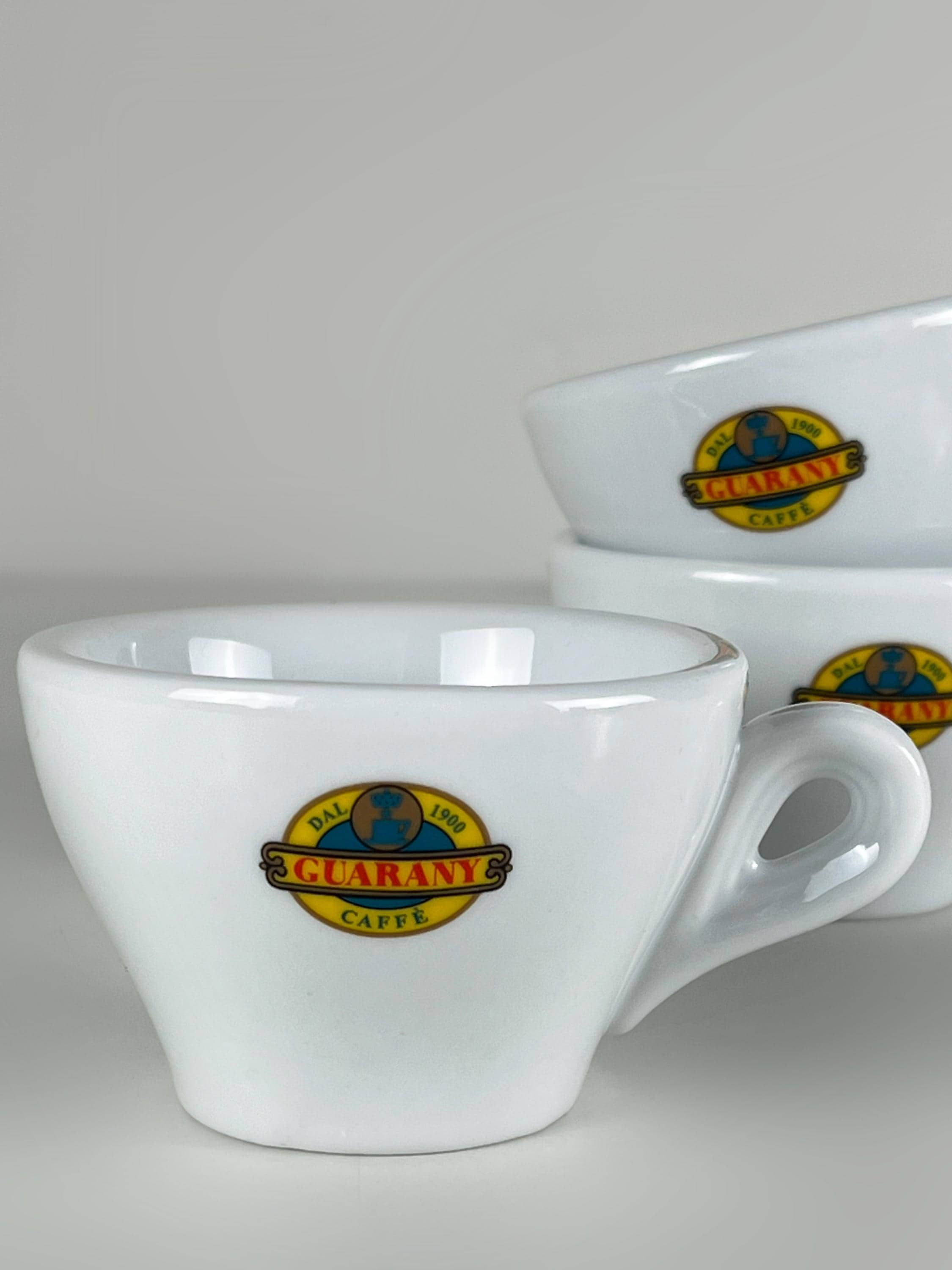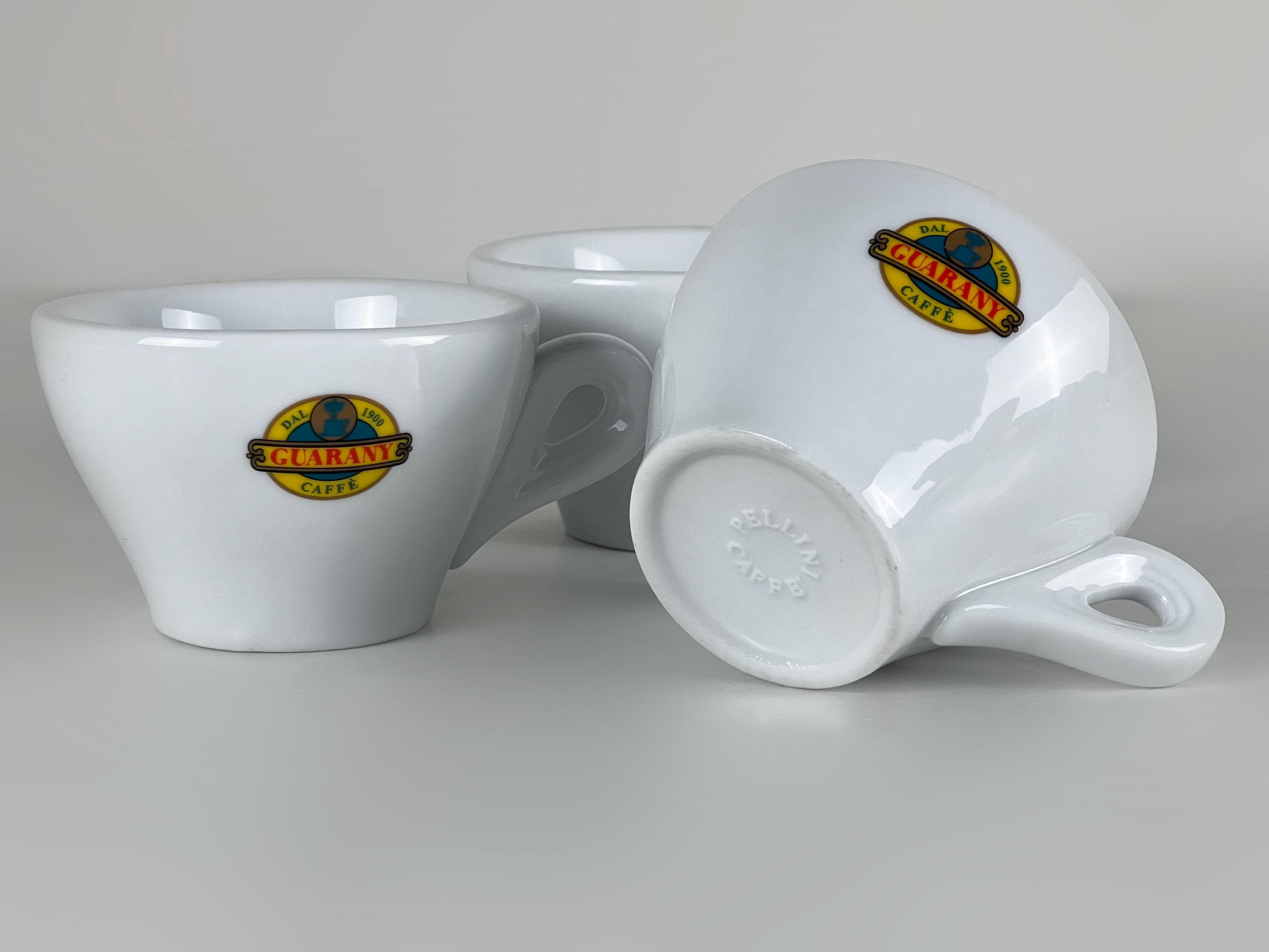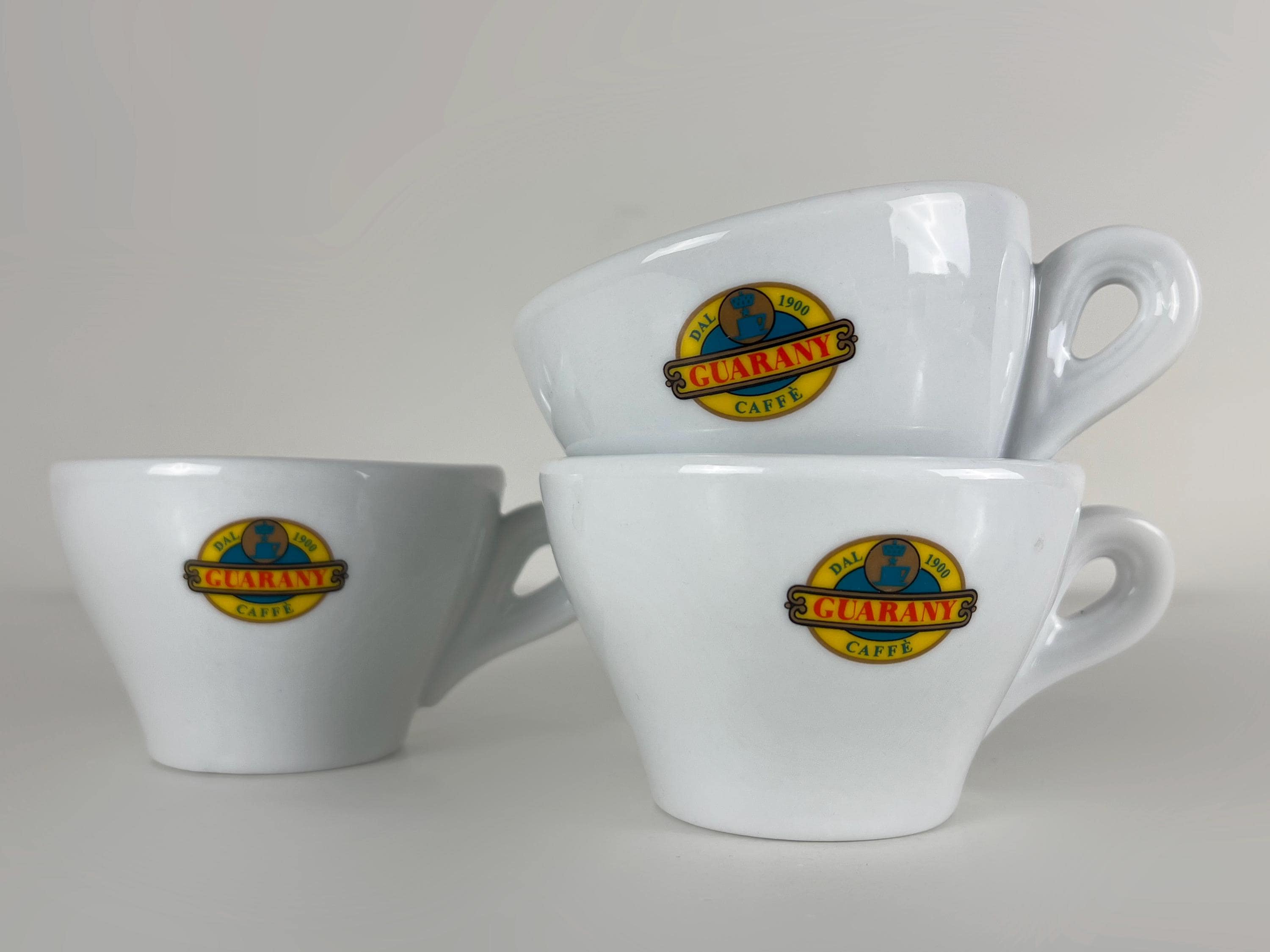 We offer a nice set of 3 coffee bar quality porcelain coffee or cappuccino cups in white Guarany caffè . The cups are marked Pellini Caffè. Very good vintage condition with minimal traces of use. A great addition to your home barista set up.