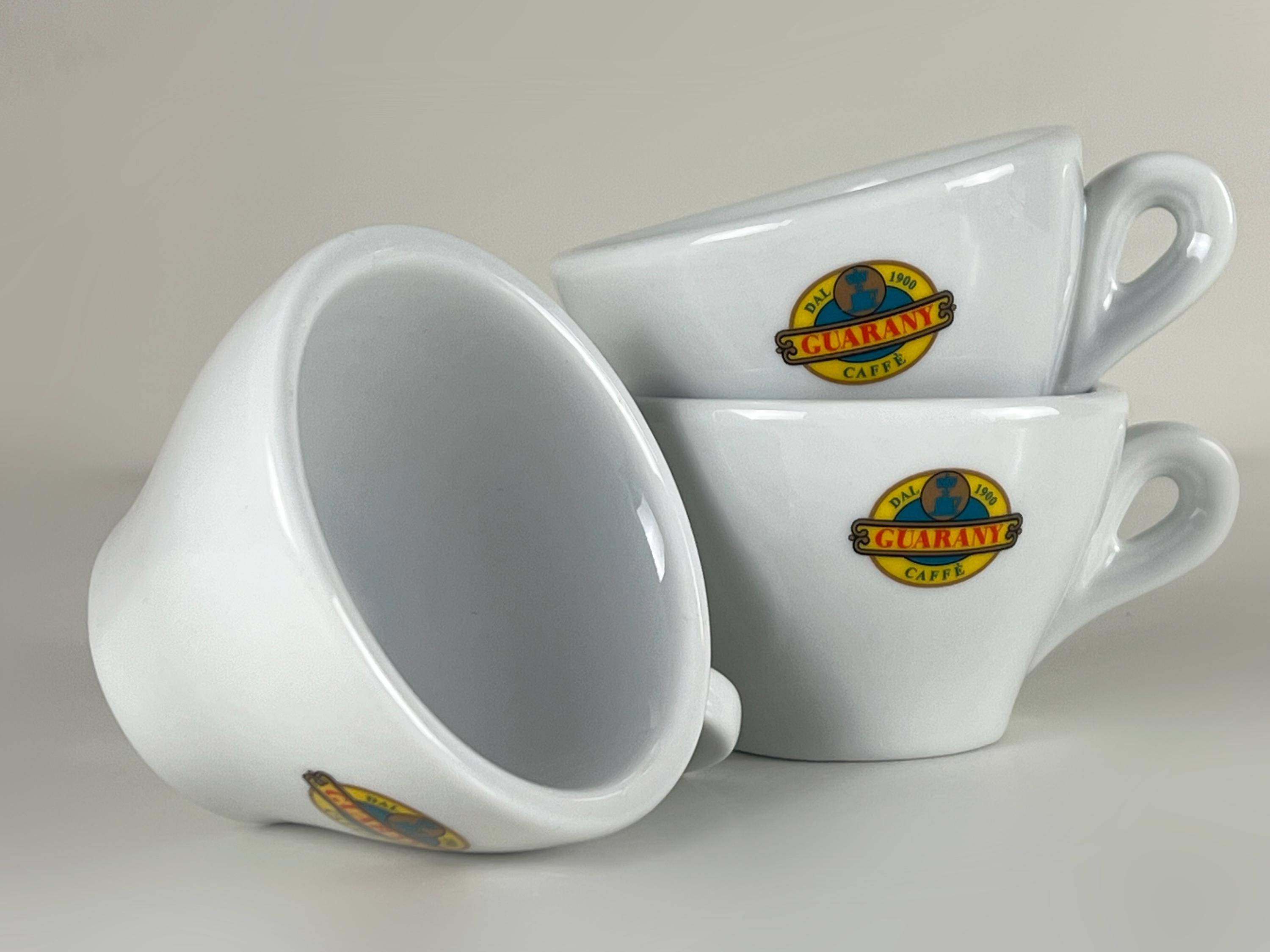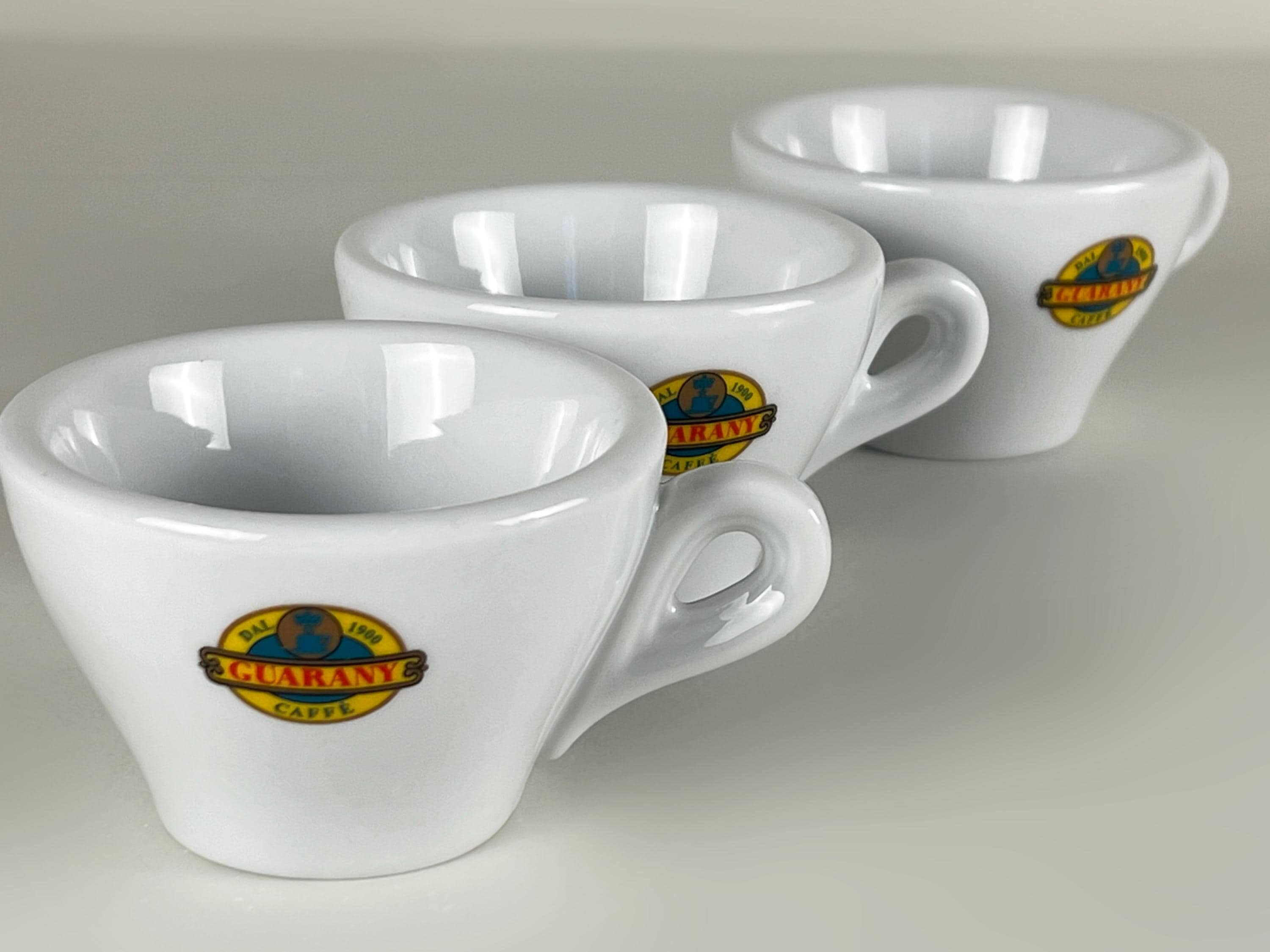 Set of 3 nice coffee or cappuccino cups, heavy bar quality porcelain, Guarany caffè, Italy 1980s