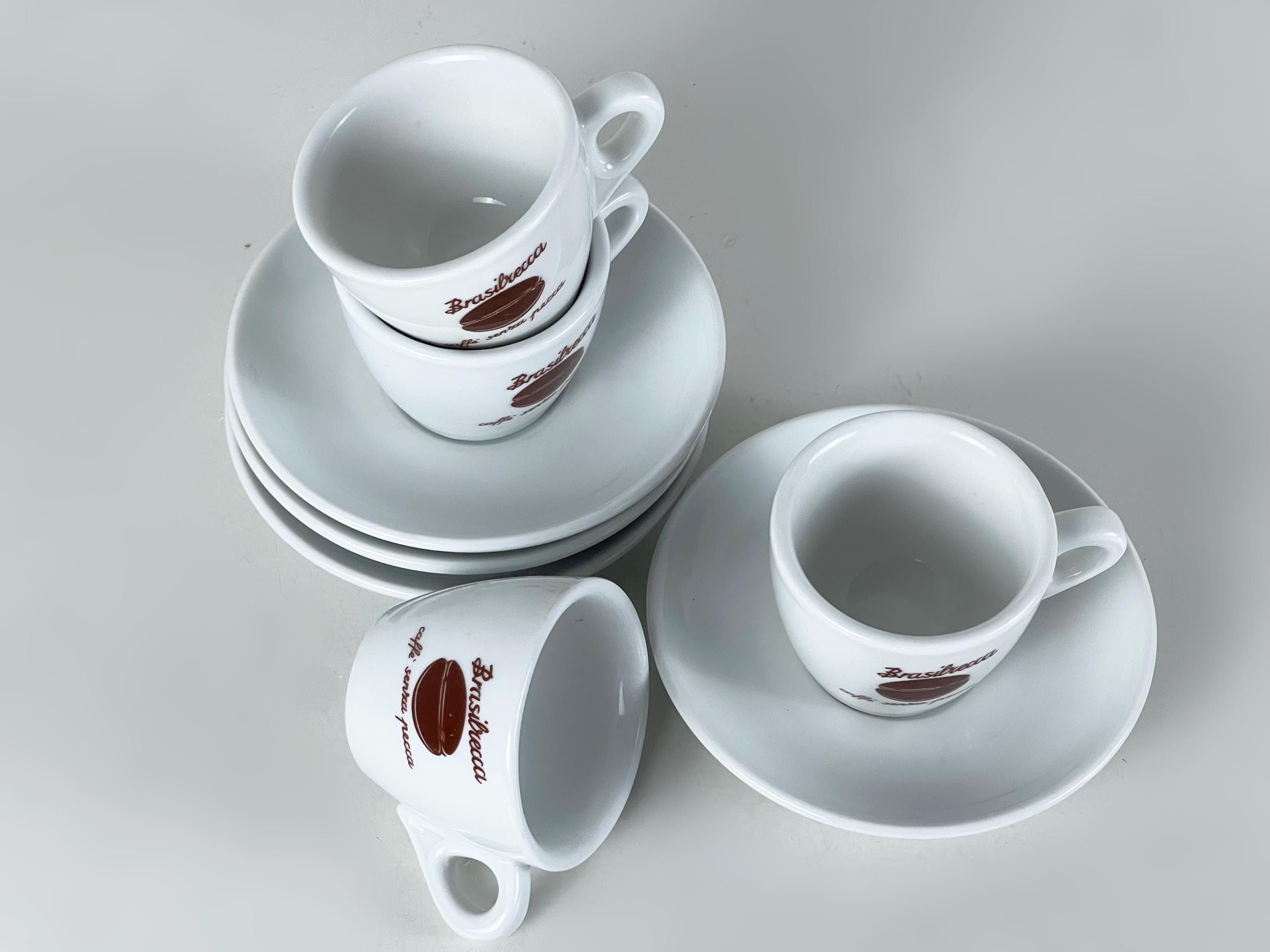 Set of 4 Italian vintage Richard Ginori, bar quality espresso cups with saucers produced for Brasilrecca , Italy 1980s