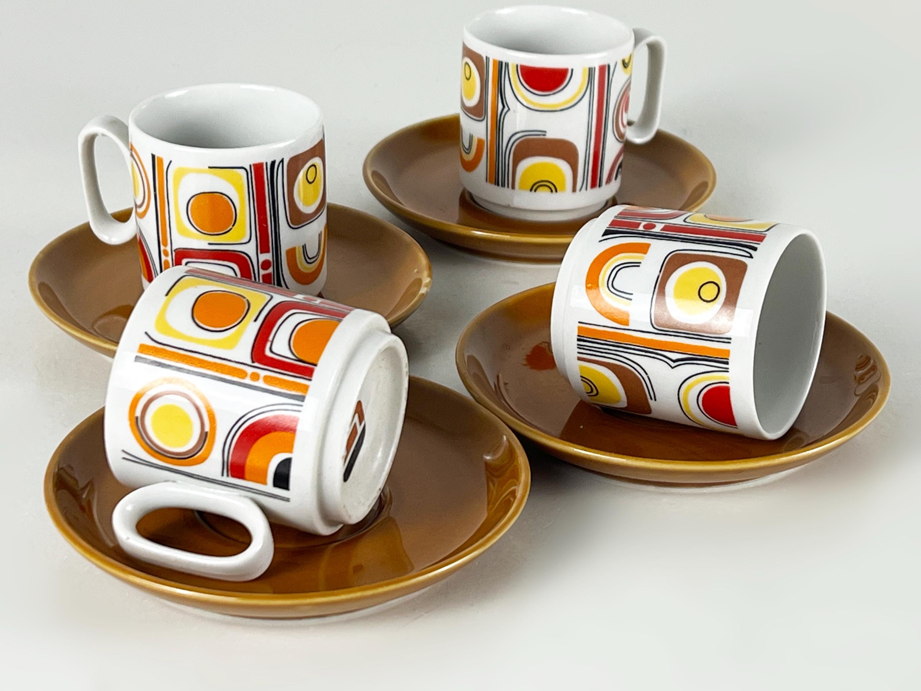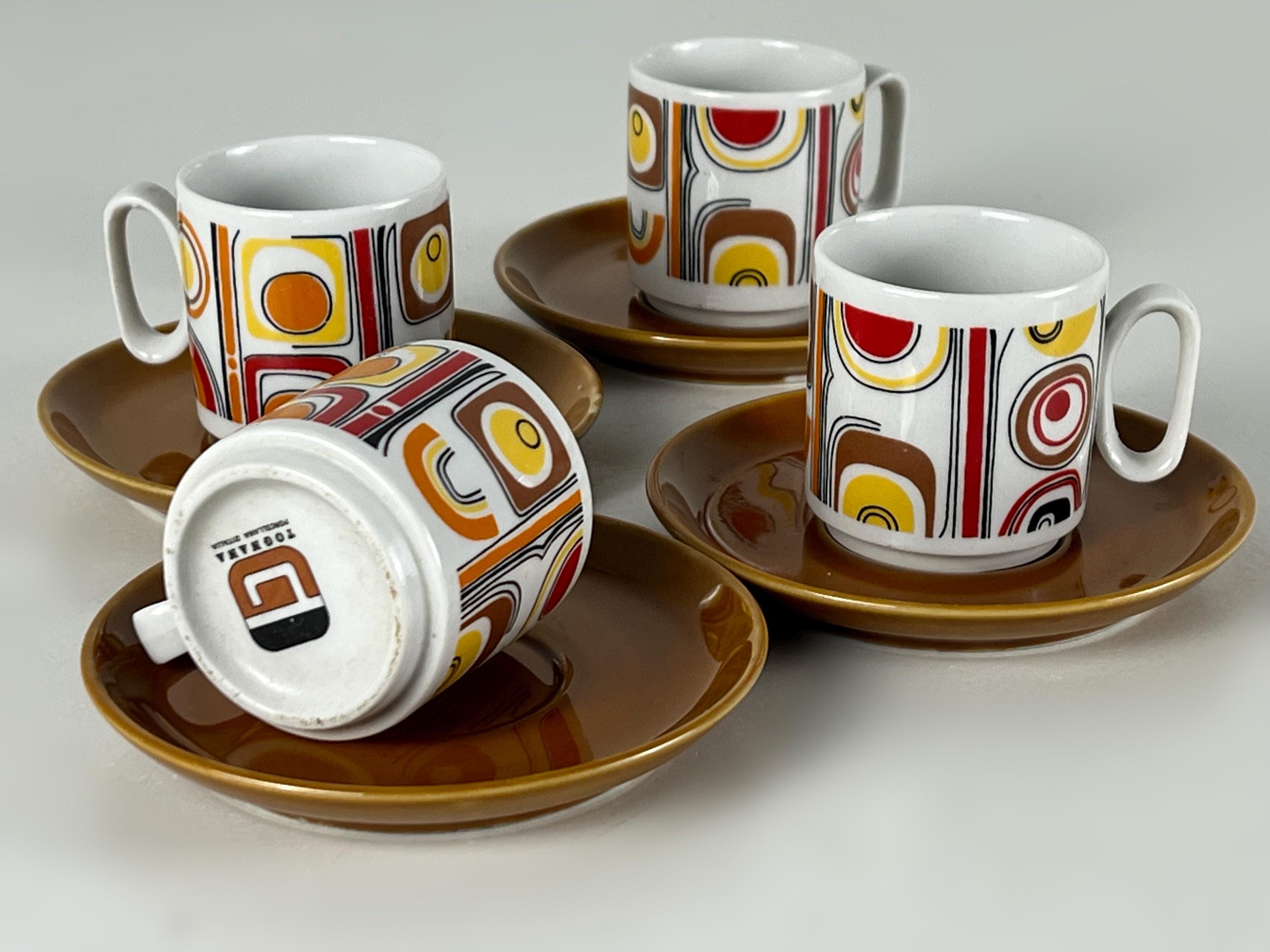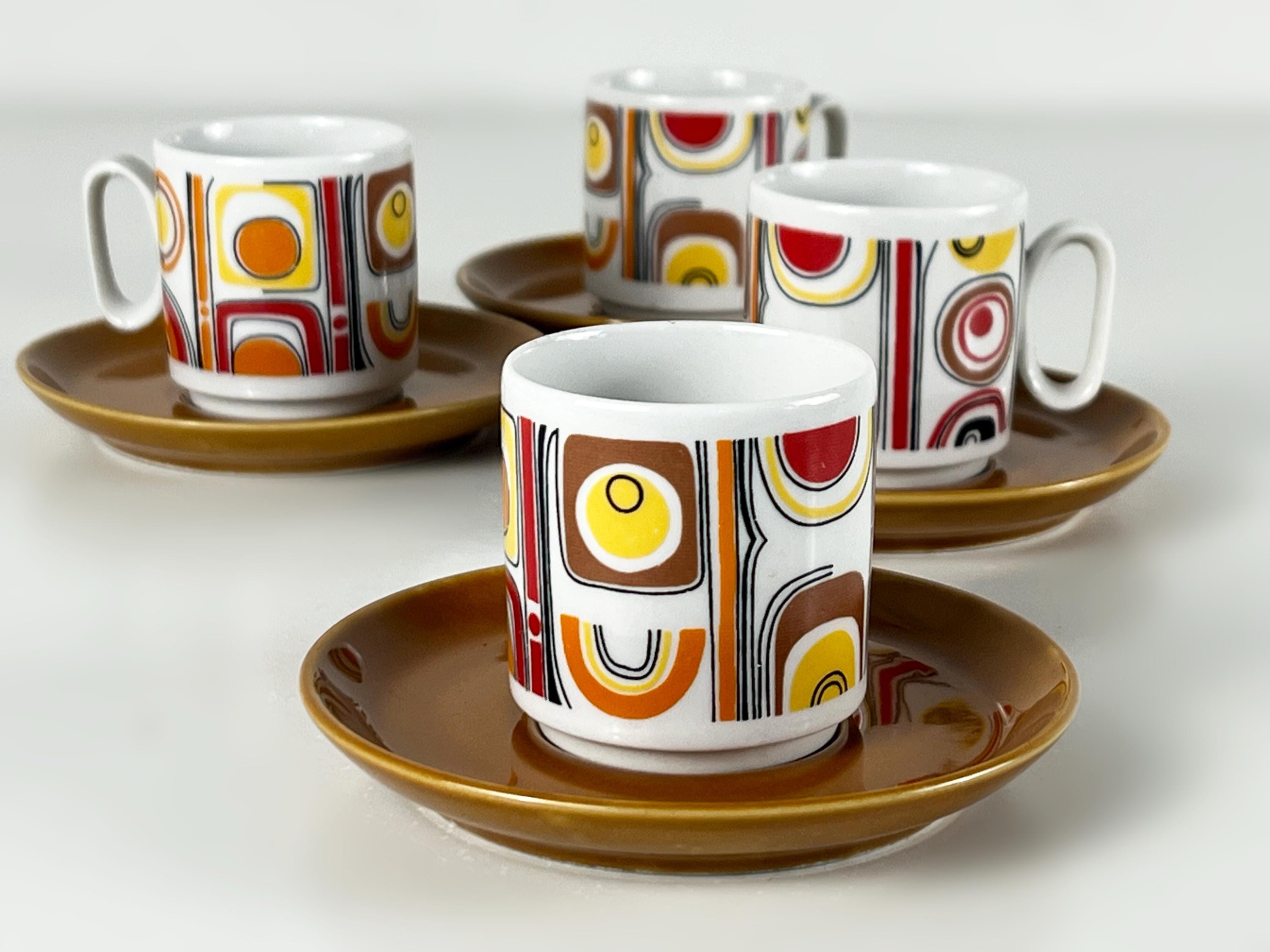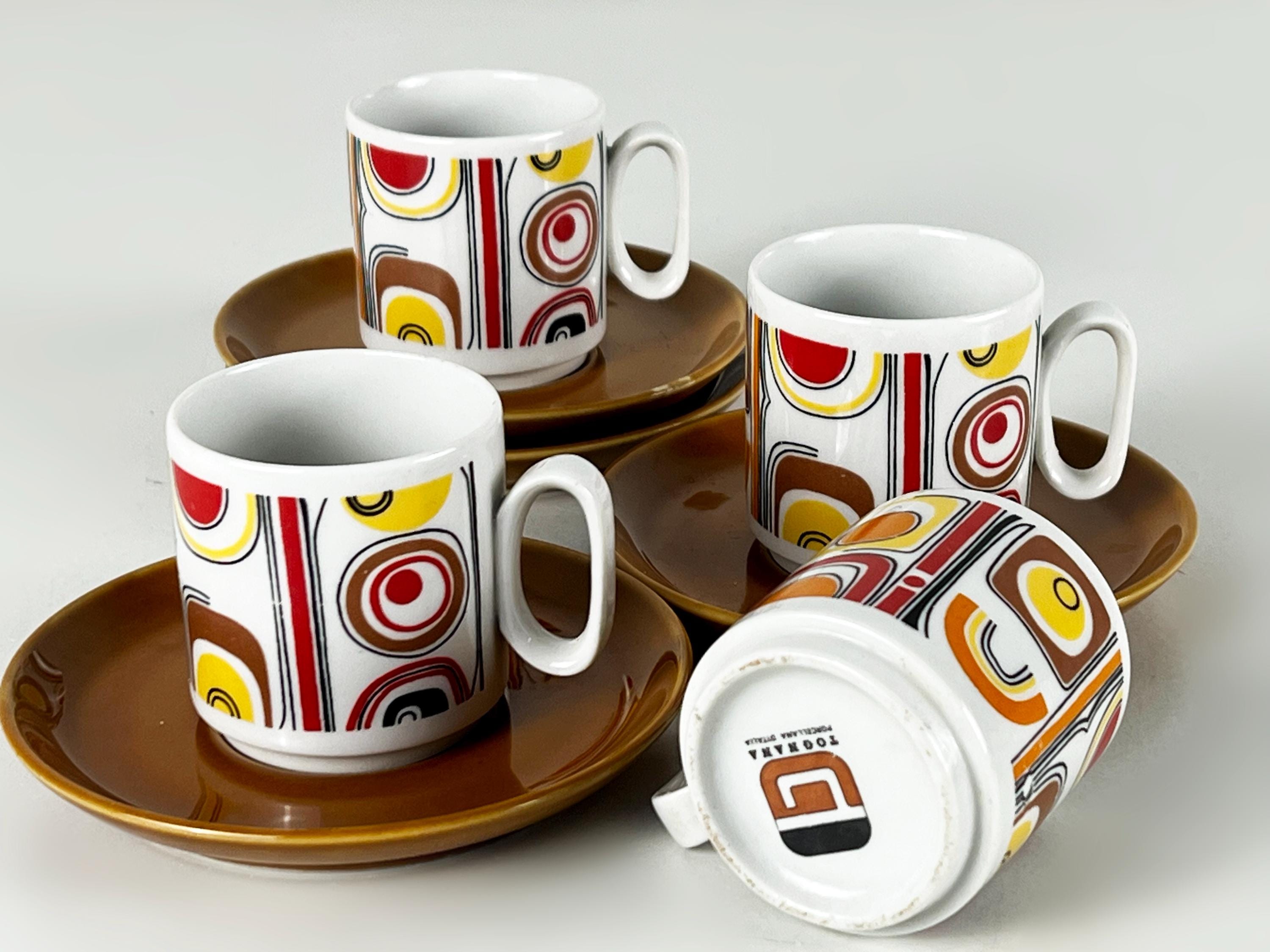 Set of 4 lovely Italian vintage porcelain coffee or espresso cups and saucers, Tognana Italy 1970s