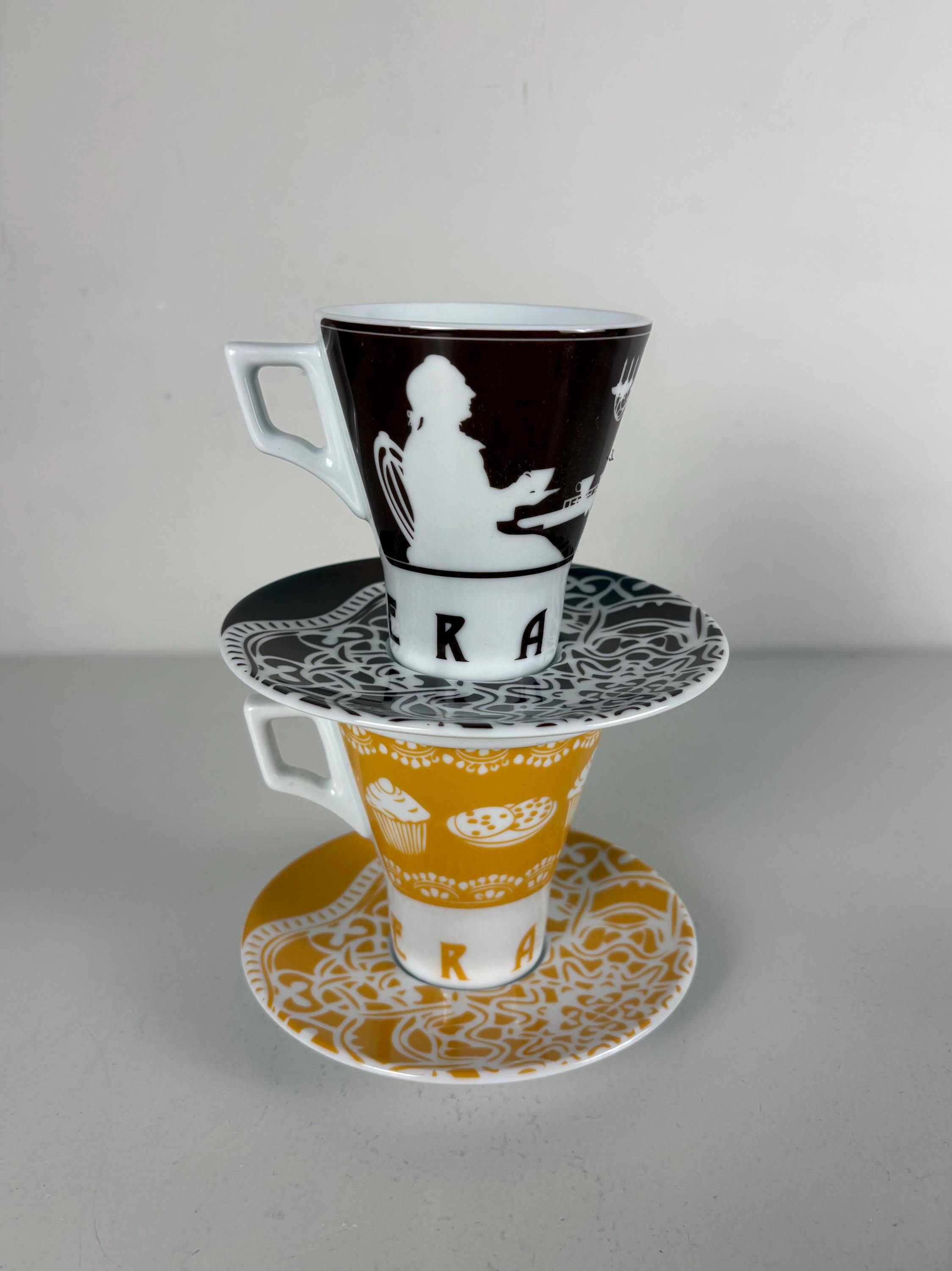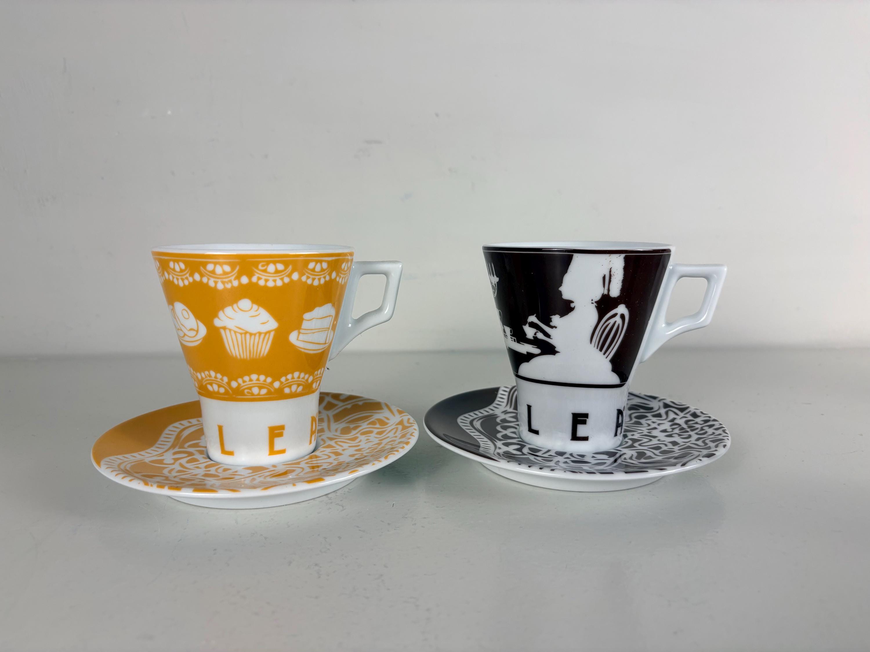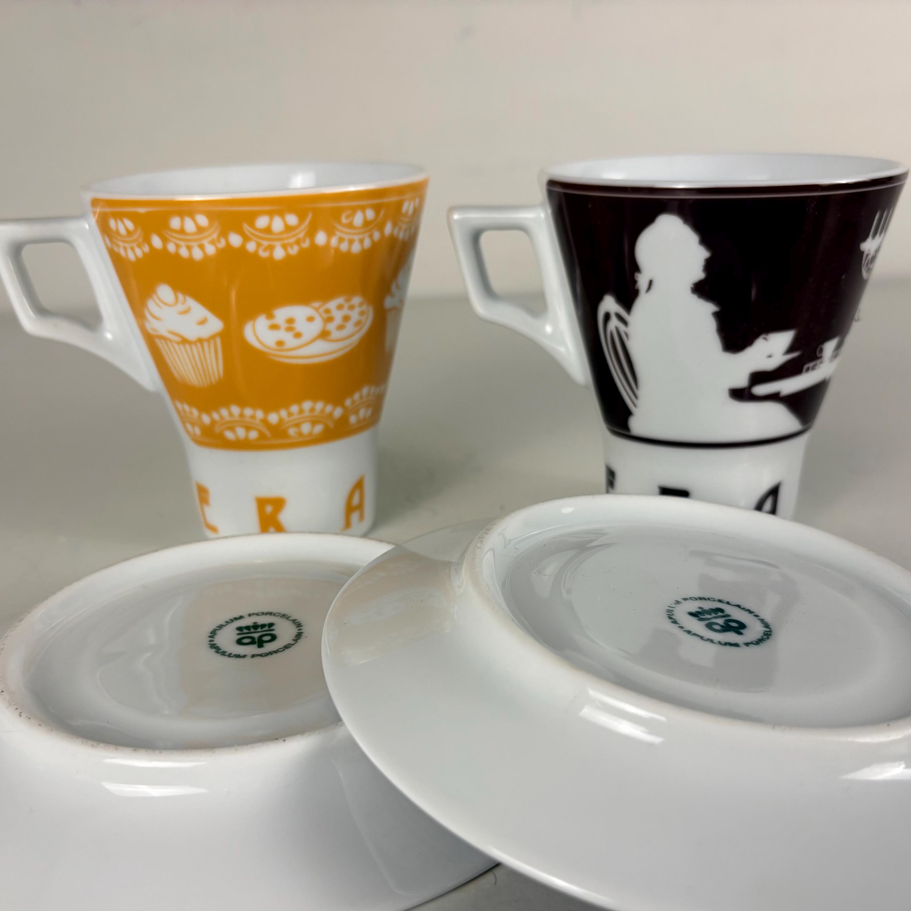 Sets of 2 hot chocolate cups of with matching saucers, bar quality porcelain from Eraclea Italy manufactured by Apulum Romania, 2000s