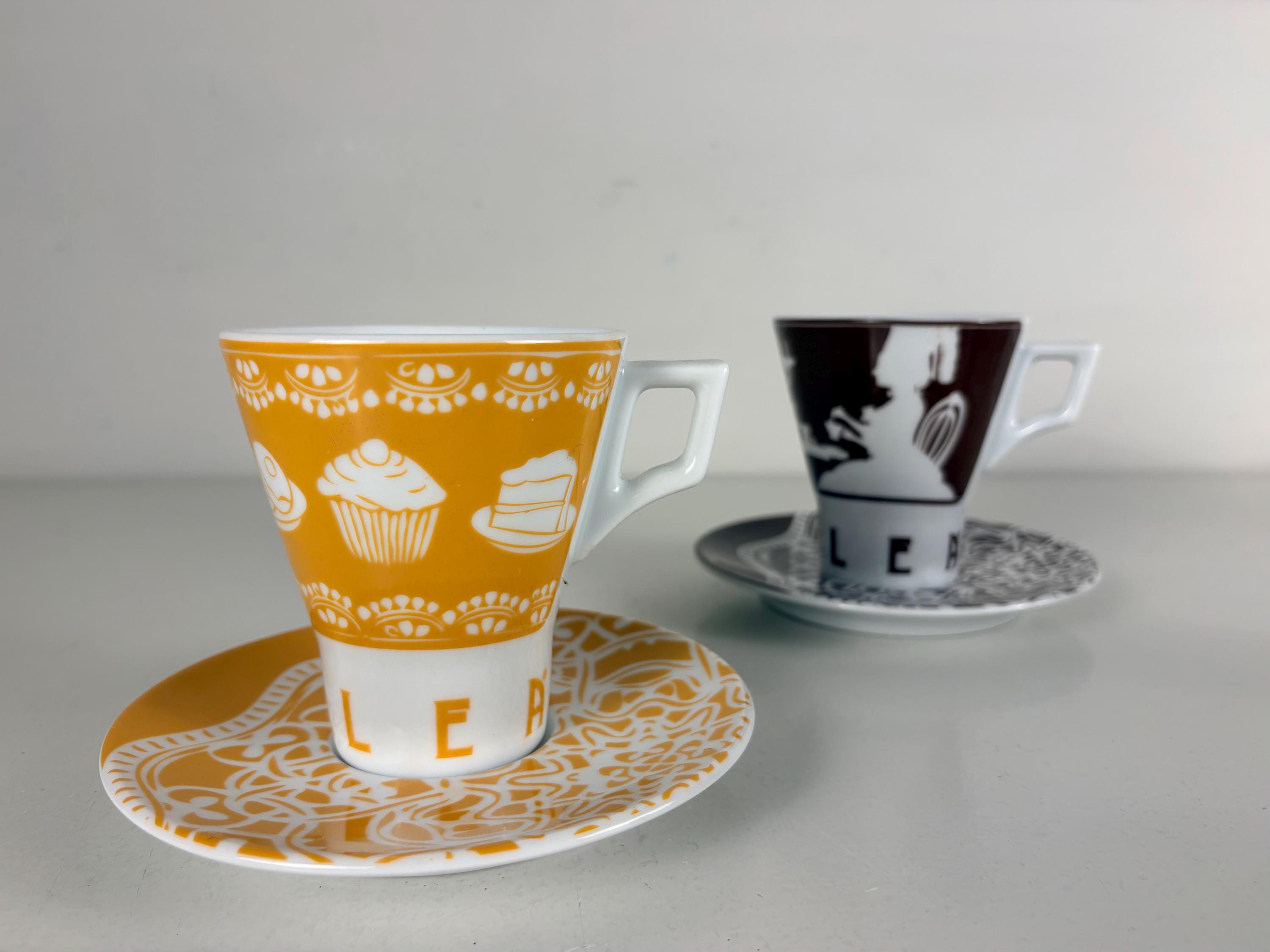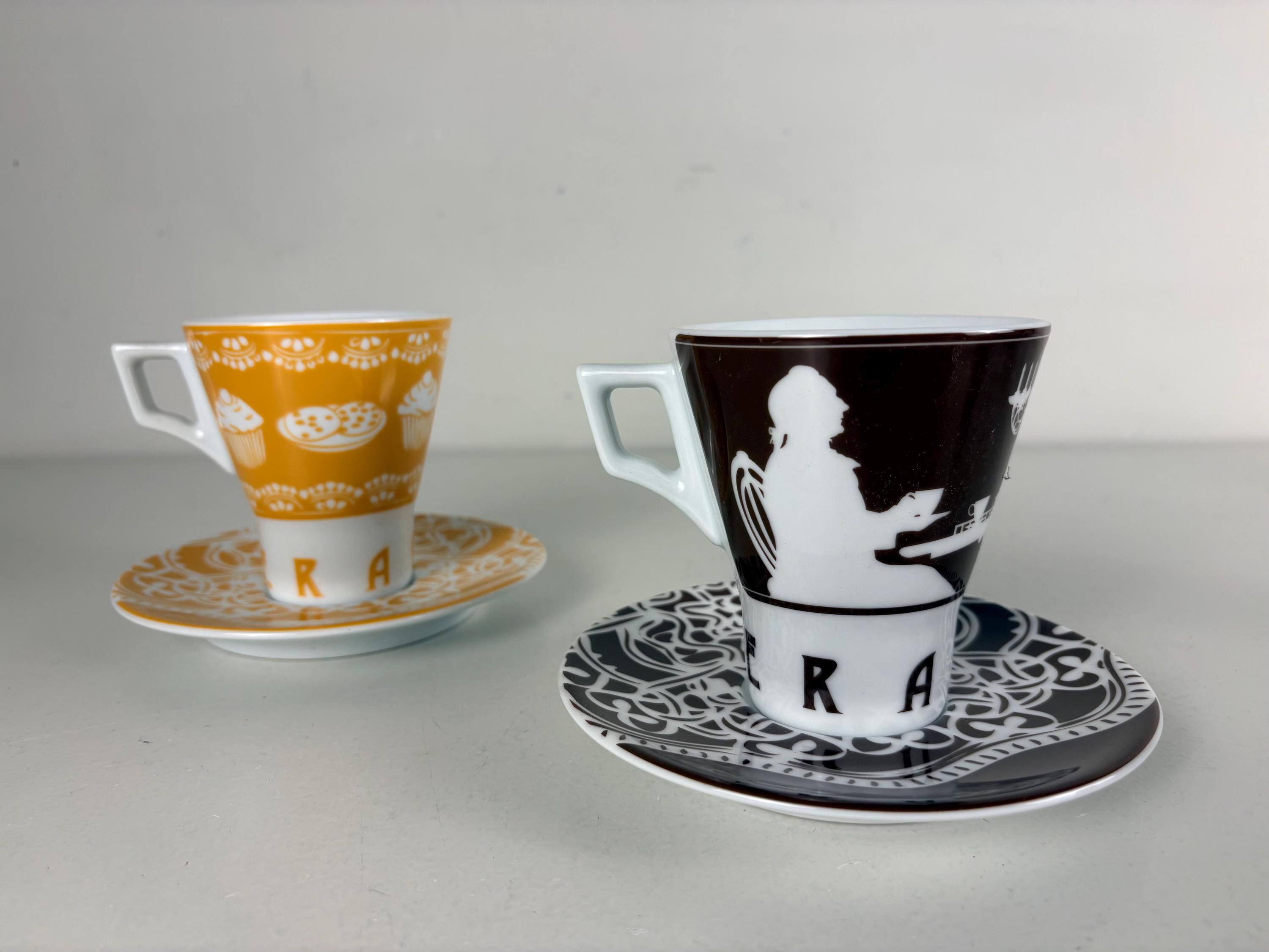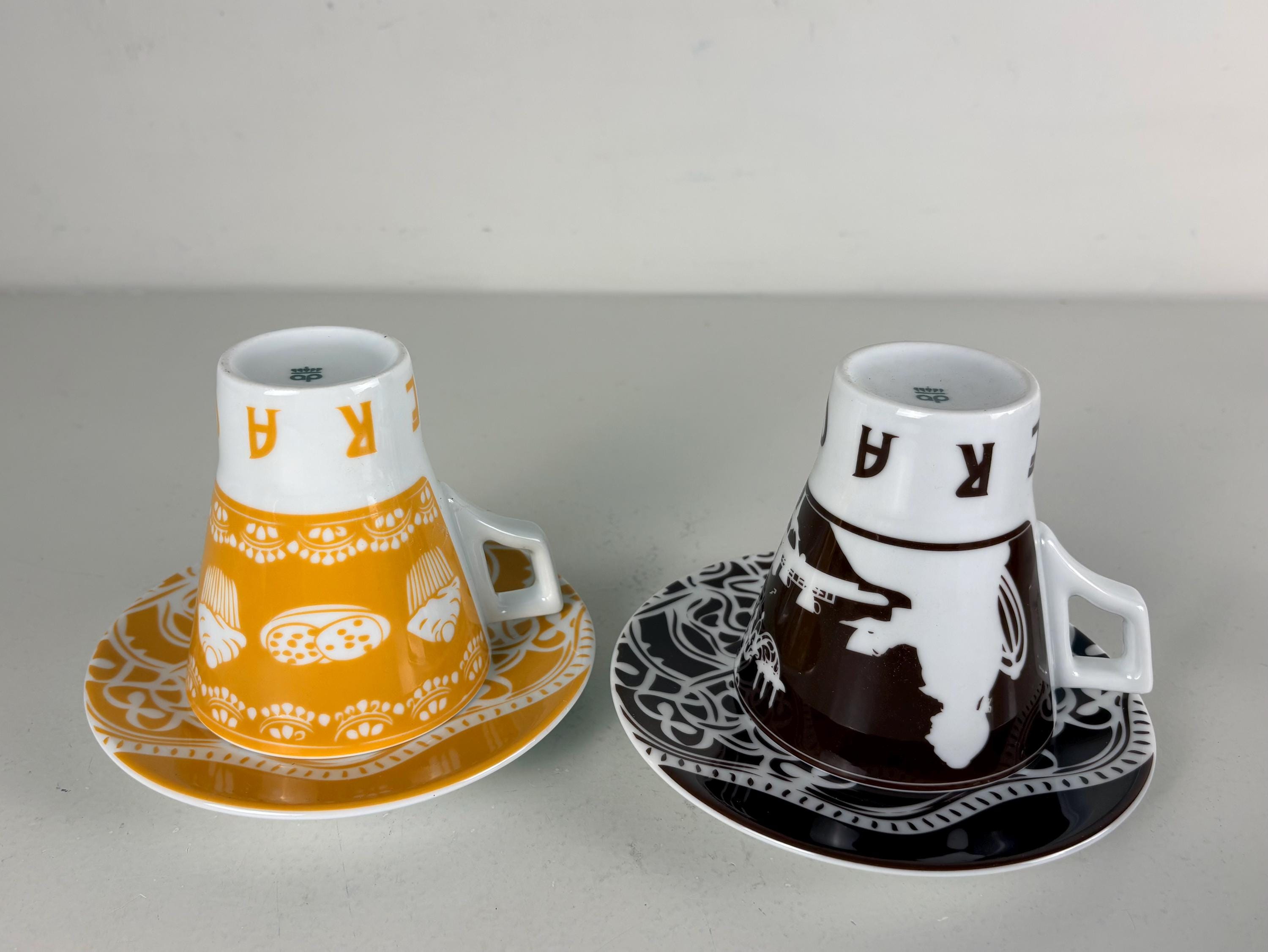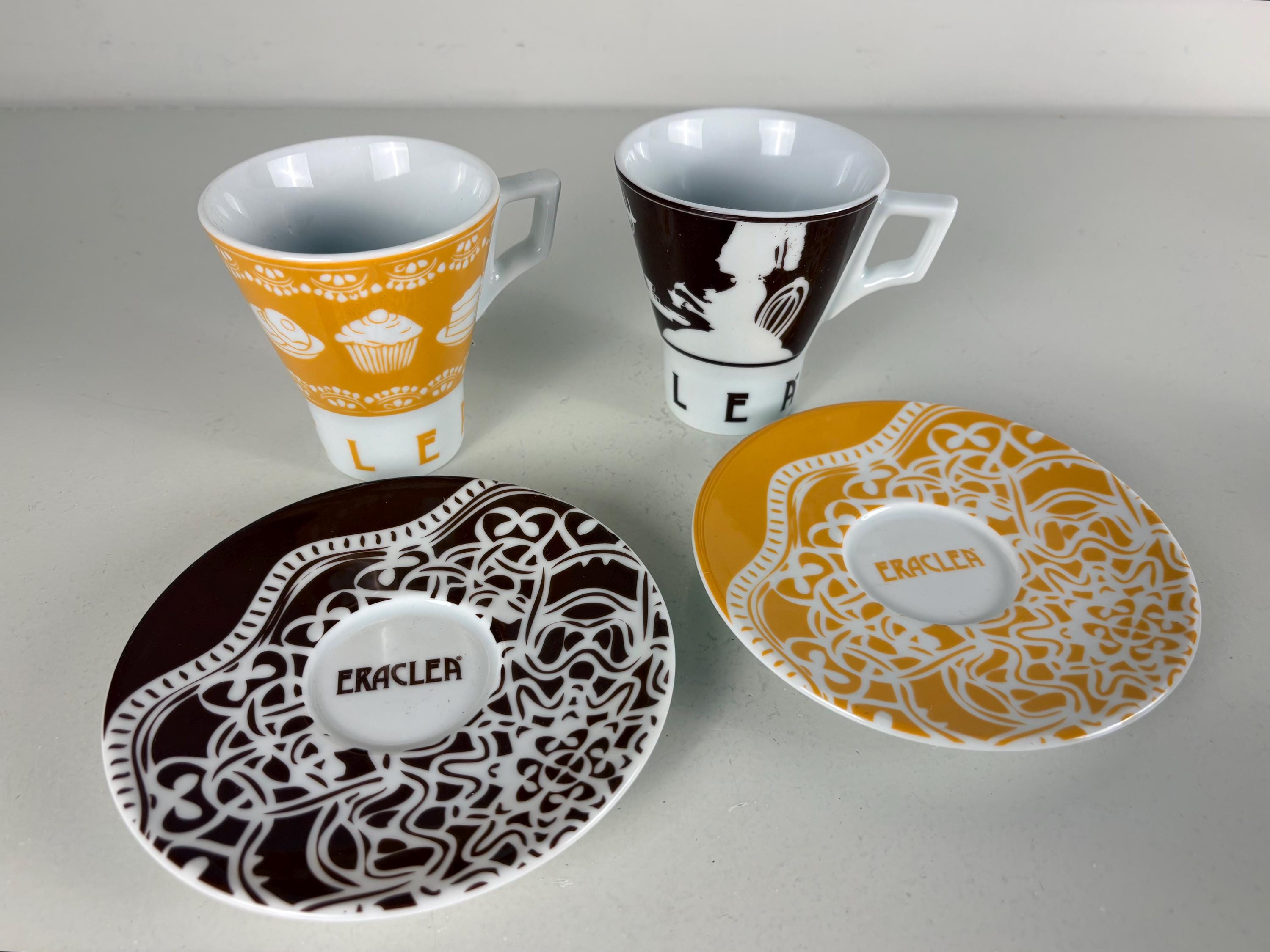 Sets of 2 hot chocolate cups of with matching saucers, bar quality porcelain from Eraclea Italy manufactured by Apulum Romania, 2000s