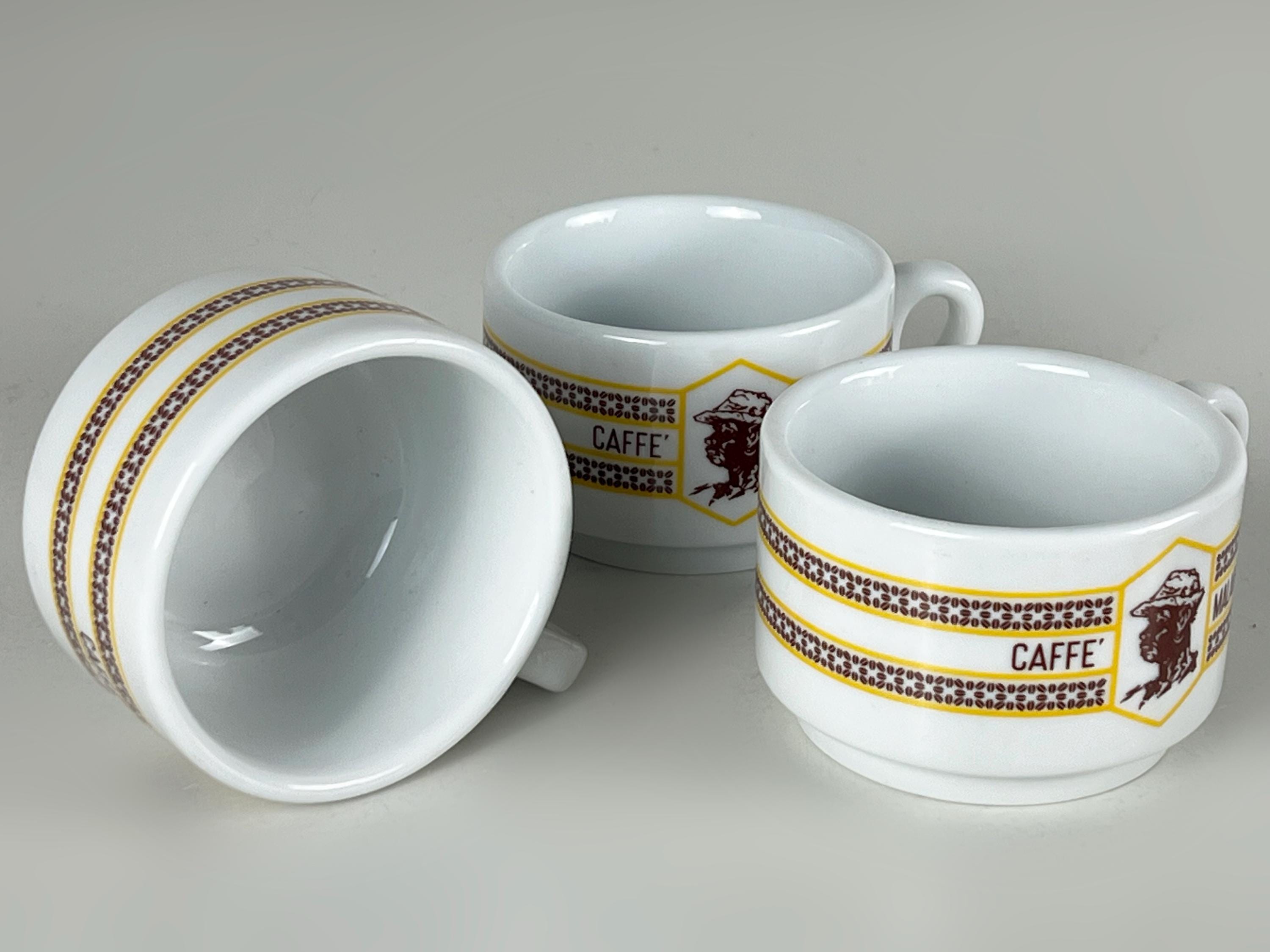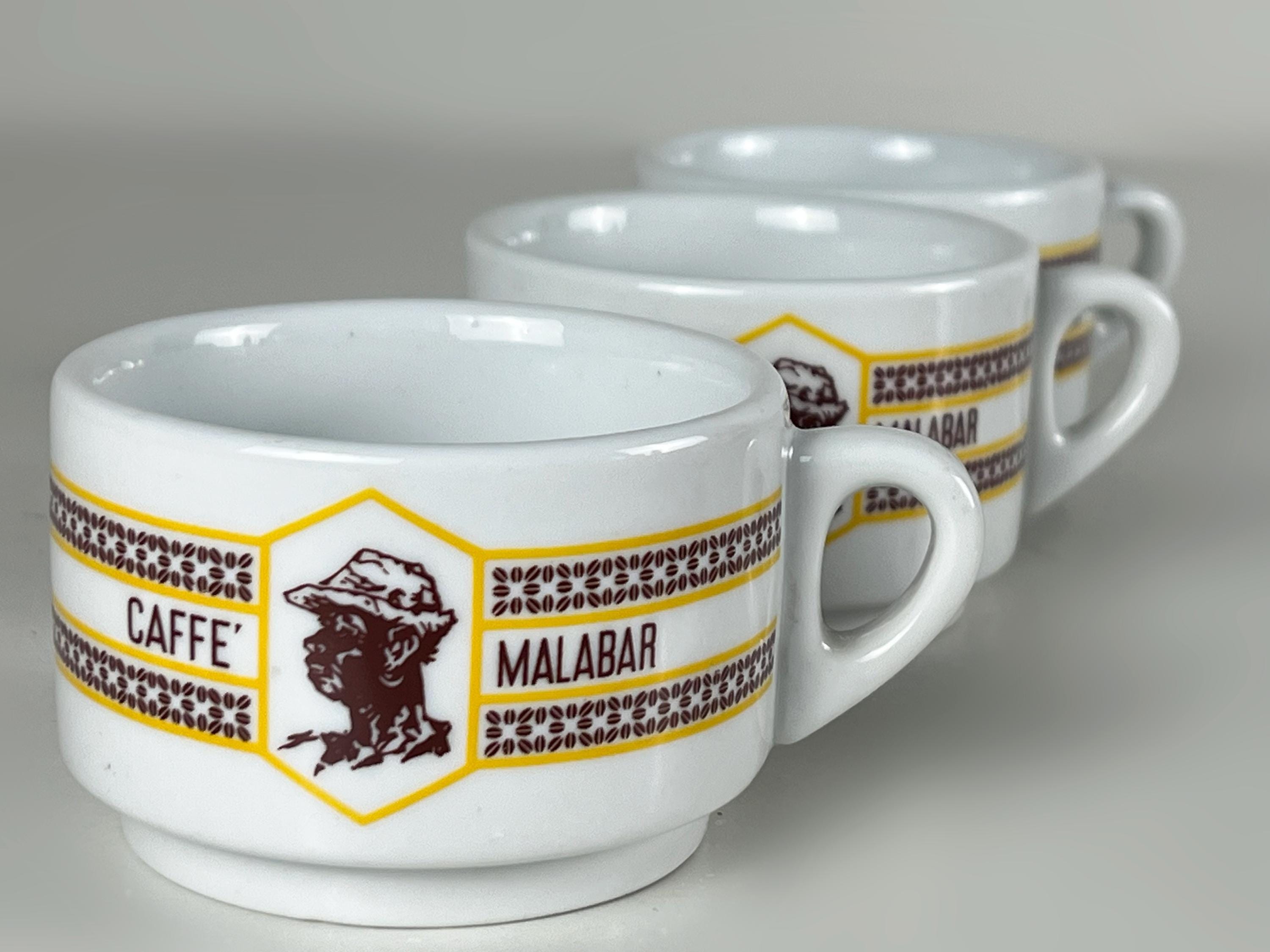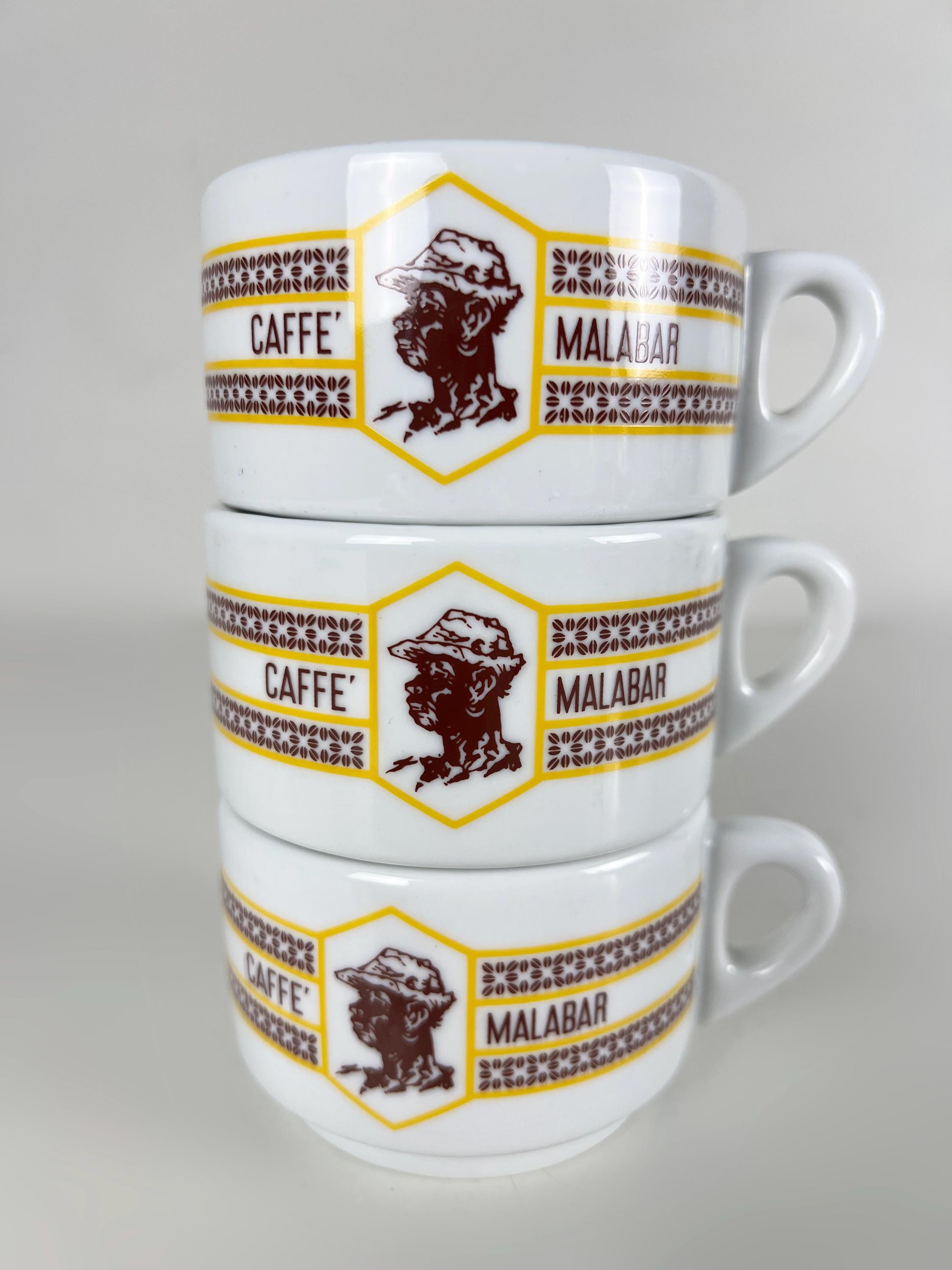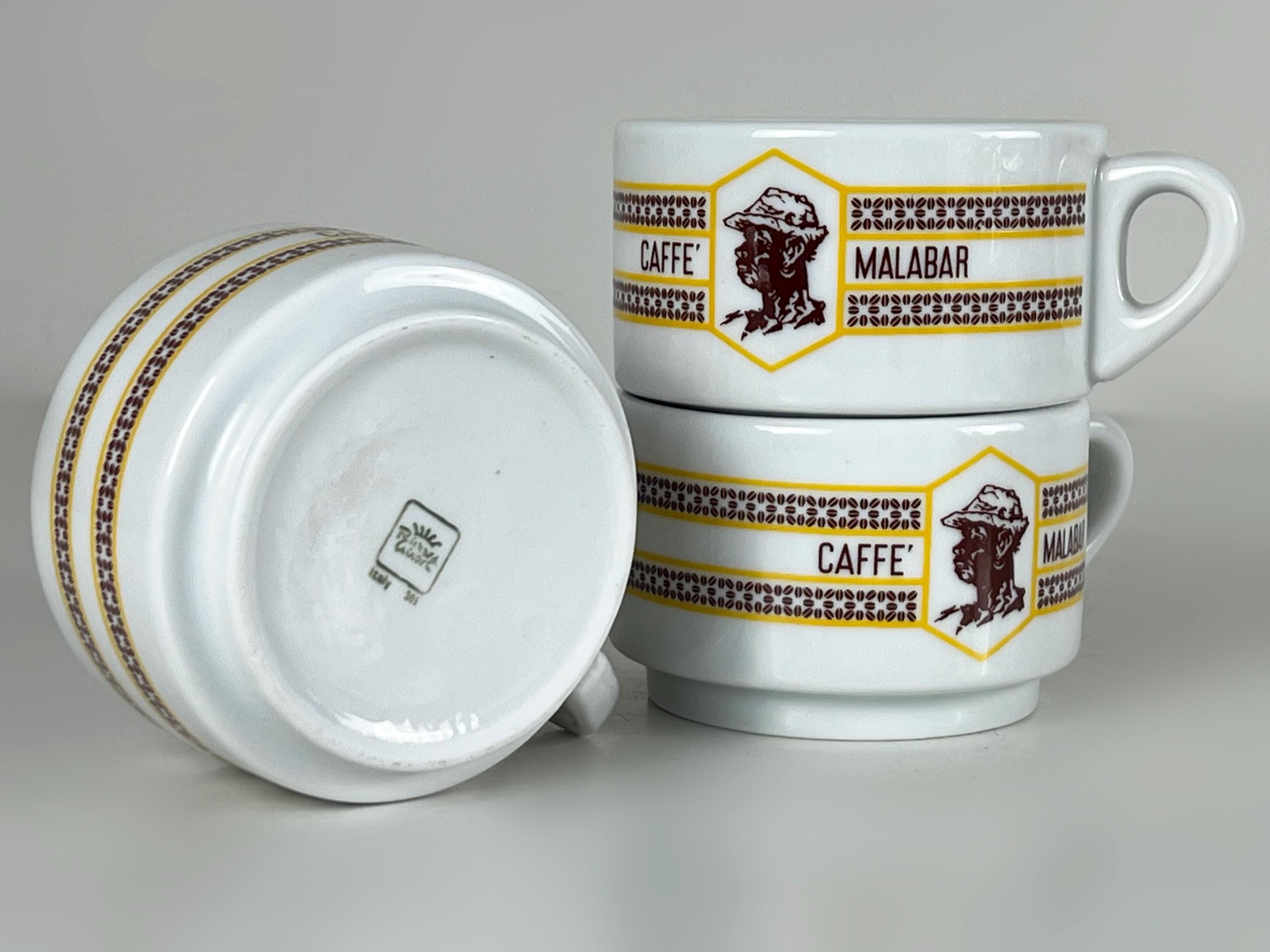 We offer a set of 2 or 3 lovely porcelain bar quality cappuccino cups, decorated with Malabar Caffè logo in brown and yellow. Manufactured in the 1970s by renowned Italian porcelain manufacturer Richard Ginori.