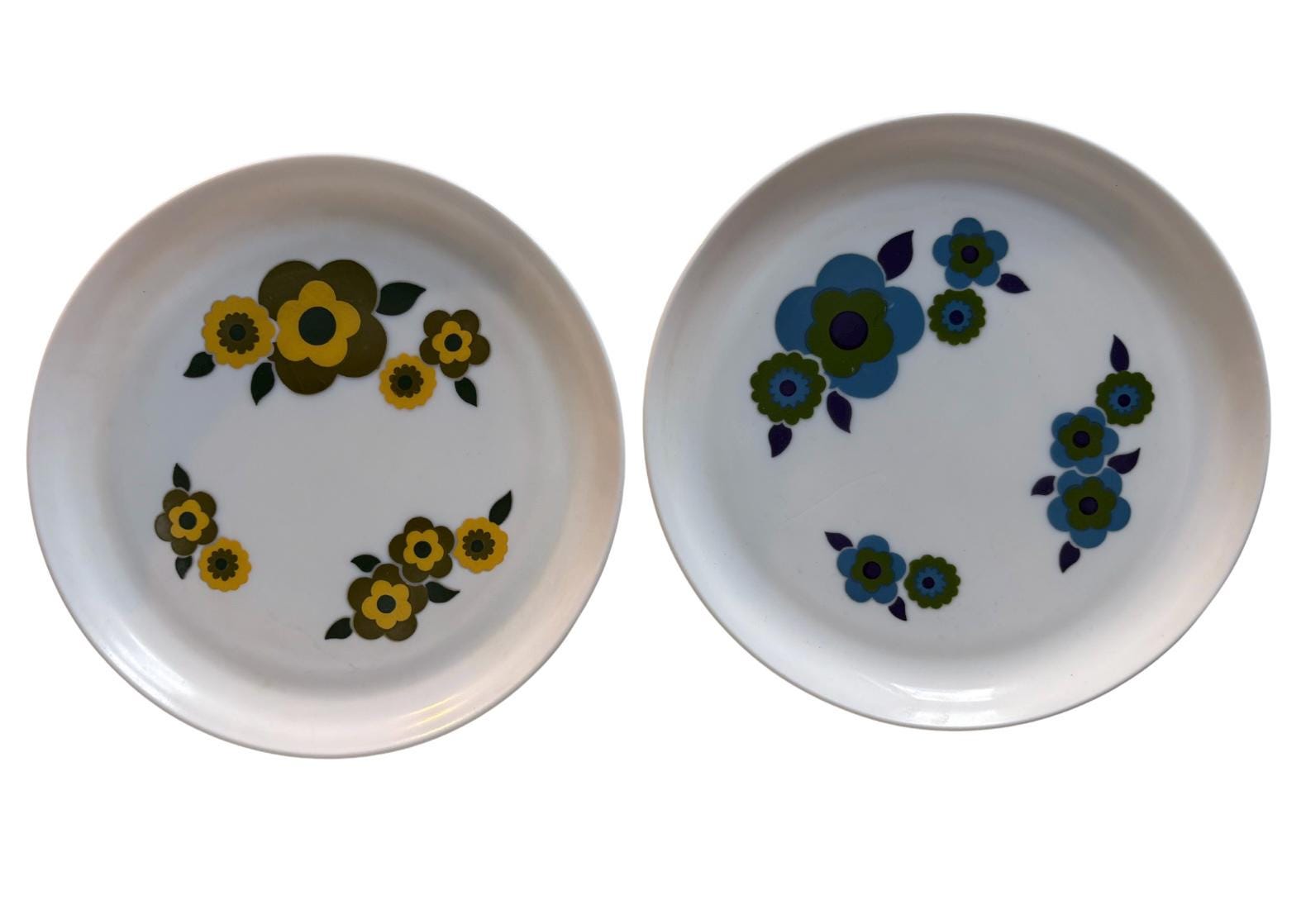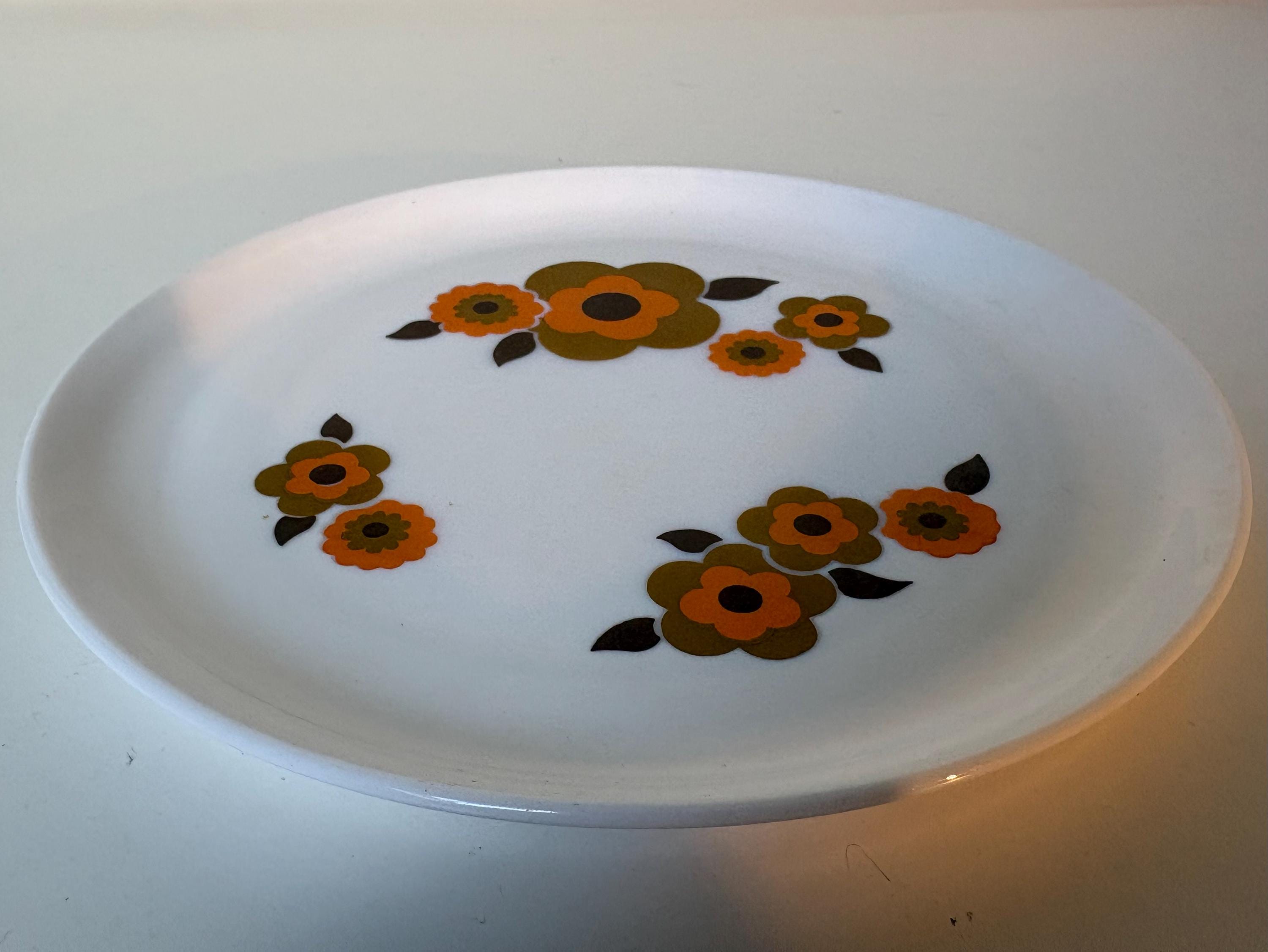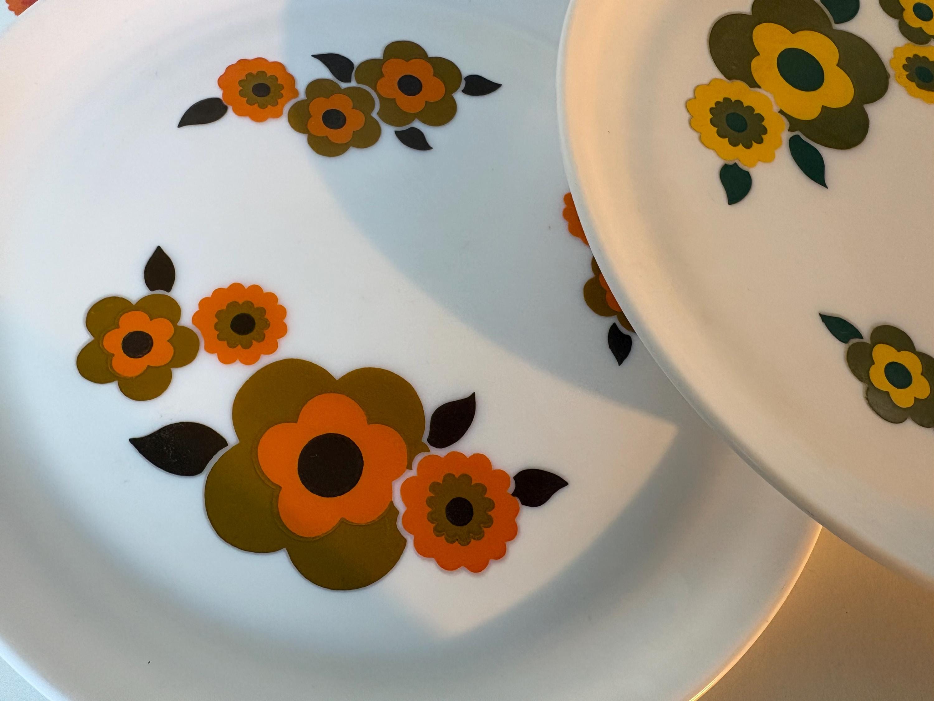 Sets of 2 Retro Arcopal Lotus decor dinner plates Arcopal France 1970s kitchenware, retro mcm flower design