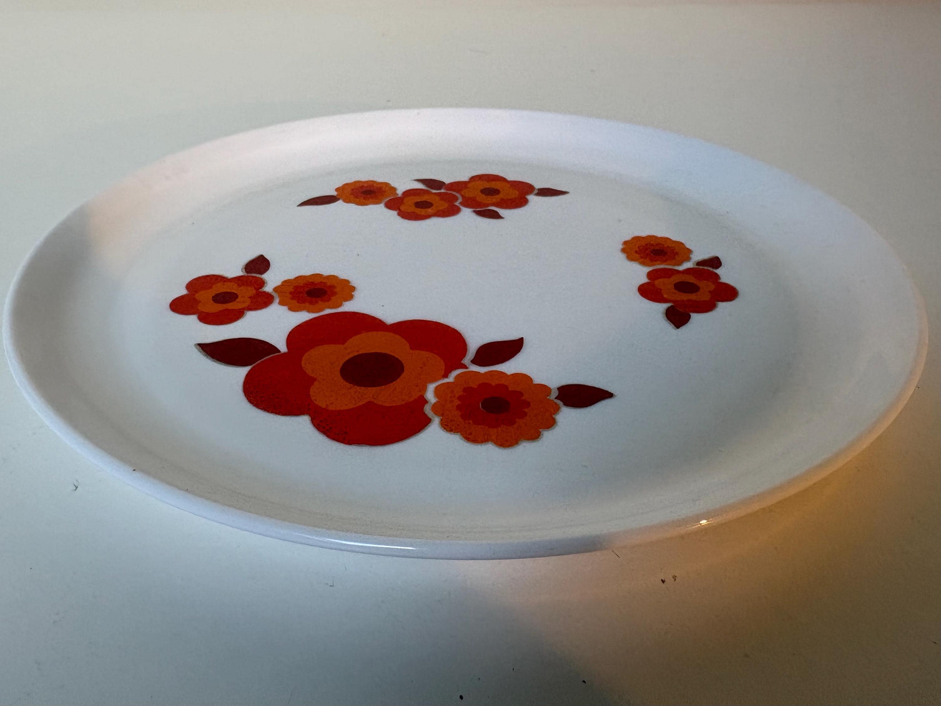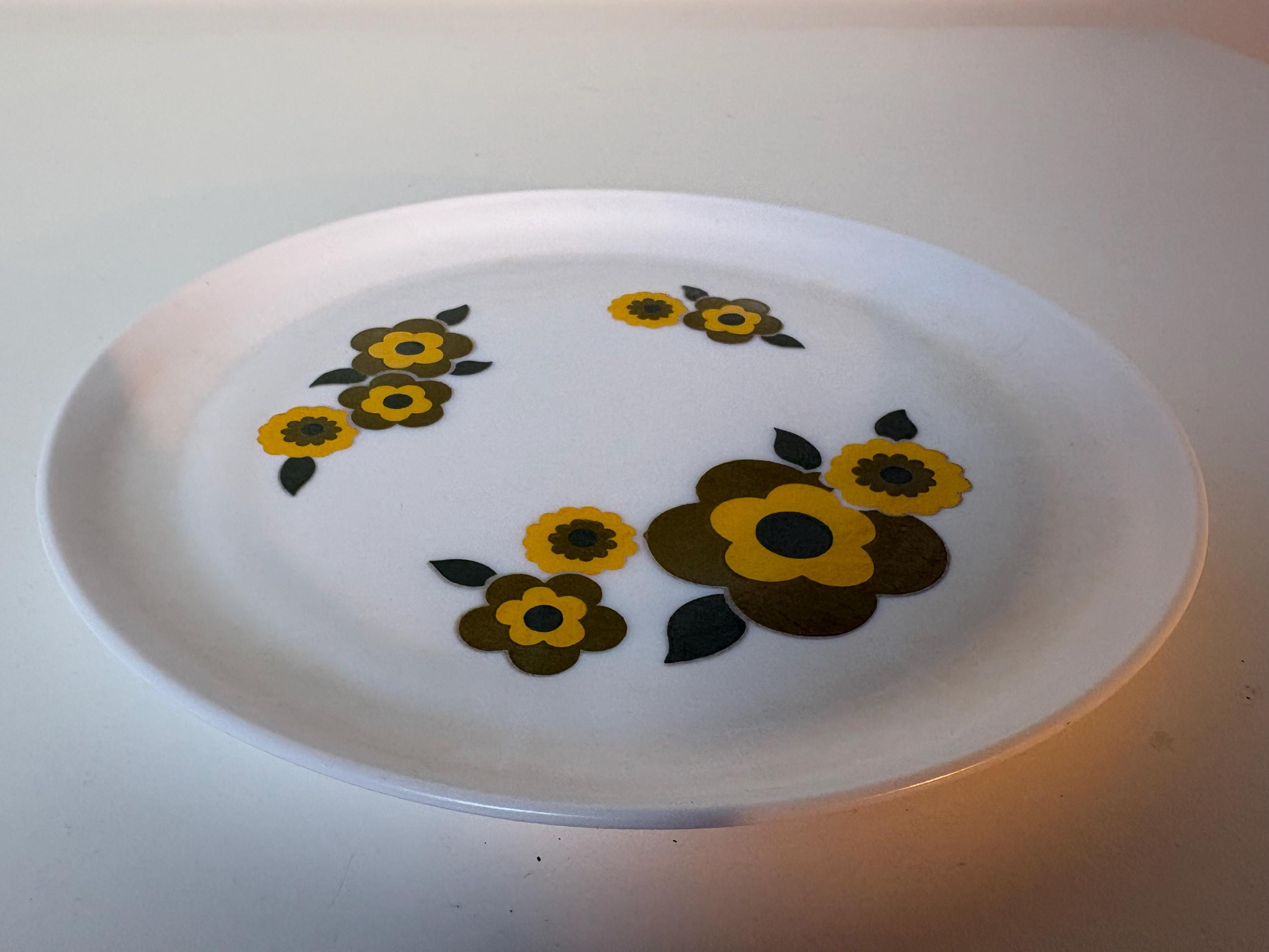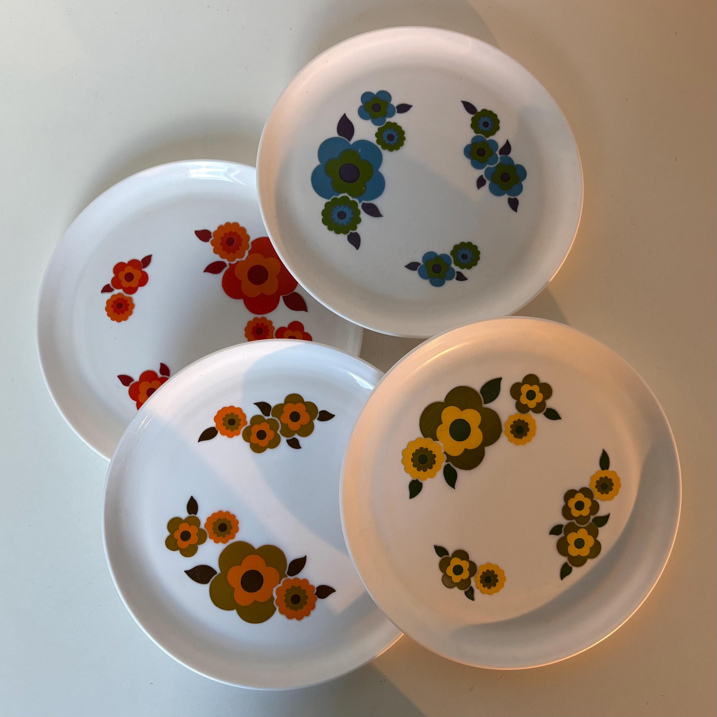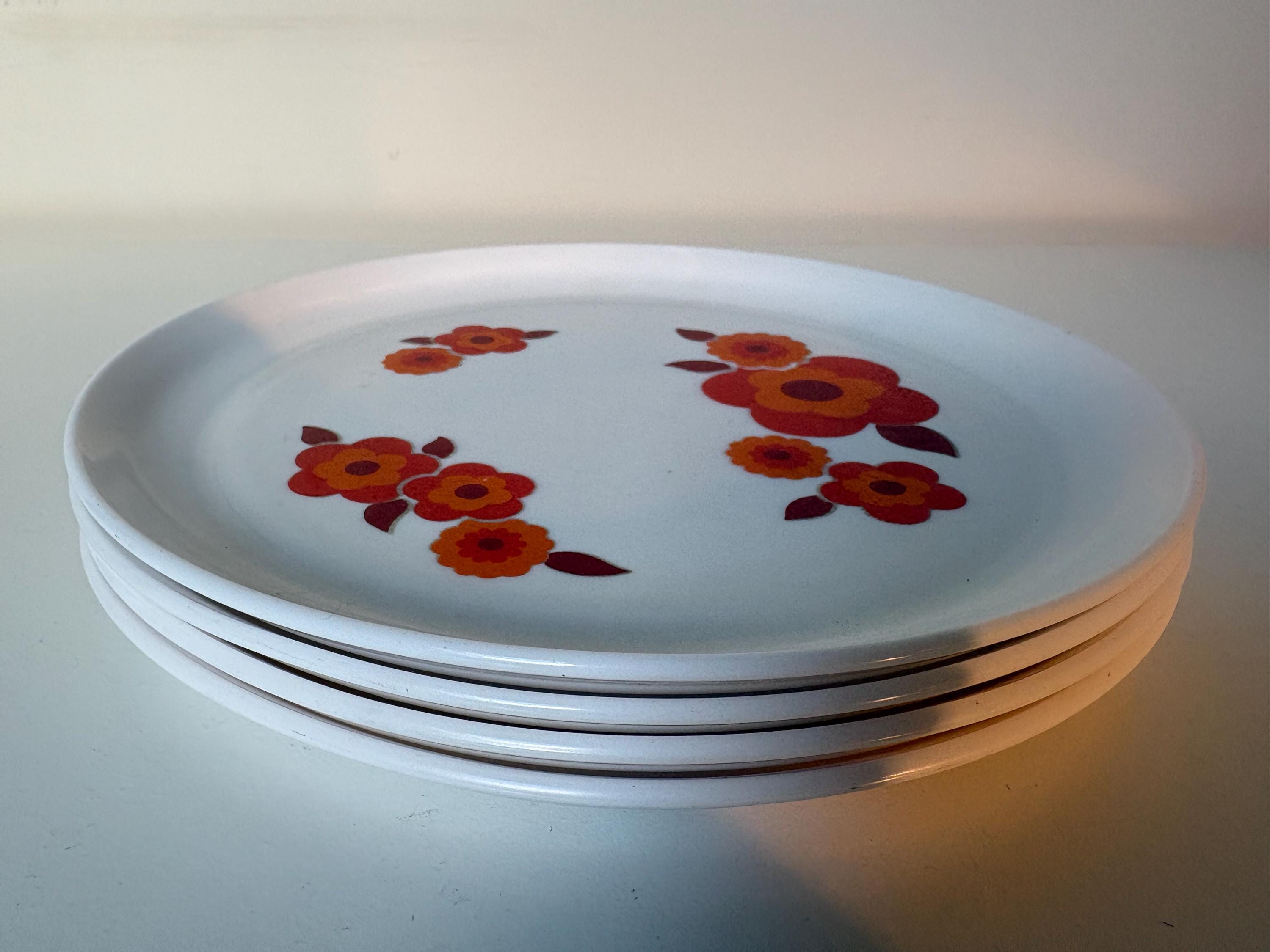 Sets of 2 Retro Arcopal Lotus decor dinner plates Arcopal France 1970s kitchenware, retro mcm flower design