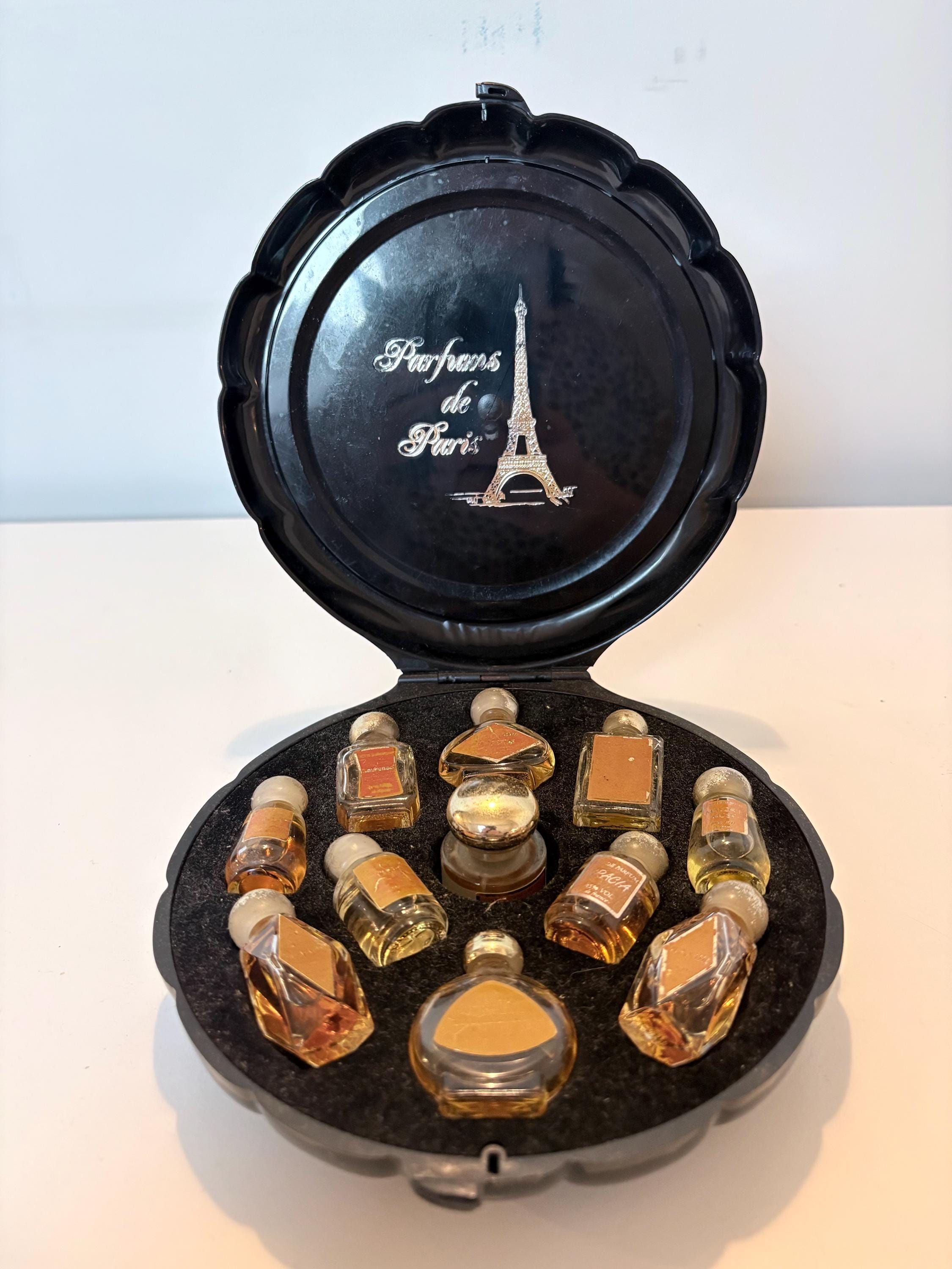 Vintage Perfume Miniatures set of 10 mini bottles, Parfumes de Paris in plastic shell, 1980s