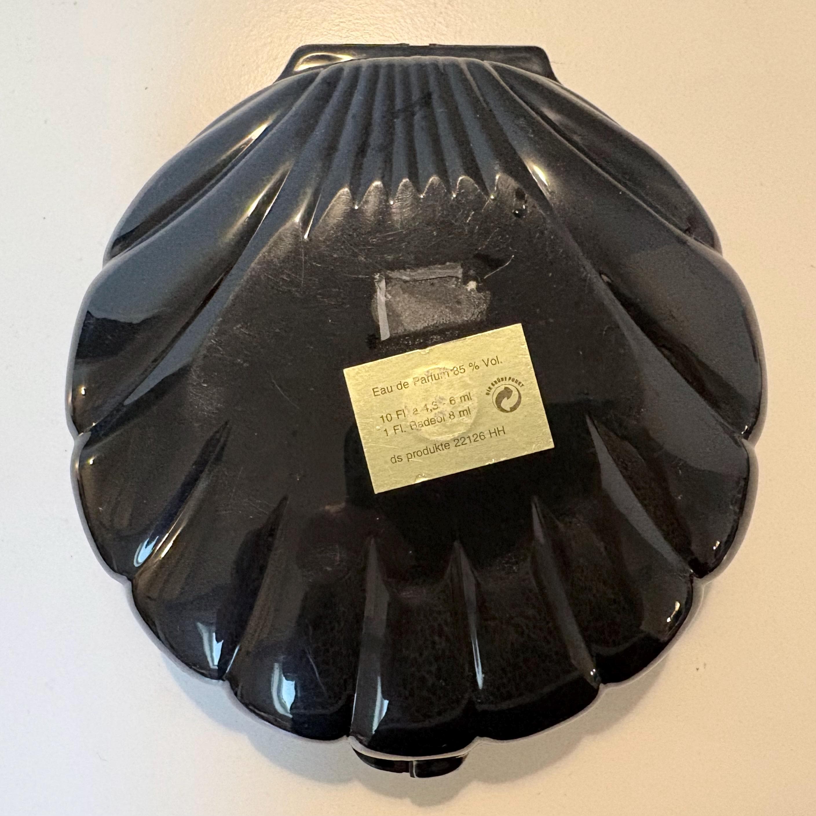Vintage Perfume Miniatures set. Set of 10 mini bottles, Parfumes de Paris in plastic shell shaped box with picture of Eiffel Tower inside, 1980s.