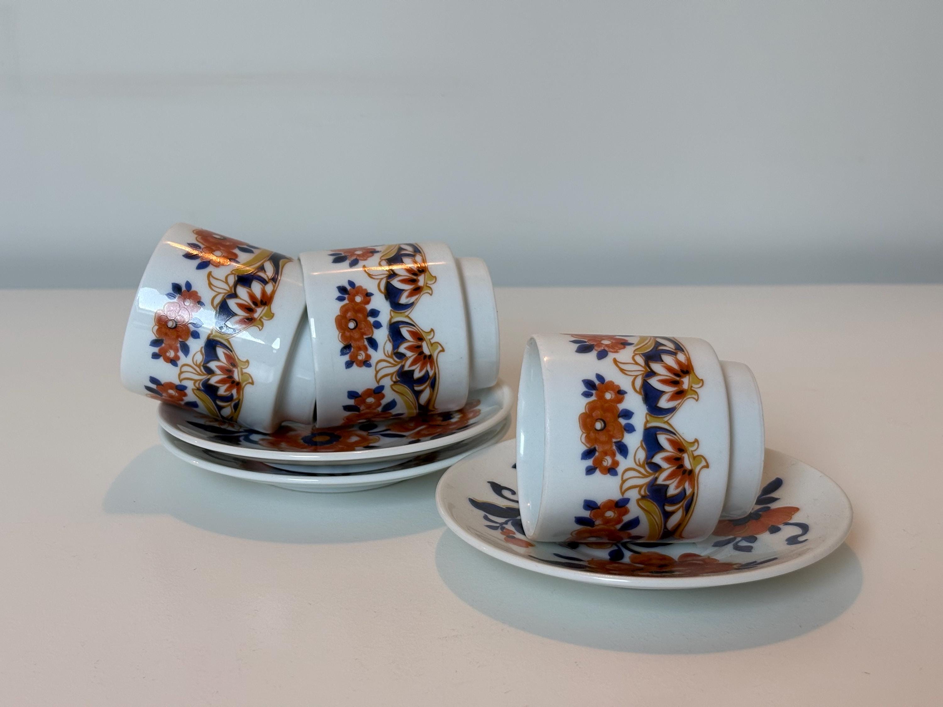 Vintage sets of 3 Italian coffee cups and saucers, porcelain decorated with flowers, vintage ceramics, manufactured by ANCAP Italy 1980s