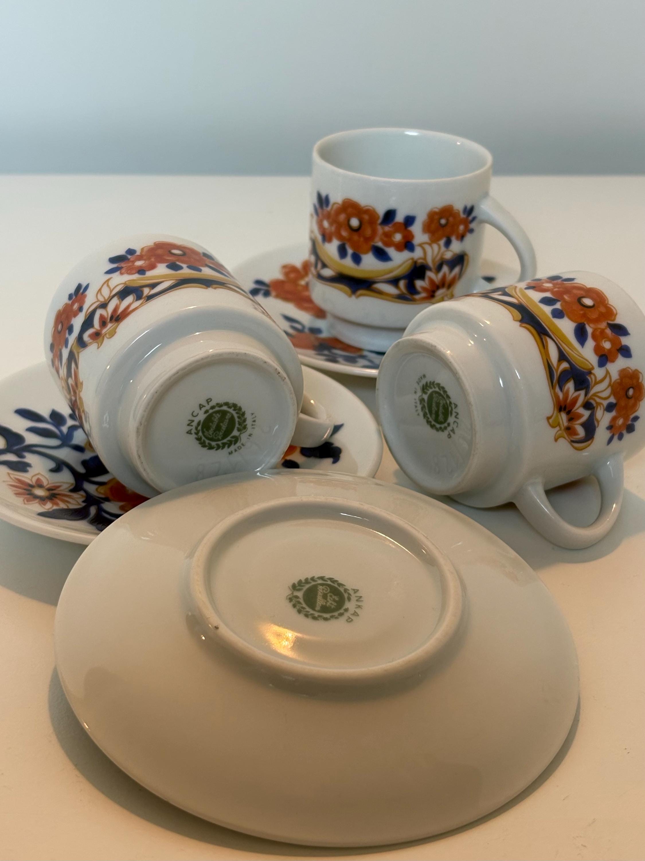 The cups are marked ANCAP made in Italy and in French "veritable porcelain", there is also the number 26/128 imprinted on the bottom.