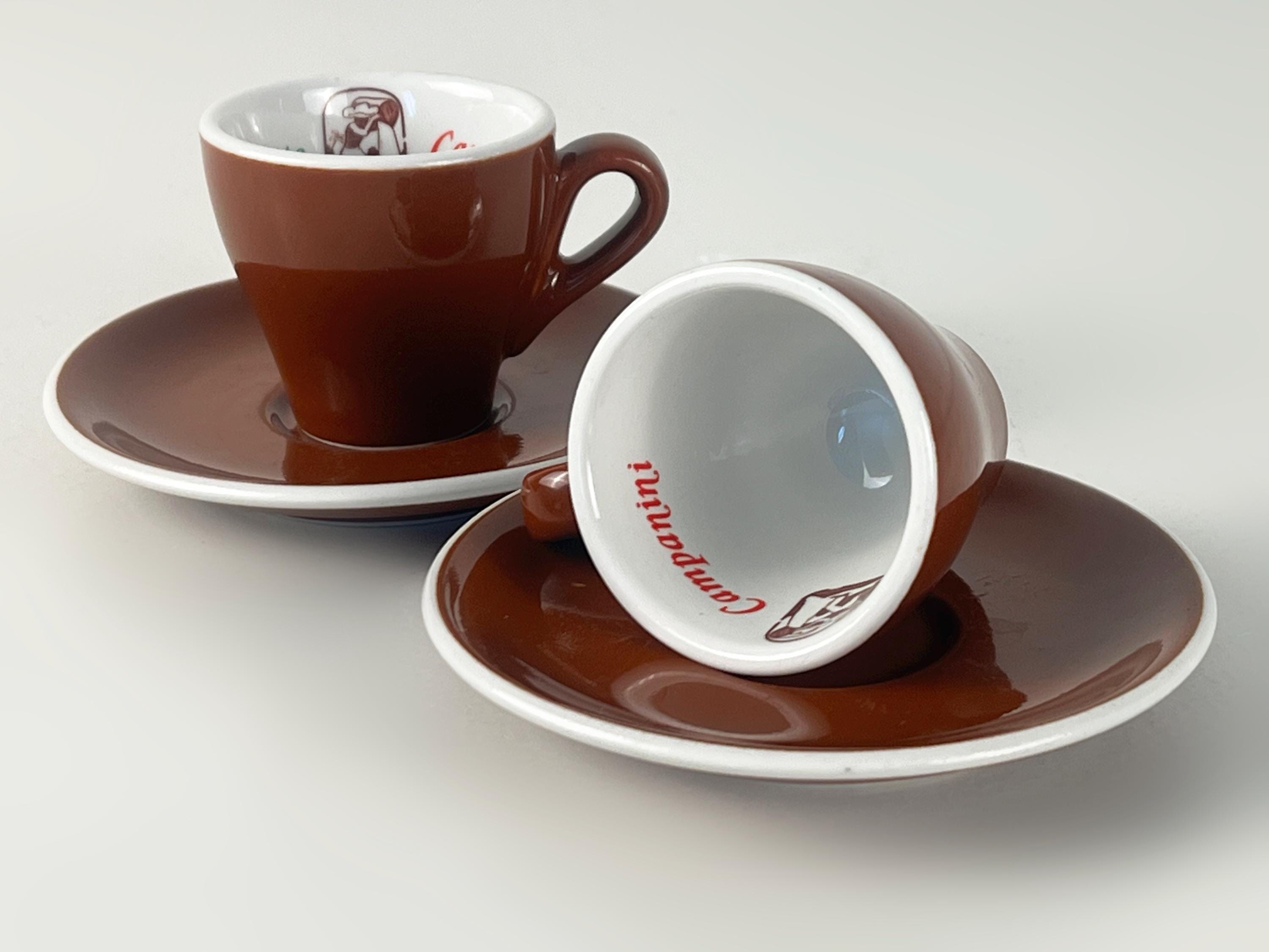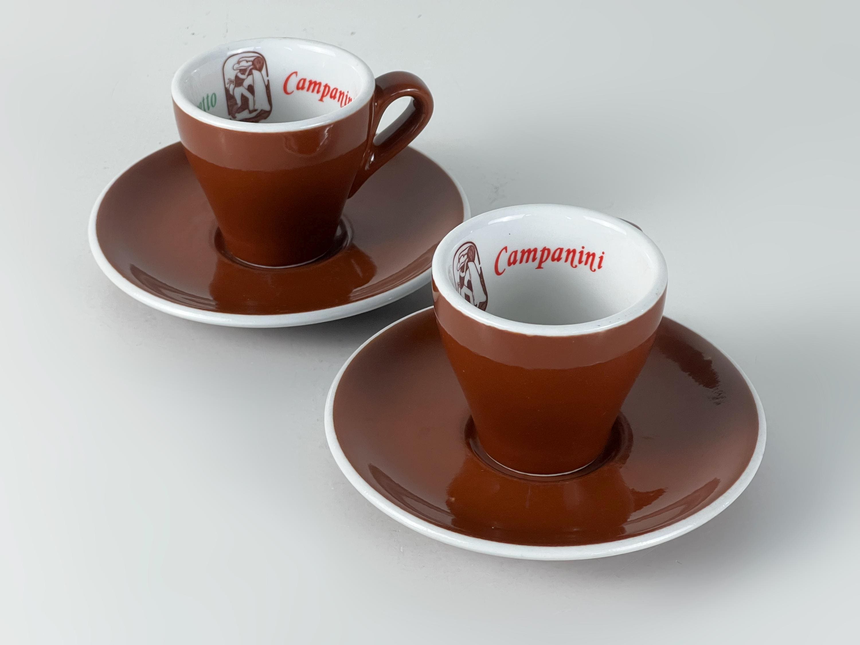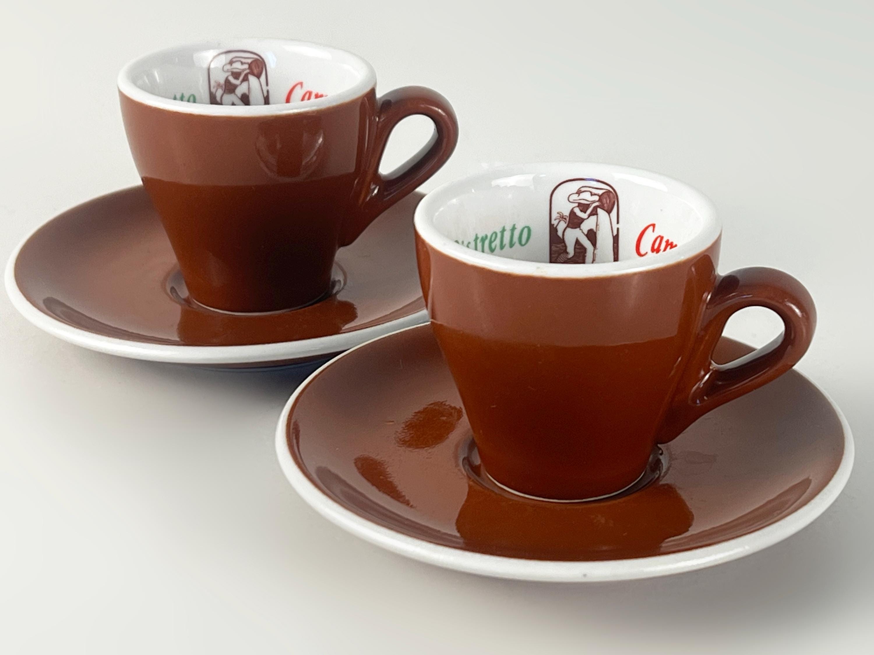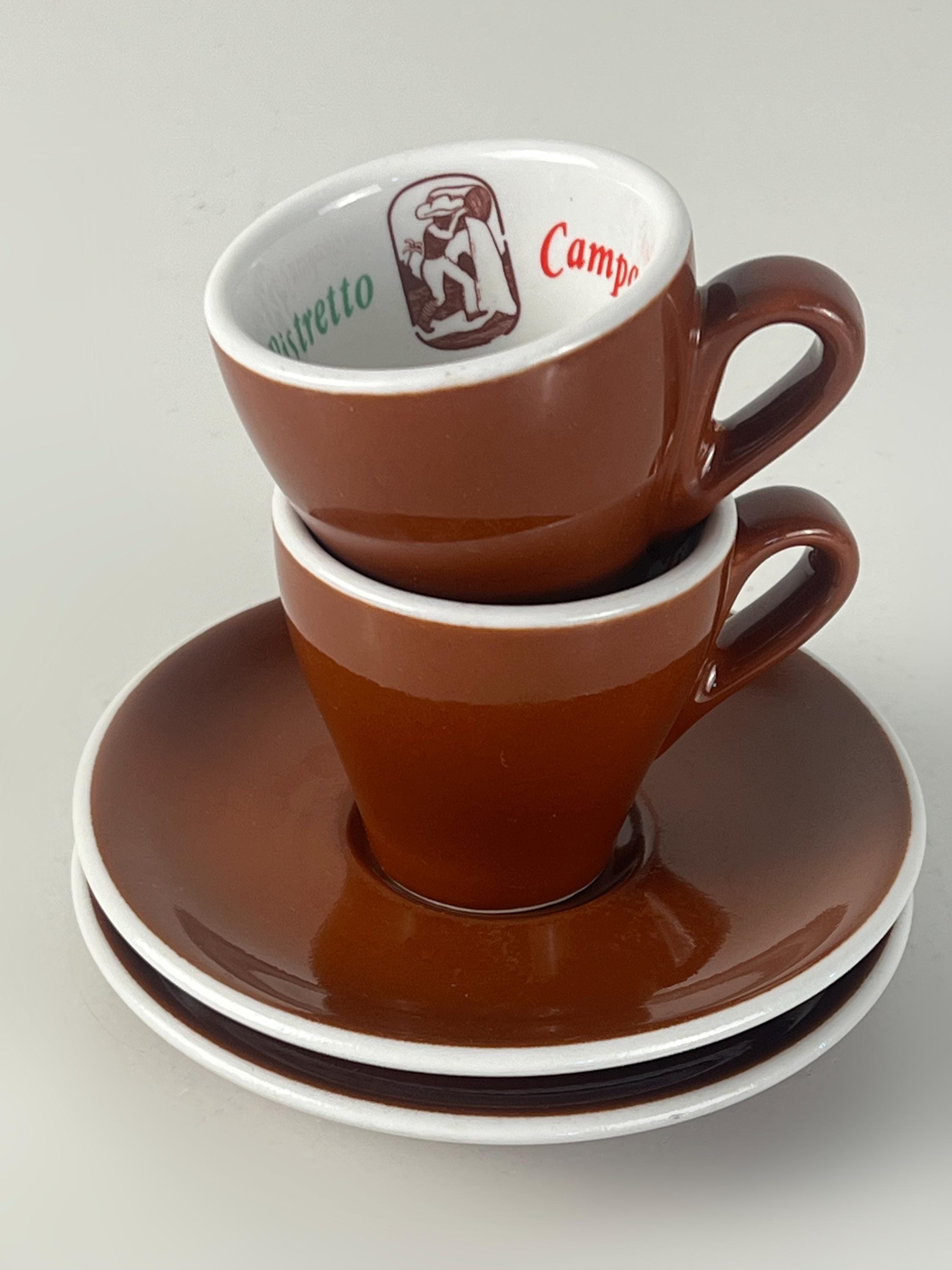 Set of 2 Vintage classic Italian espresso cups and saucers in classic brown and white advertising Ristretto Campanini