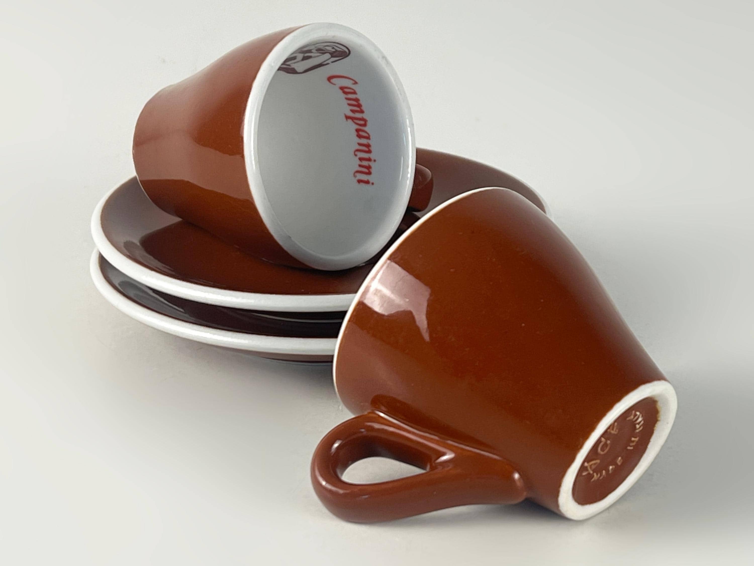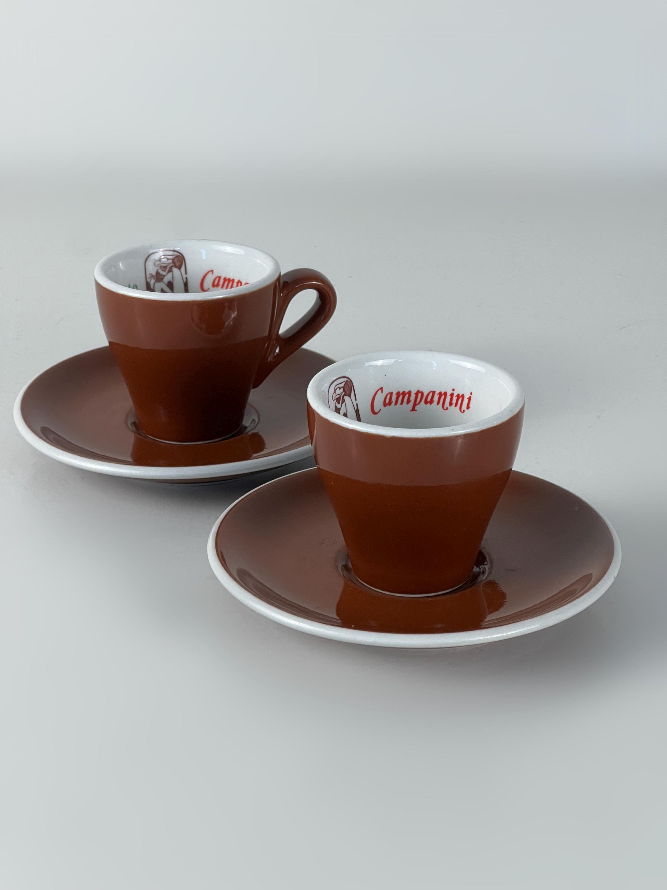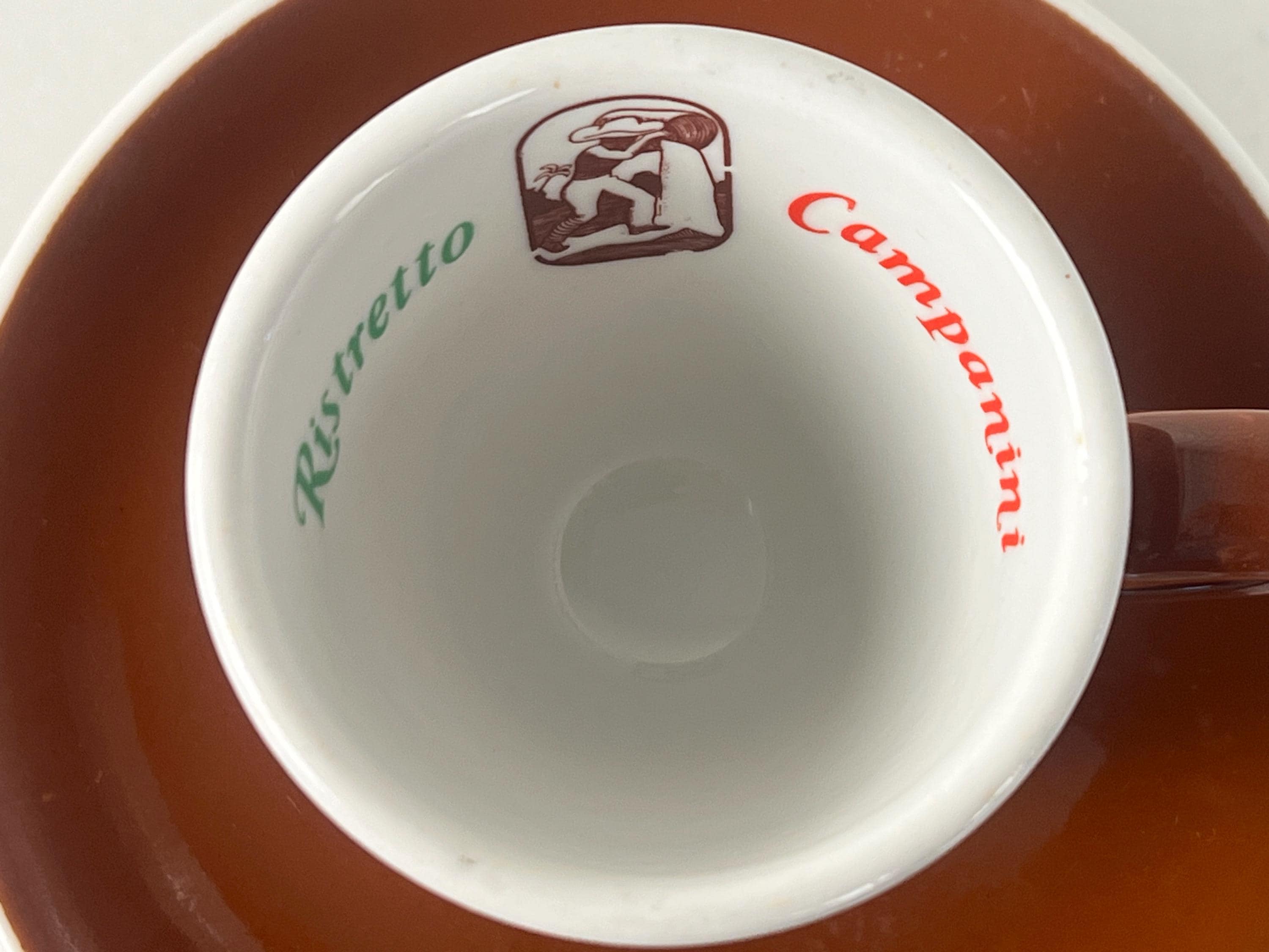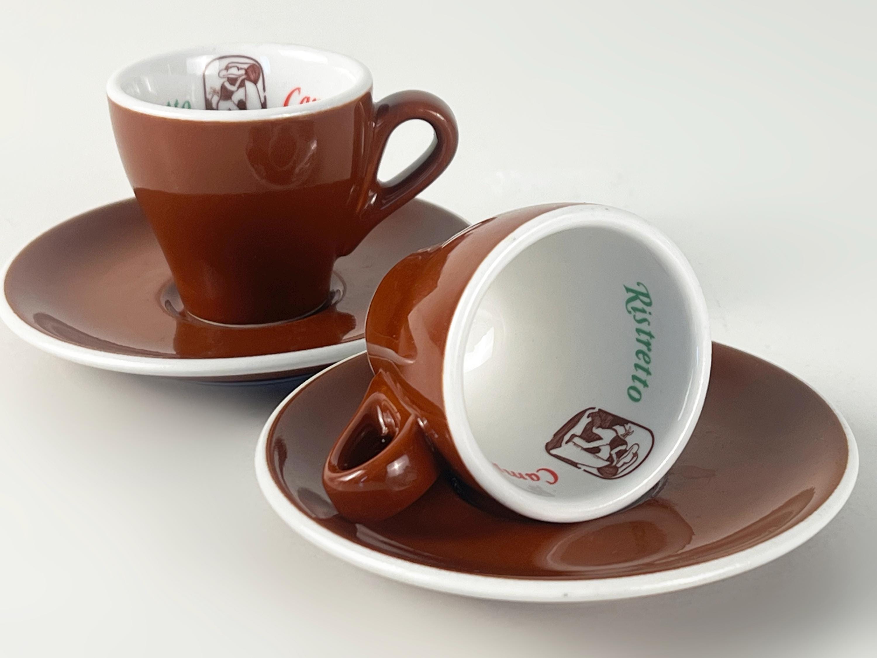 Set of 2 Vintage classic Italian espresso cups and saucers in classic brown and white advertising Ristretto Campanini