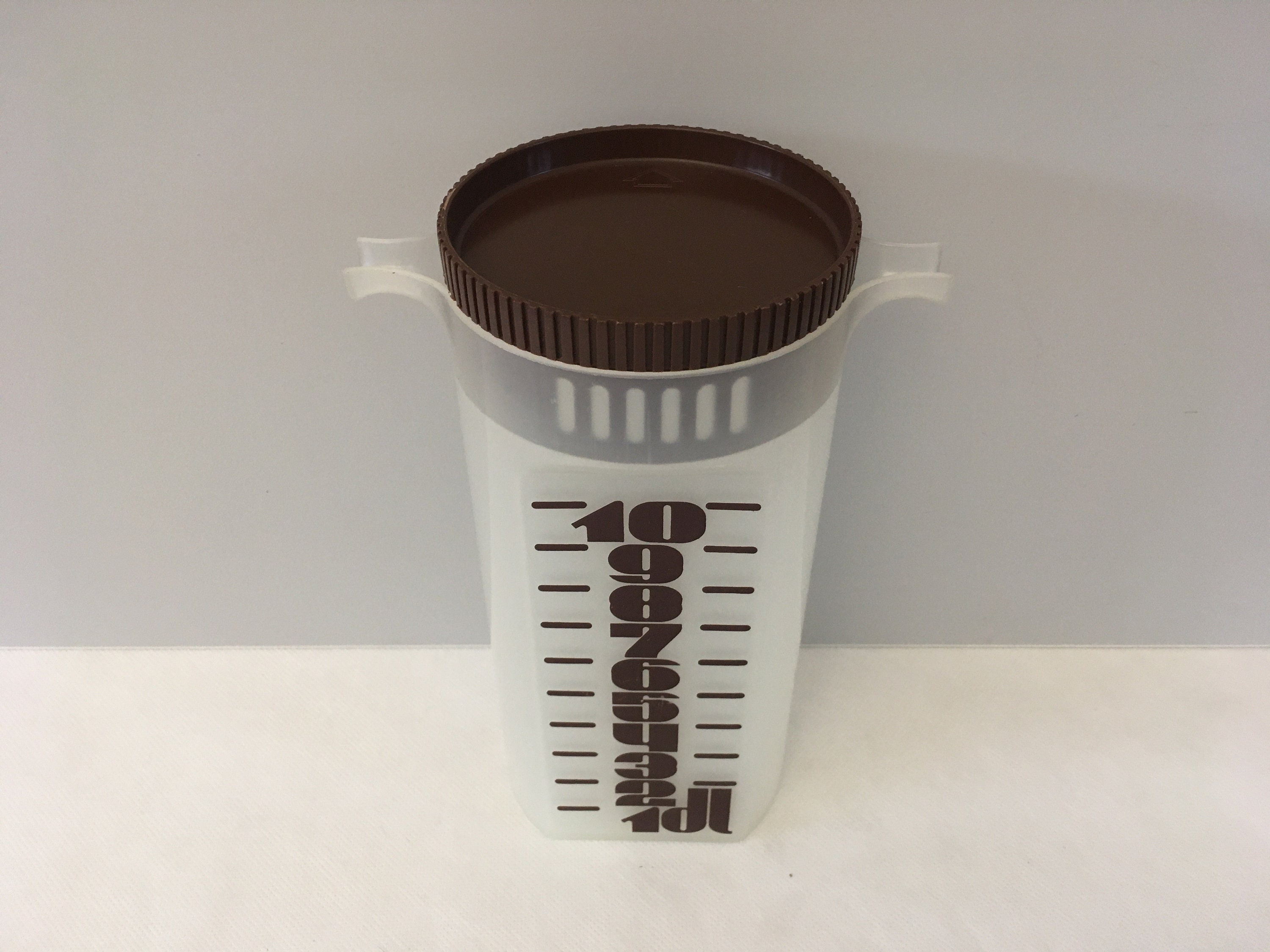 Juice or water pitcher clear plastic with brown lid, produced by Mepal in the 1970s