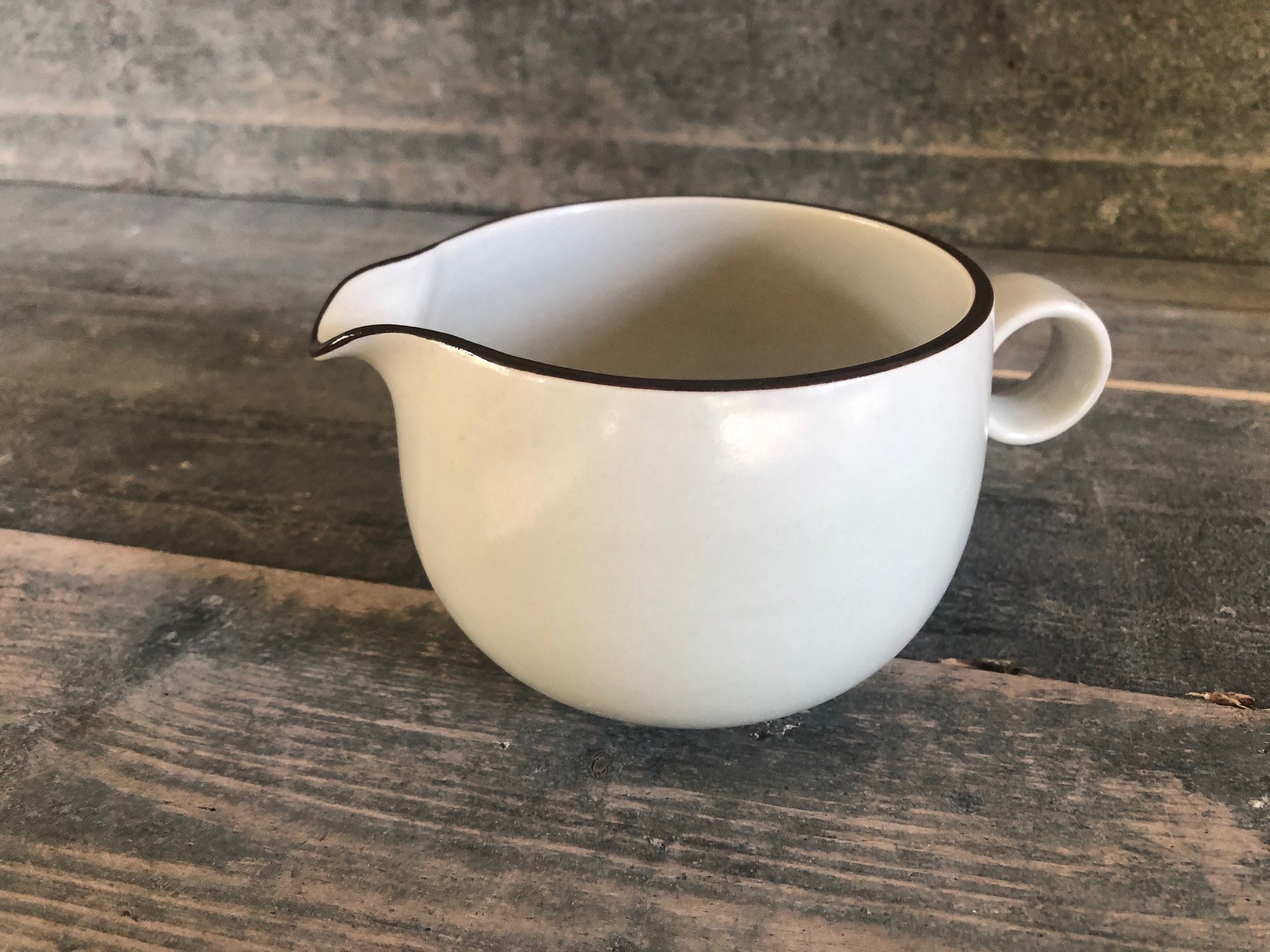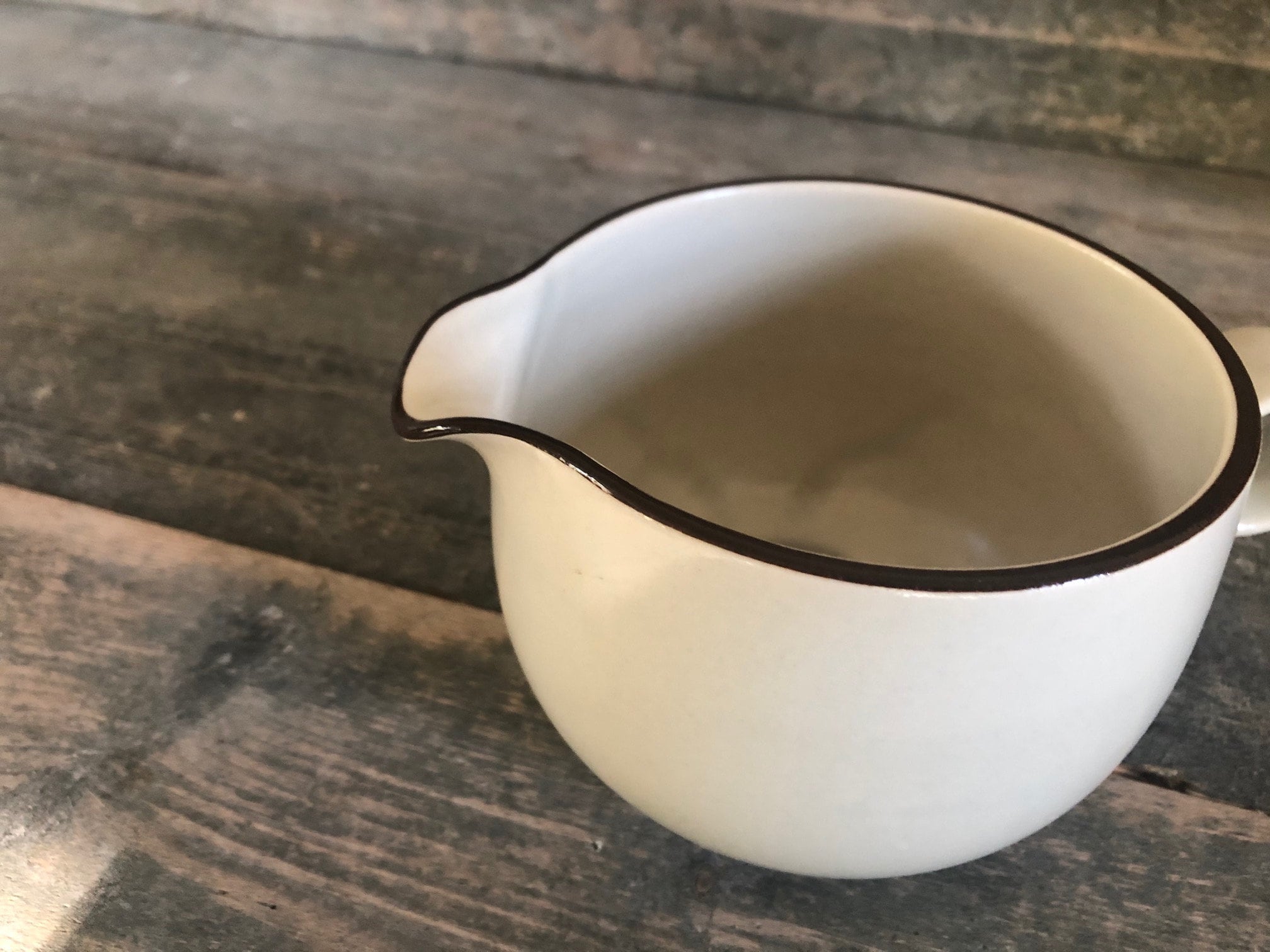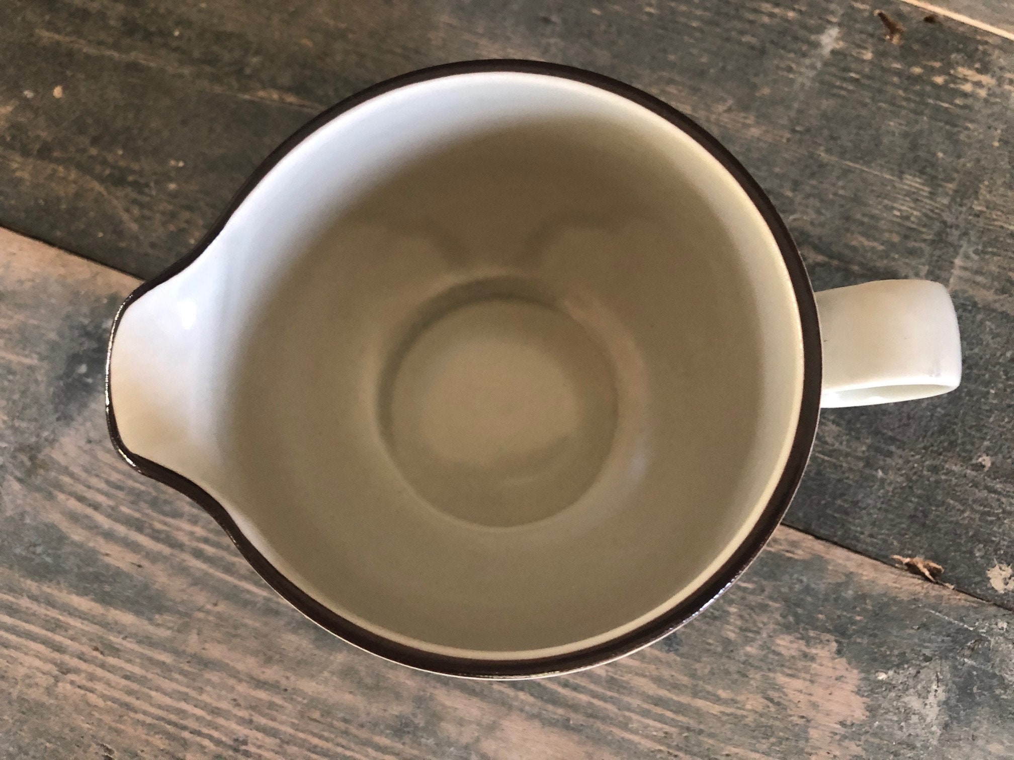 The milk jug is part of the Terra Campagna series the jug has a beige glaze with a thin dark brown band at the edge and a satin finish.