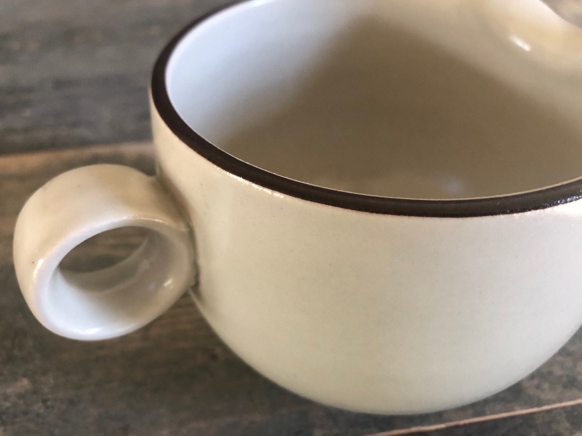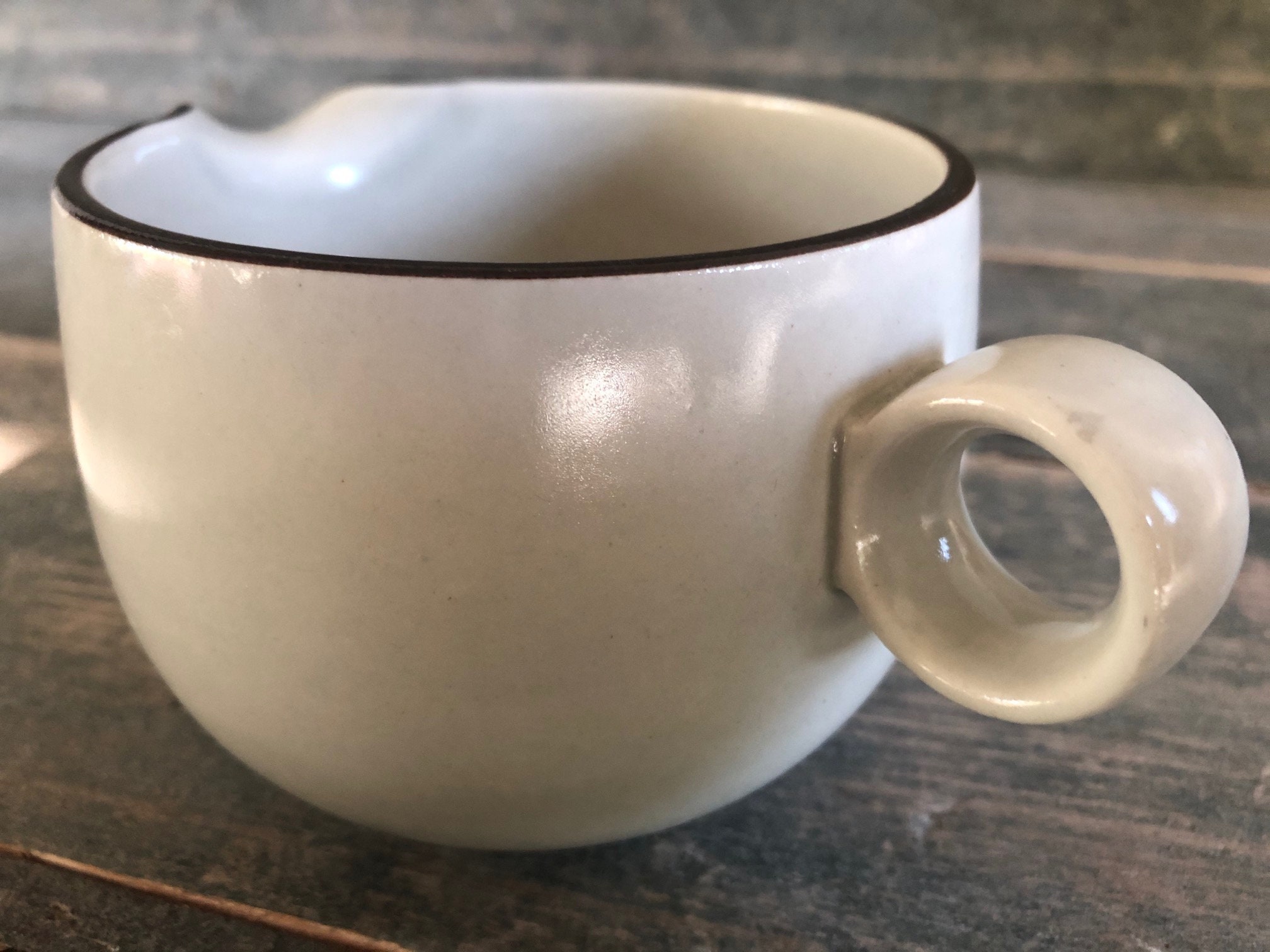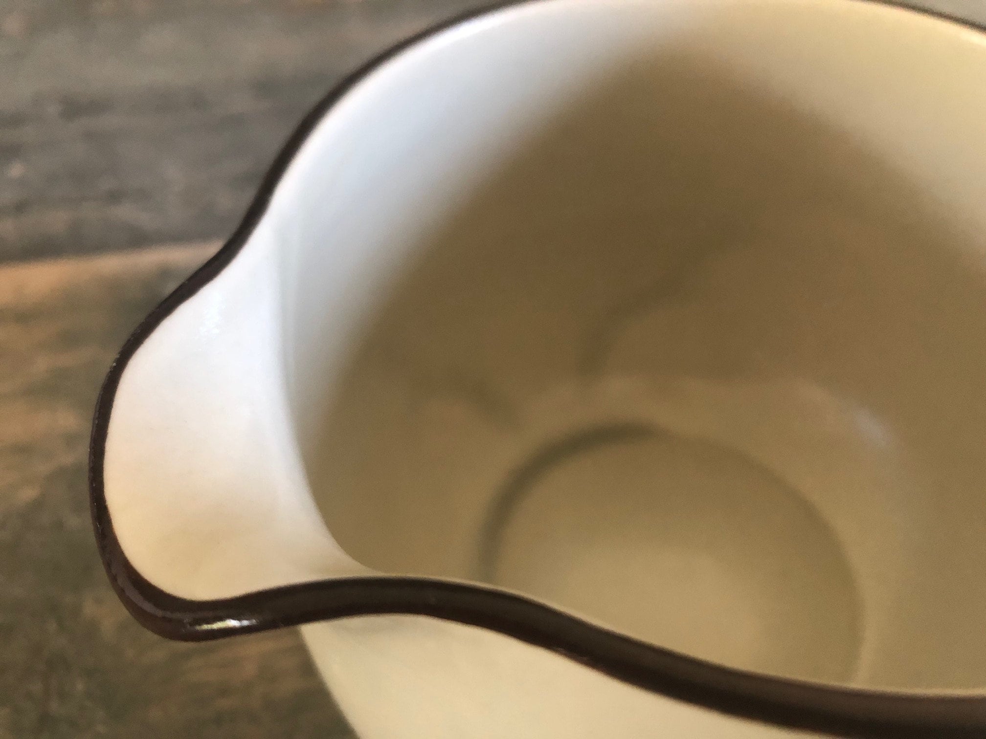 The milk jug is part of the Terra Campagna series the jug has a beige glaze with a thin dark brown band at the edge and a satin finish.