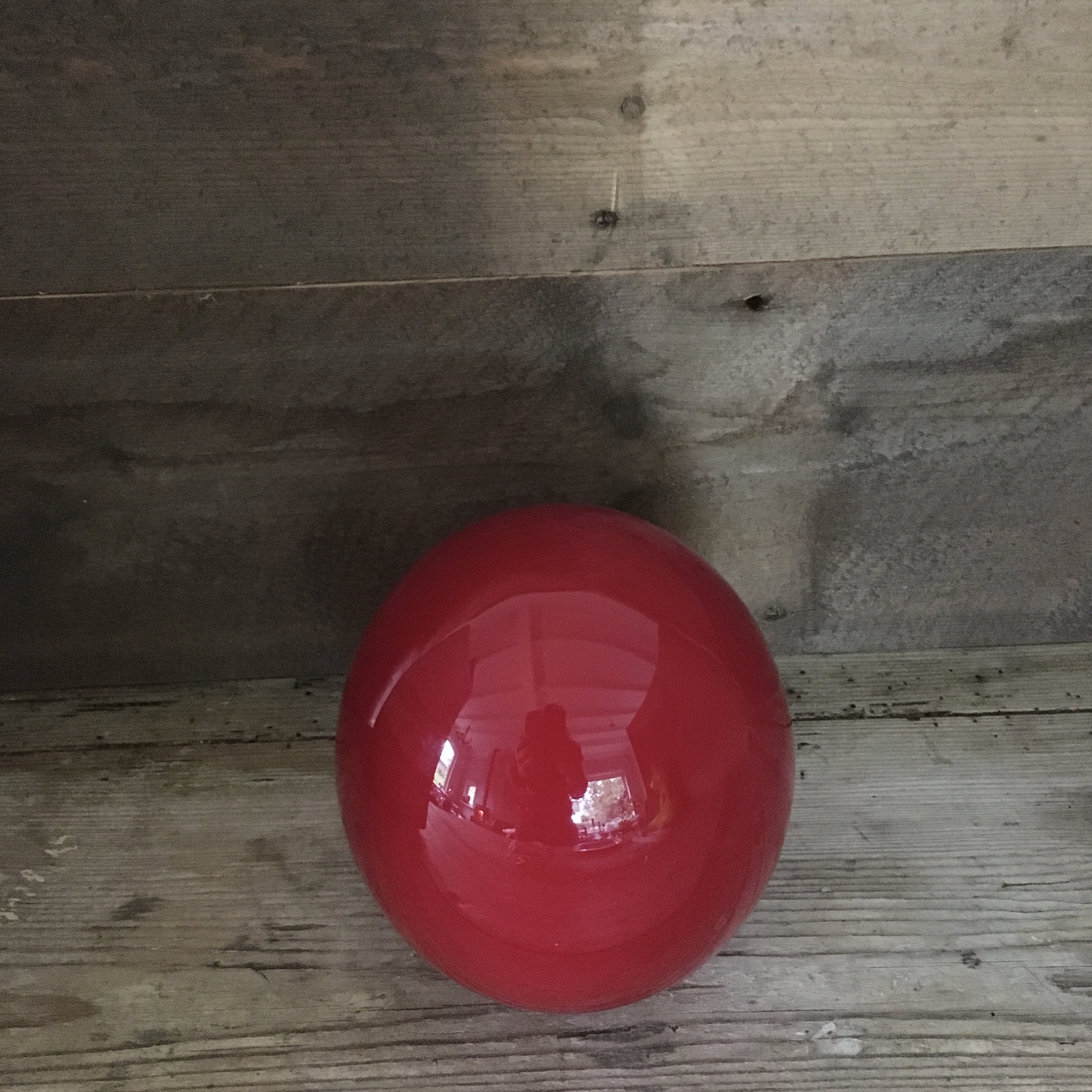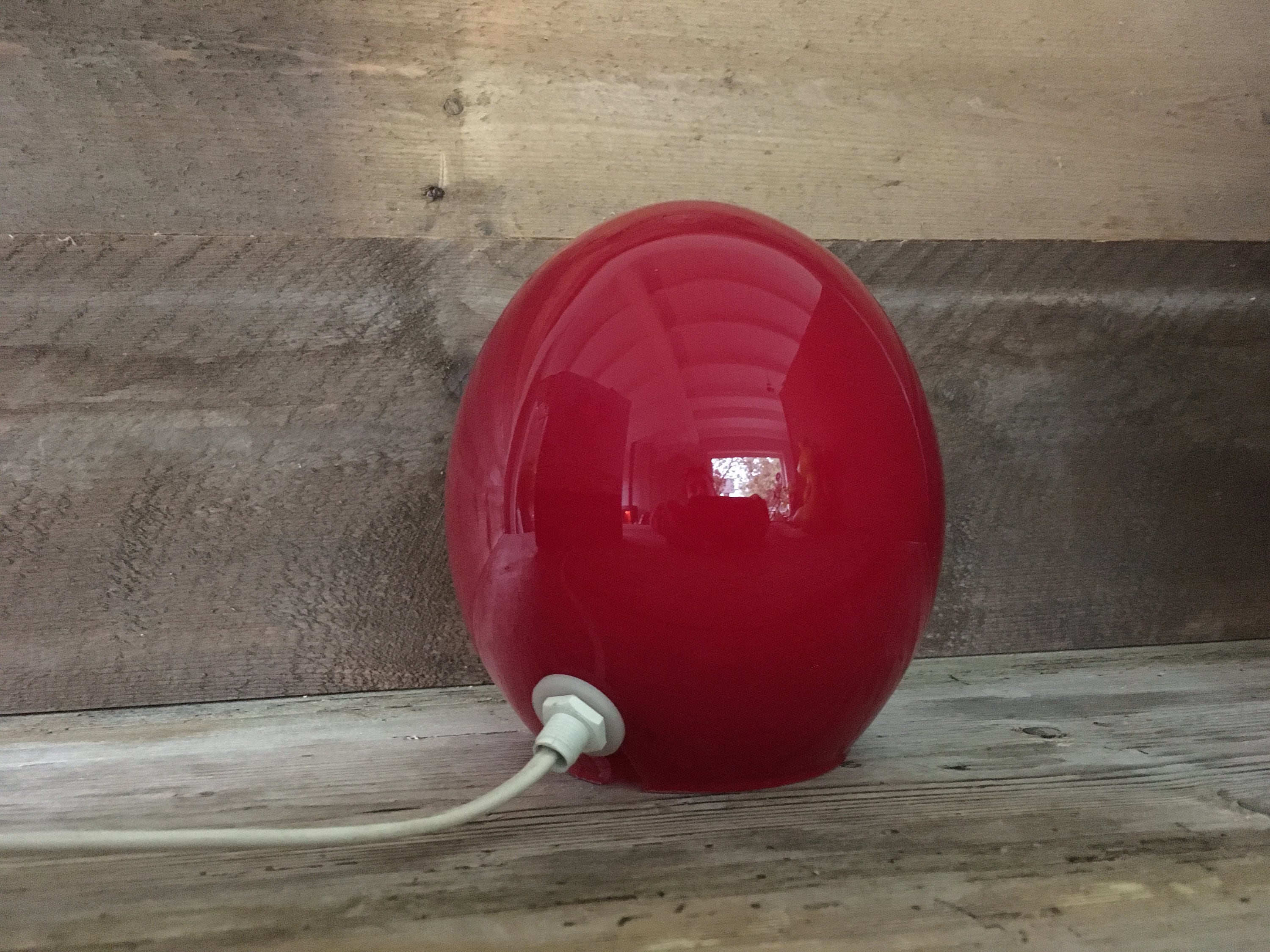 The egg shaped table lamp has become a 1980’s design icon due to its organic minimalistic shape. The egg lamps were made in various sizes and with various versions of the glass. This is the smaller shiny red glass version. It brings a wonderful source of light and therefore is perfectly fitting in any modern setting. All attention can be given to the shape that goes well in many types of interiors.