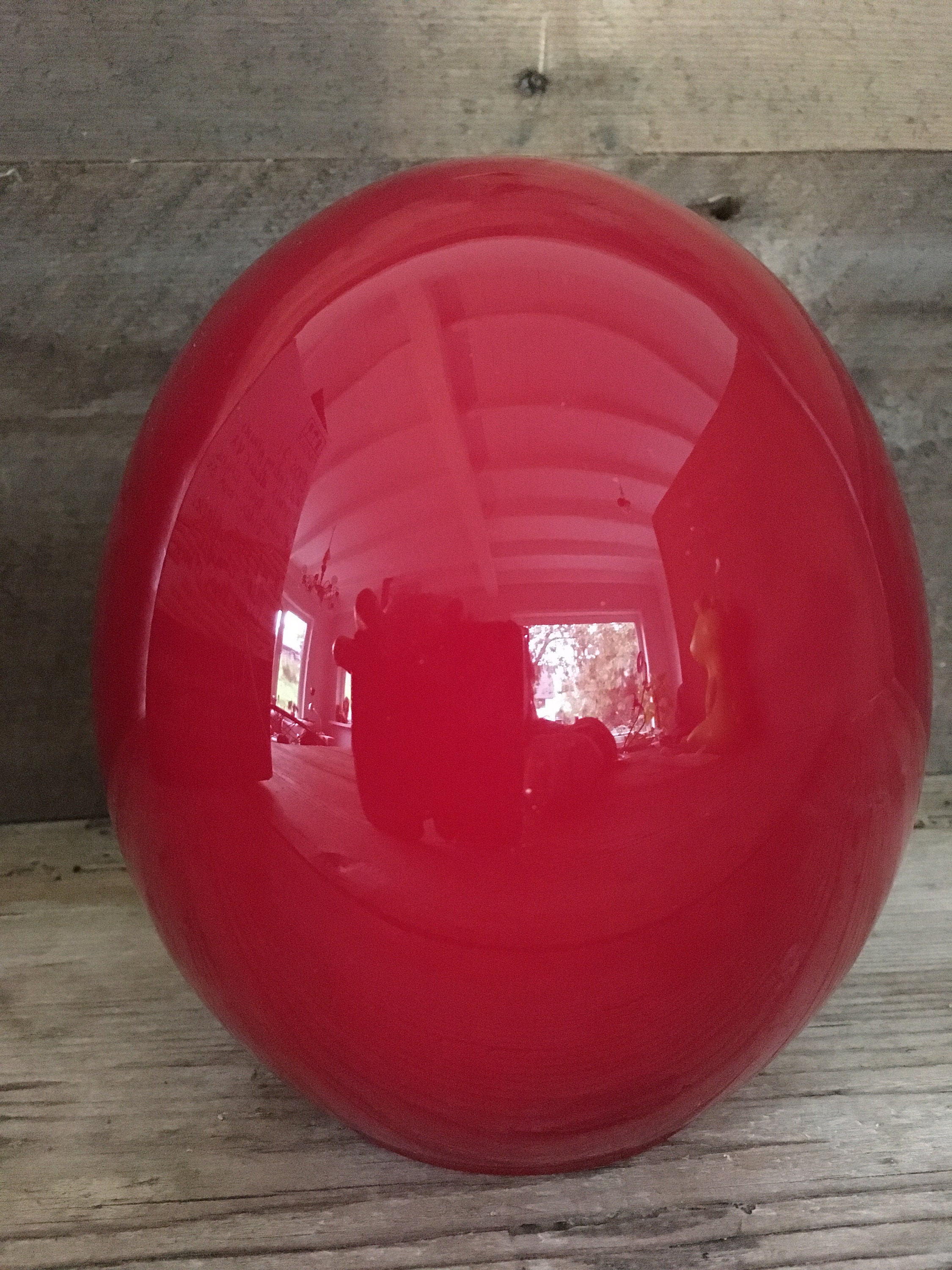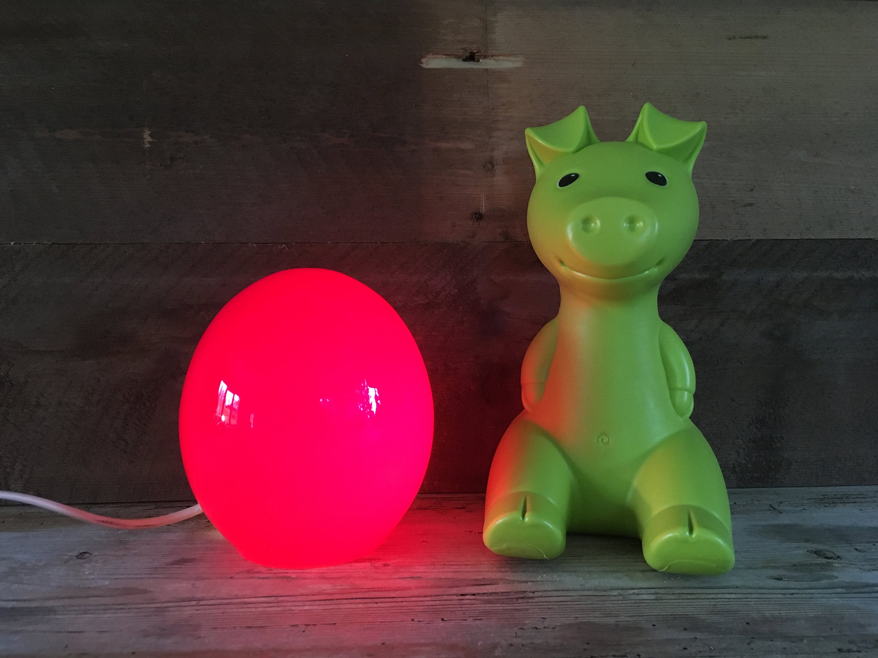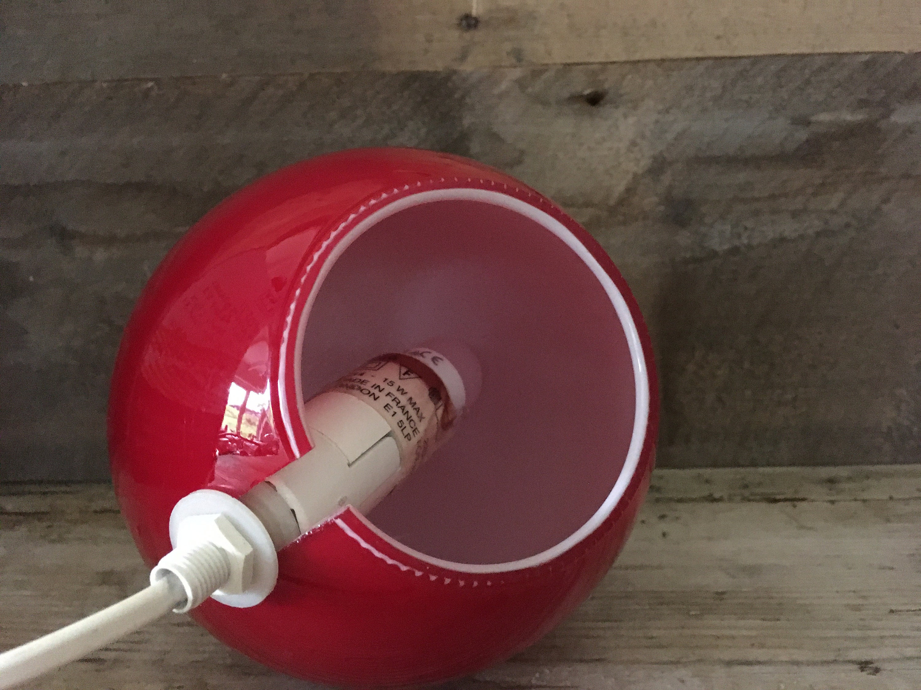 1980’s Egg shaped small table lamp, Habitat, red glass, vintage retro lamp made in France