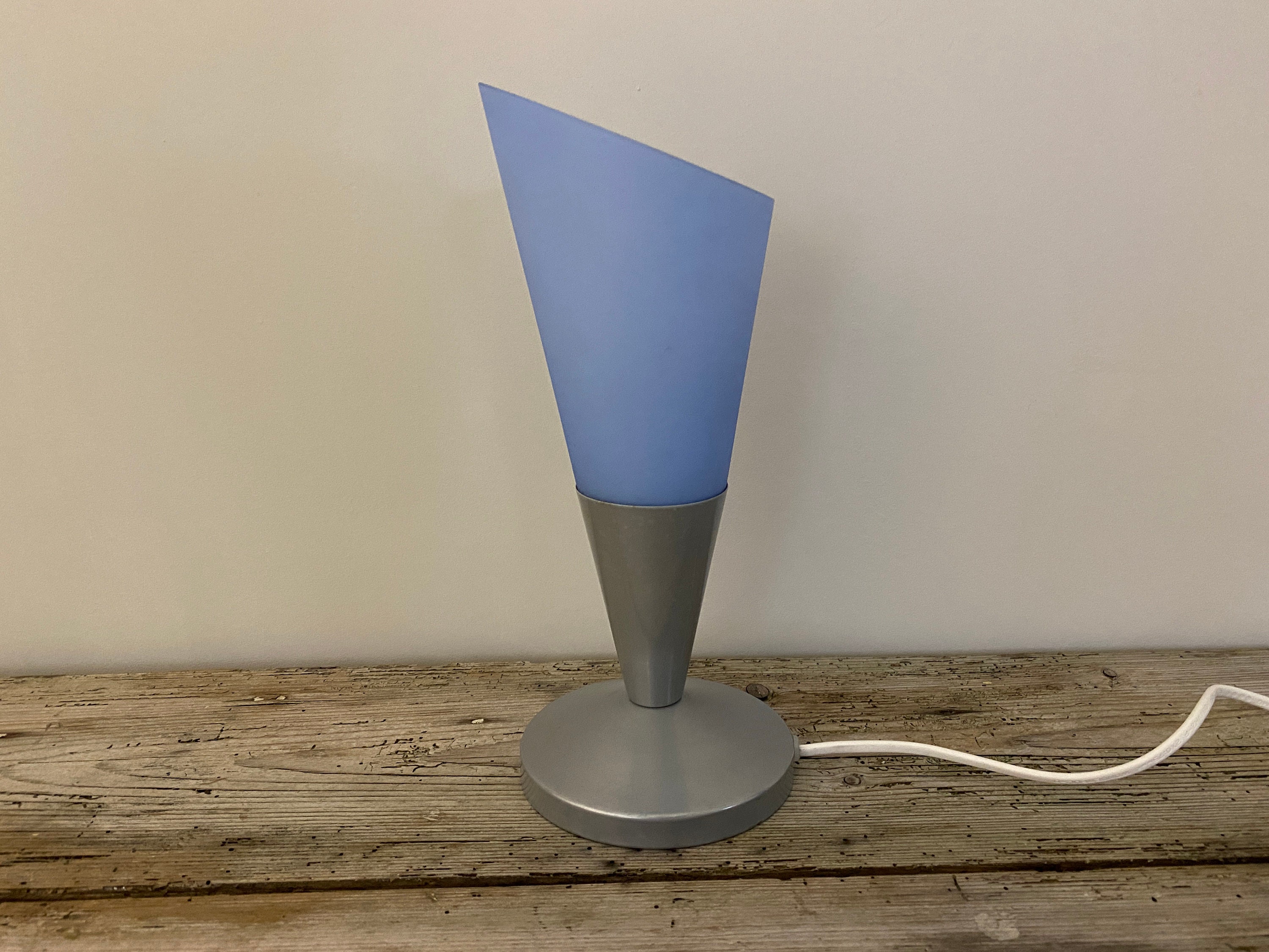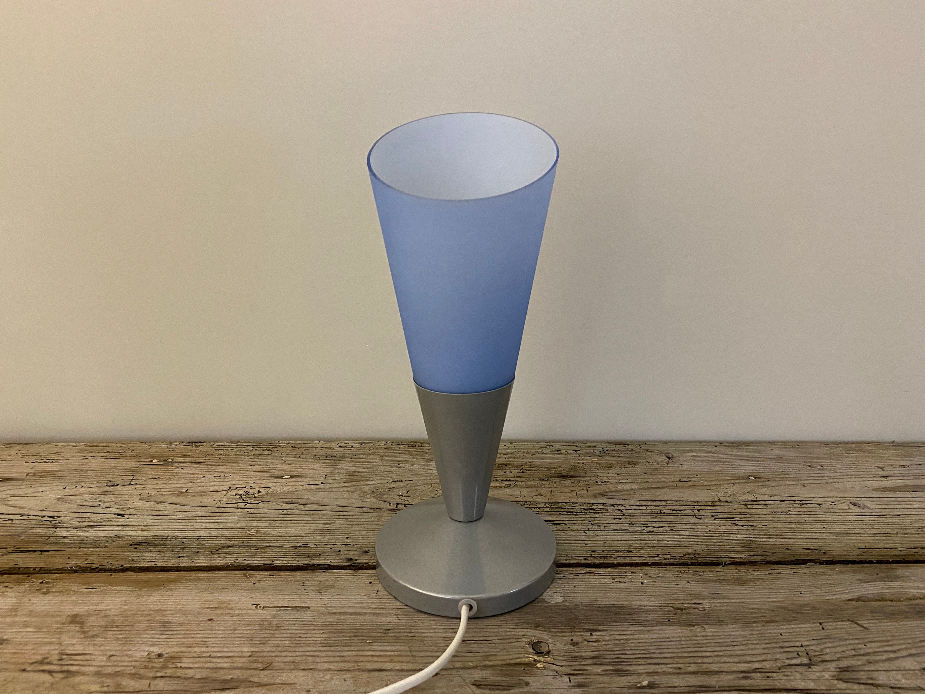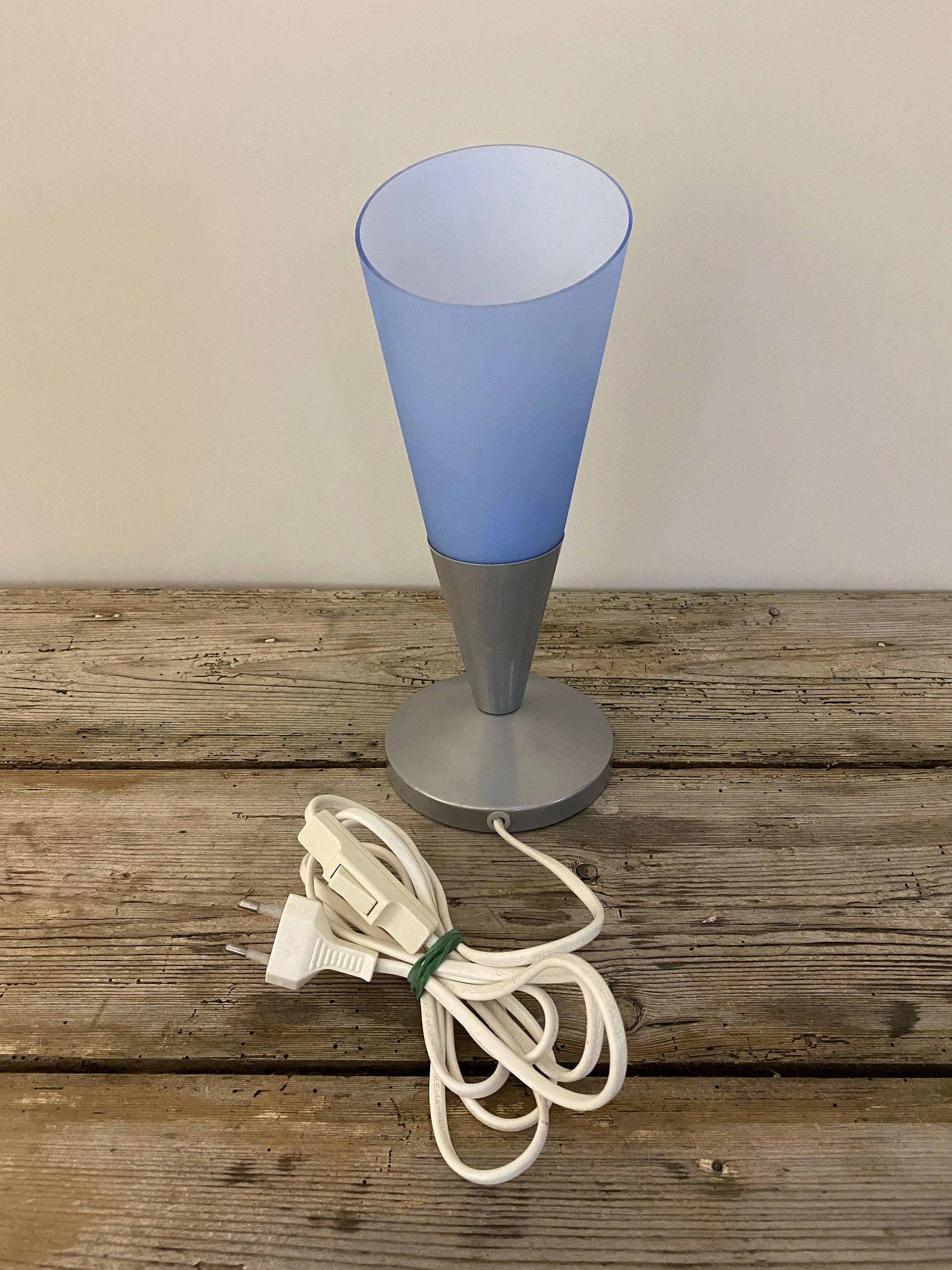 Vintage Ikea table lamp in light blue, glass table lamp, night light, retro Ikea Kryolit lamp, 1990's