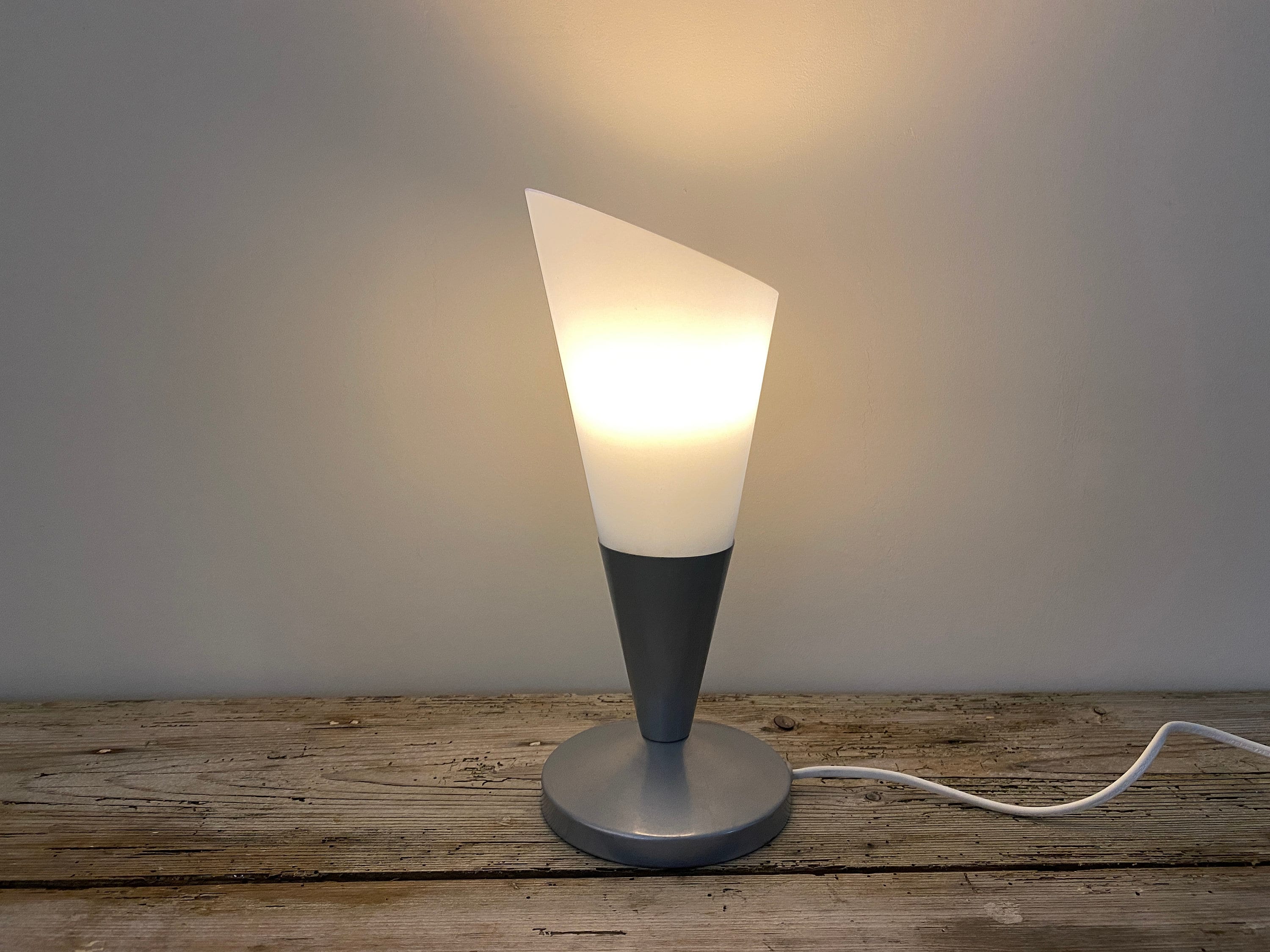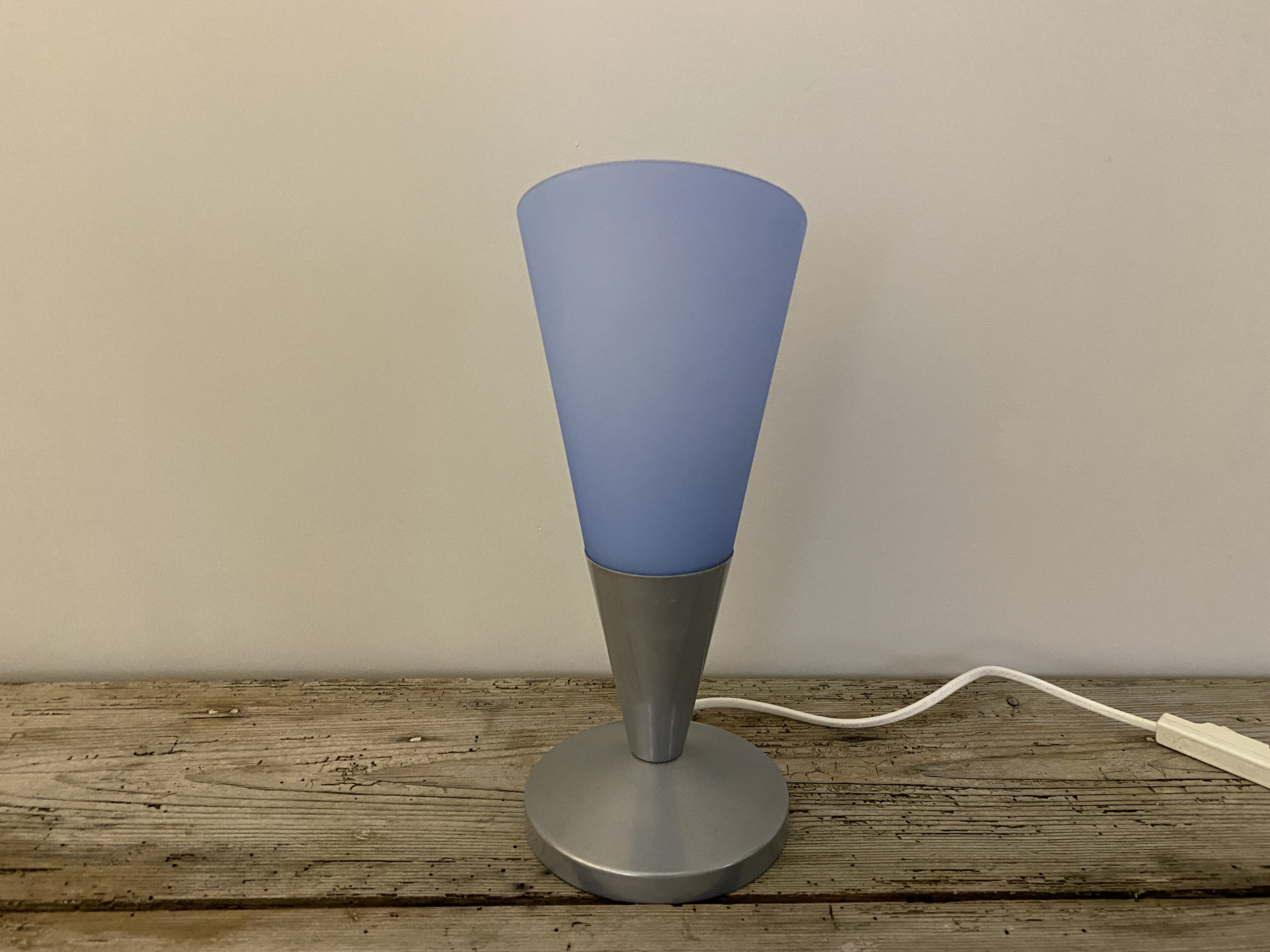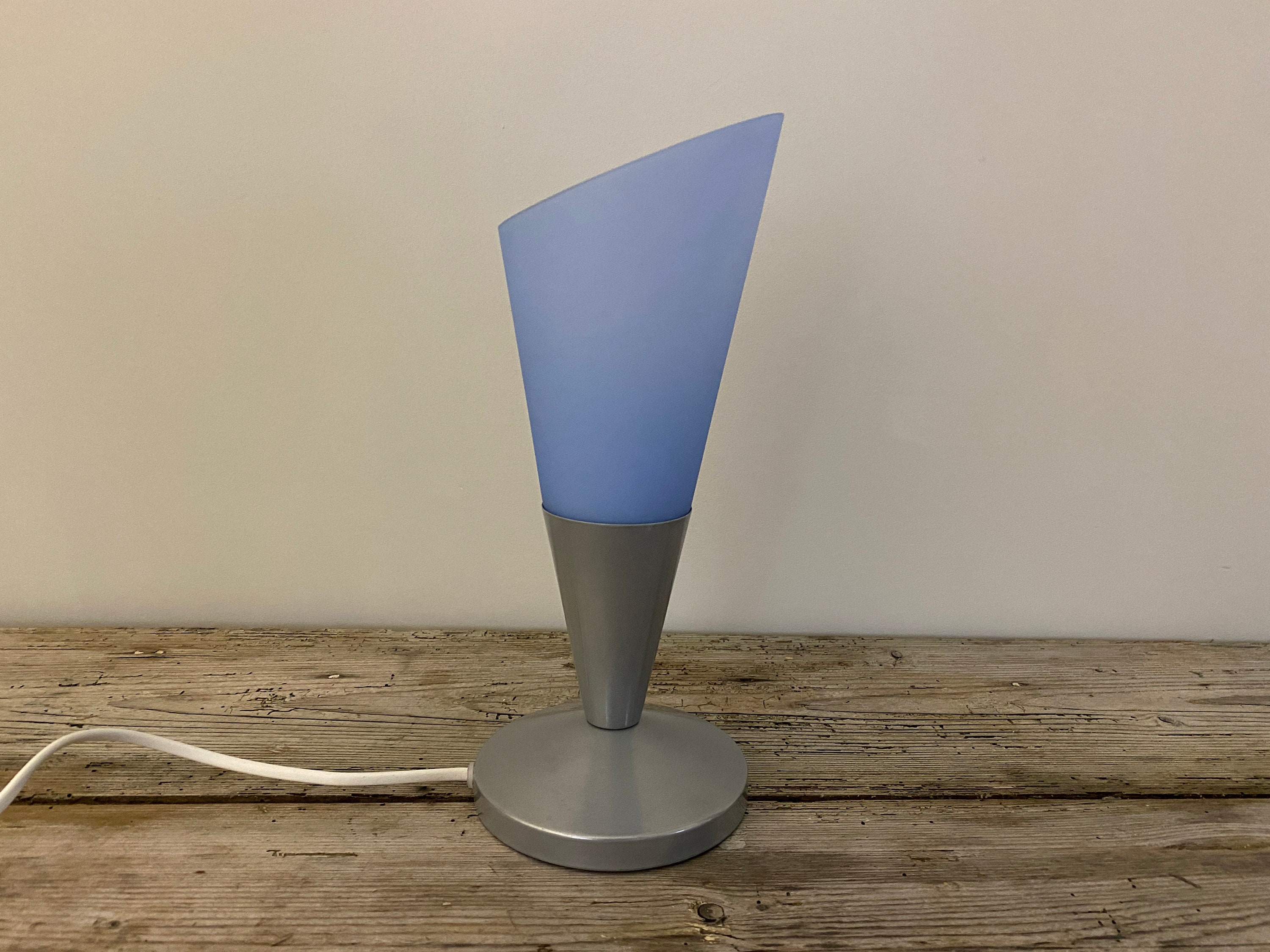 Vintage Ikea table lamp in light blue, glass table lamp, night light, retro Ikea Kryolit lamp, 1990's