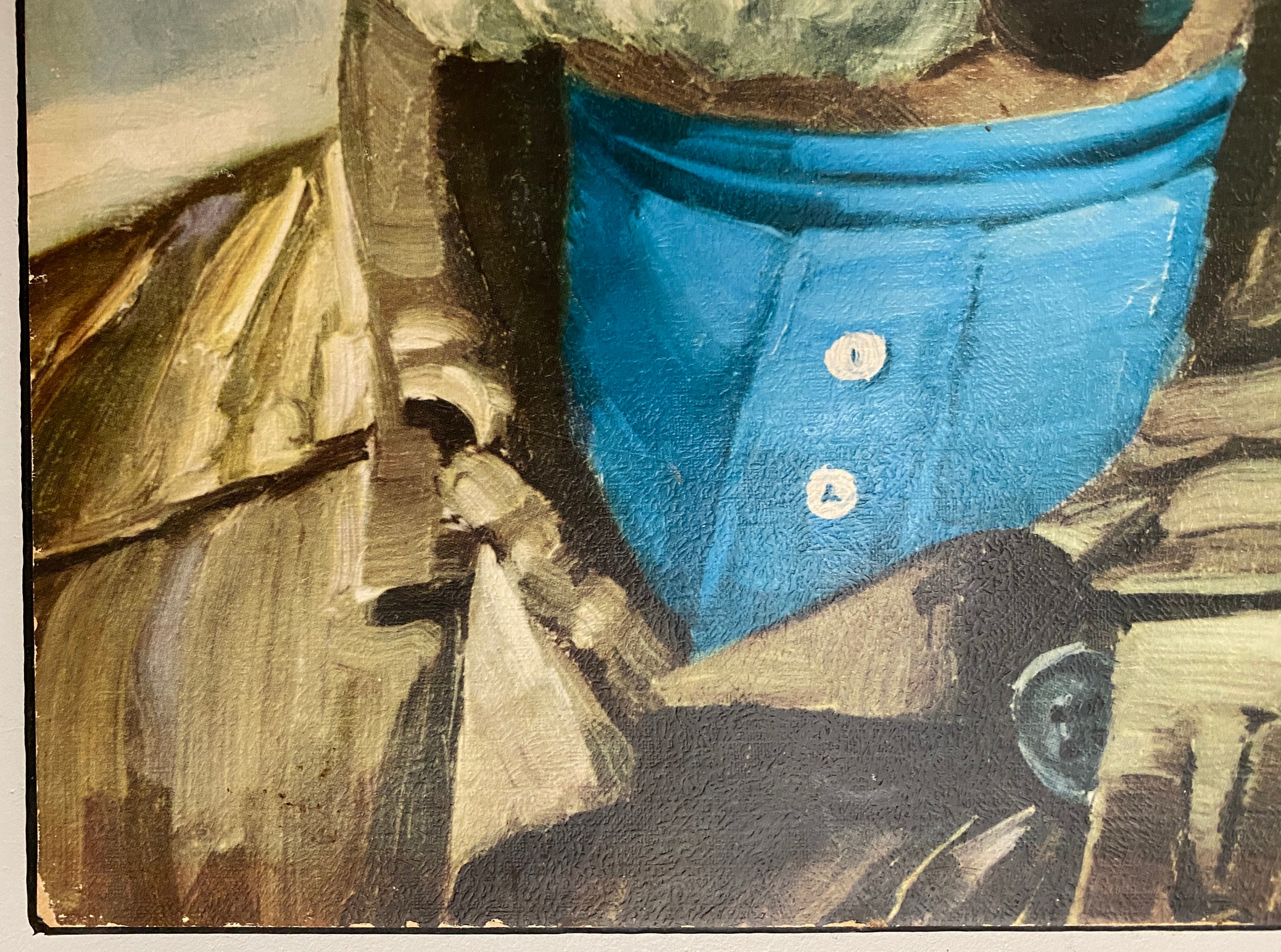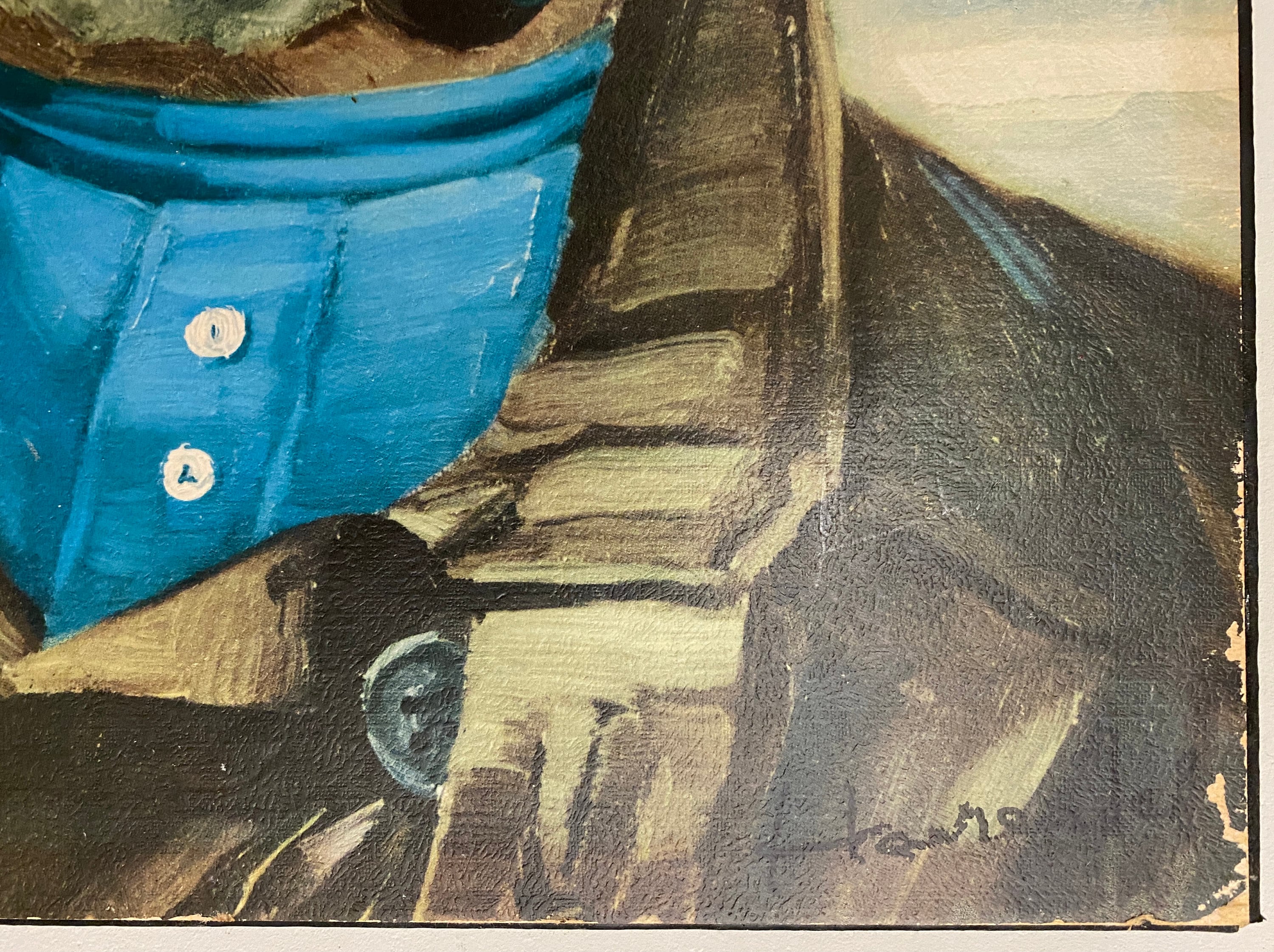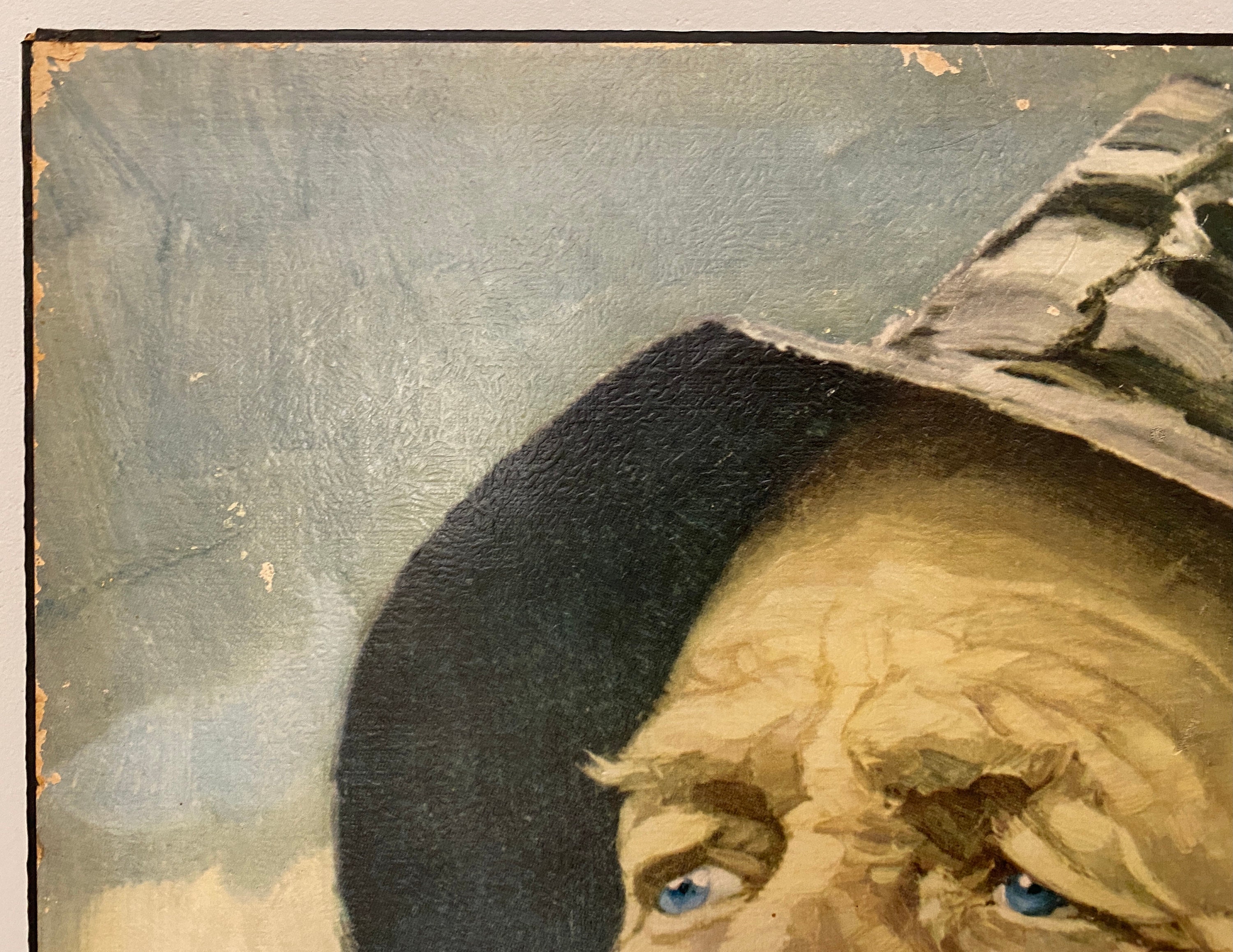 Very nice vintage portrait, art print glued on chipboard of a pipe-smoking fisherman, an old sailor, mid century wall art 1970’s. Original by Harry Haerendel.