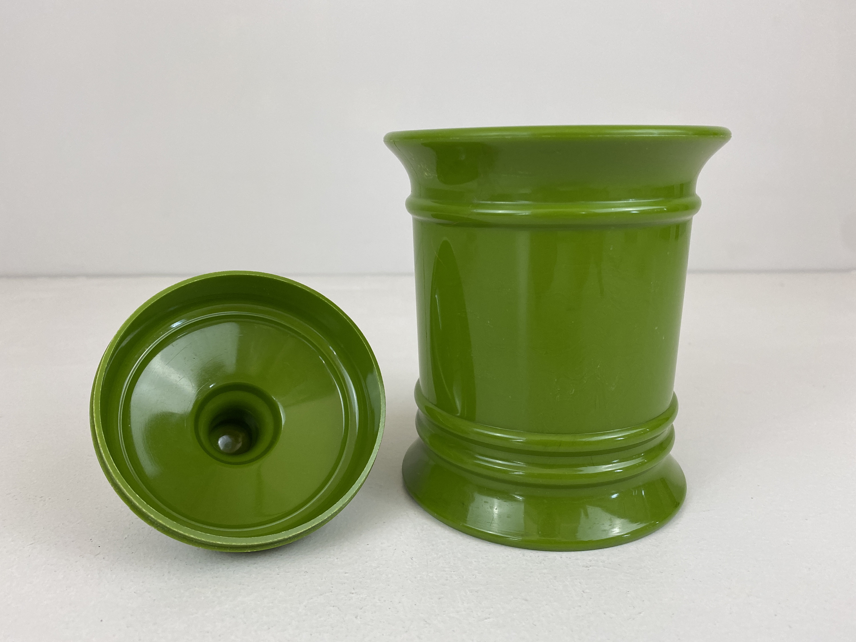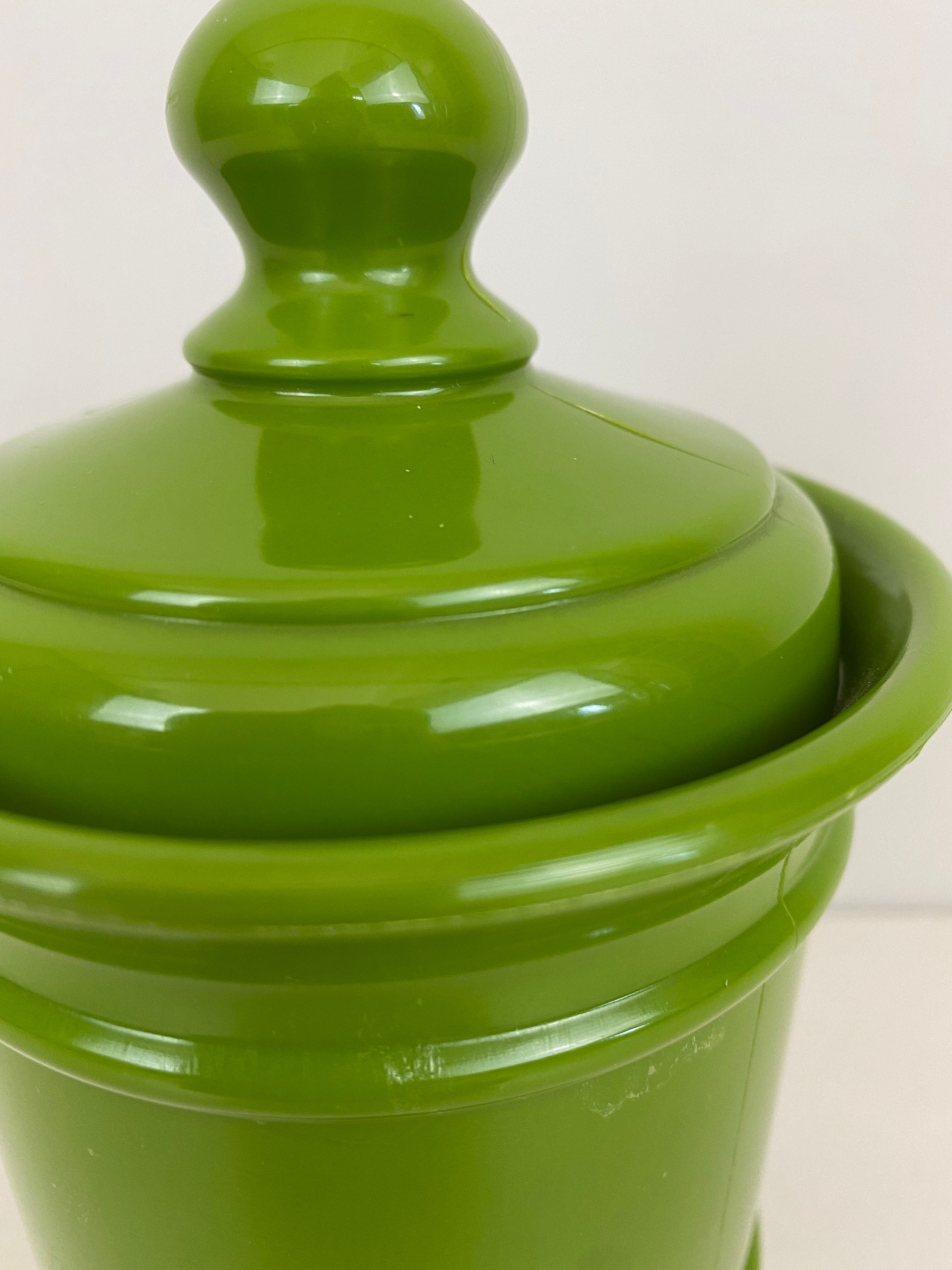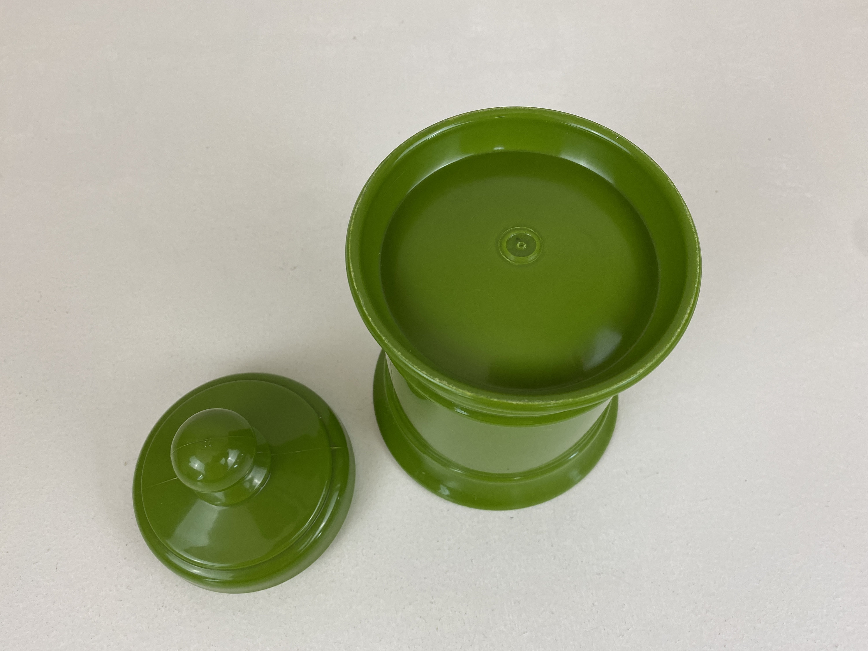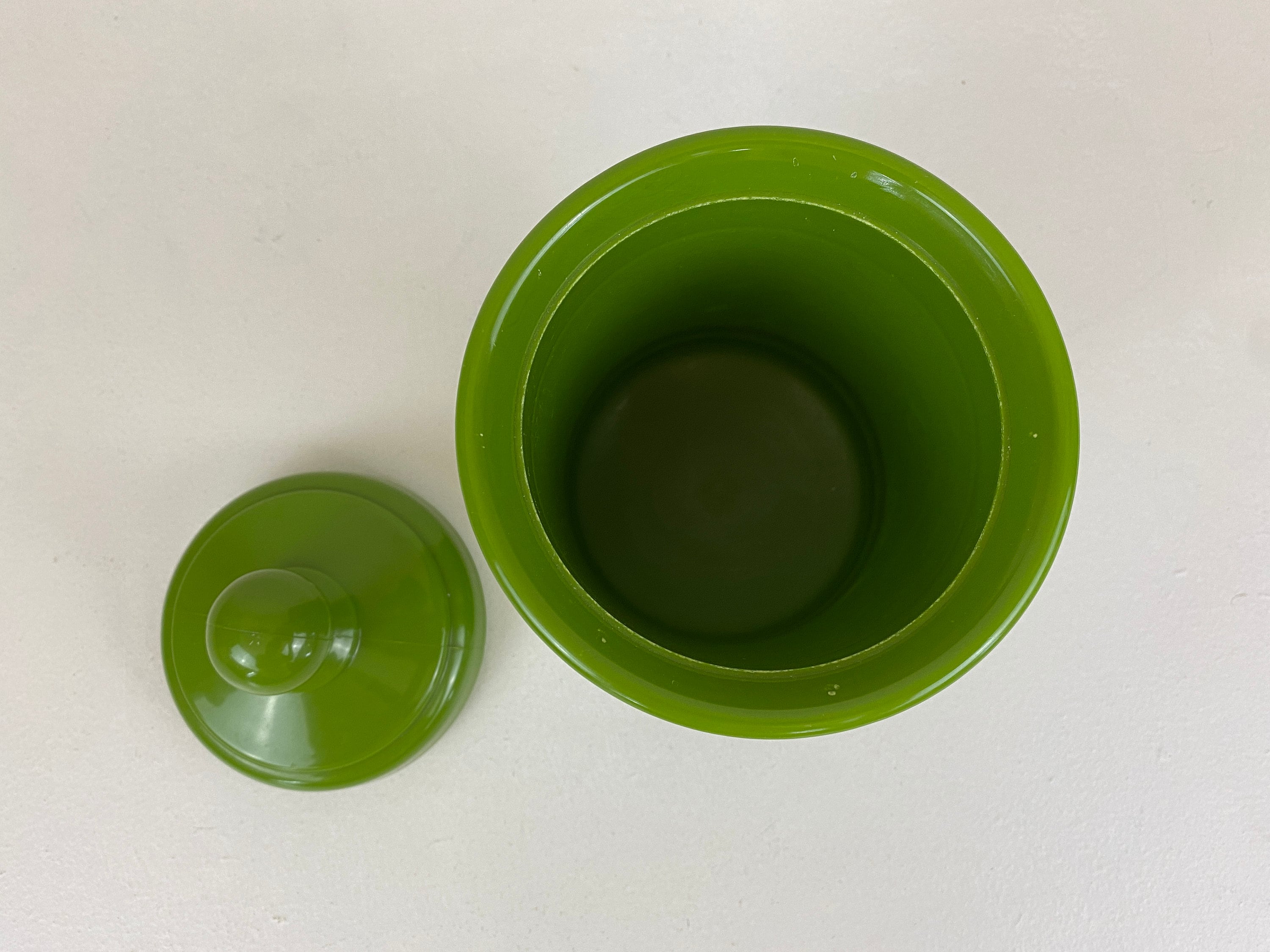 Vintage green plastic storage jar with lid, storage canister with lid 1970s / 1980s.