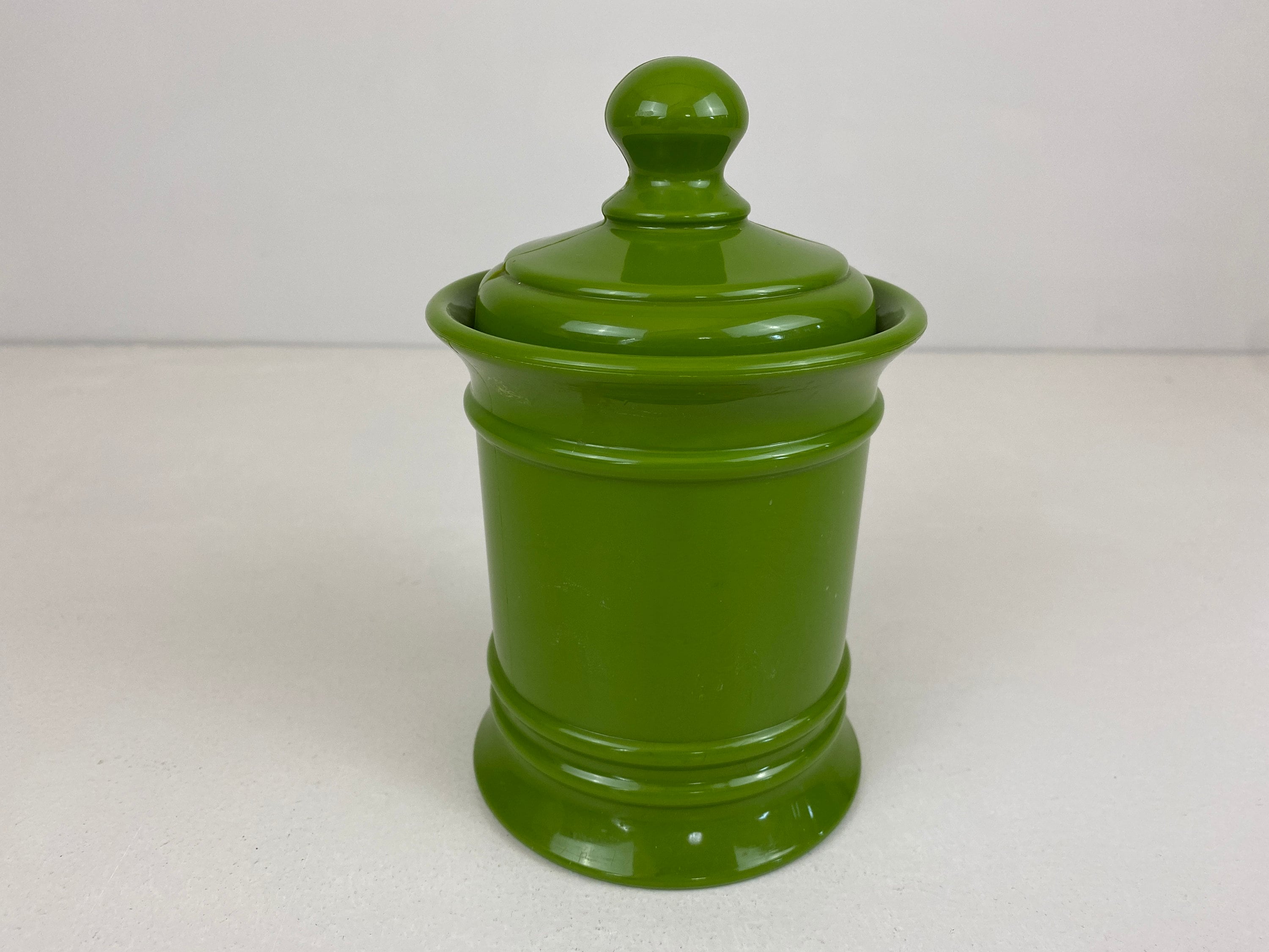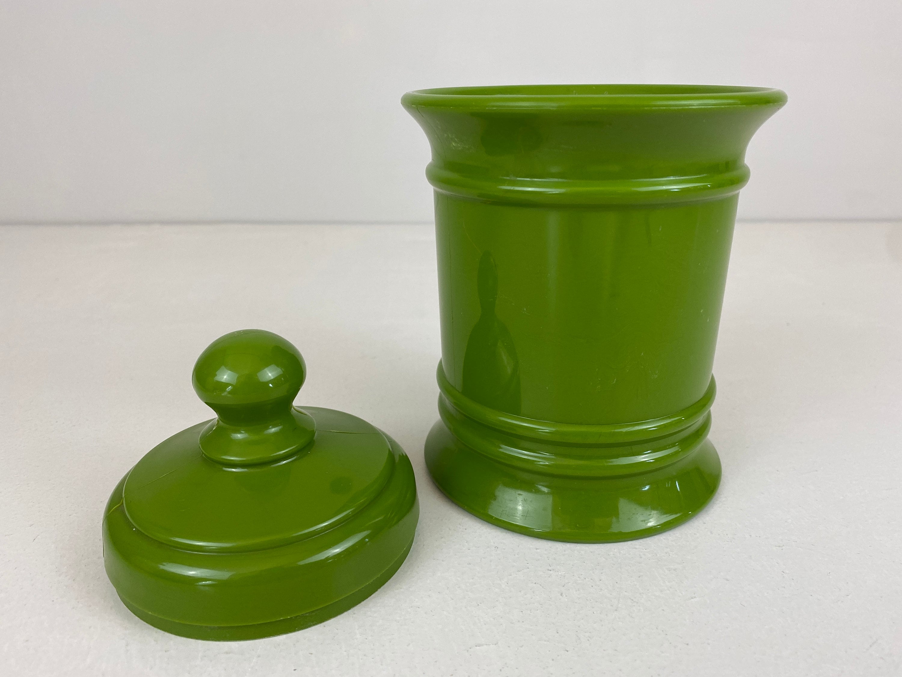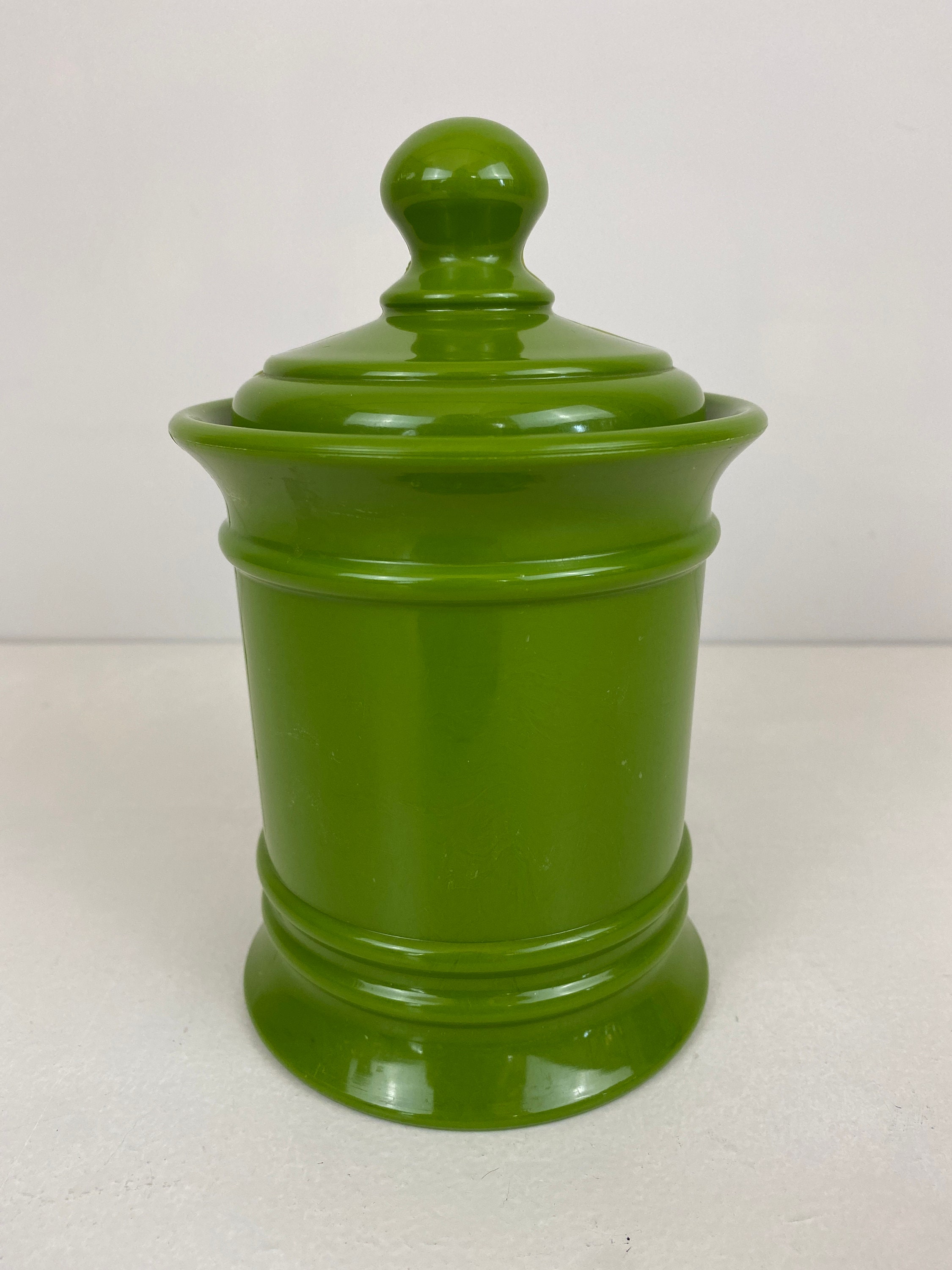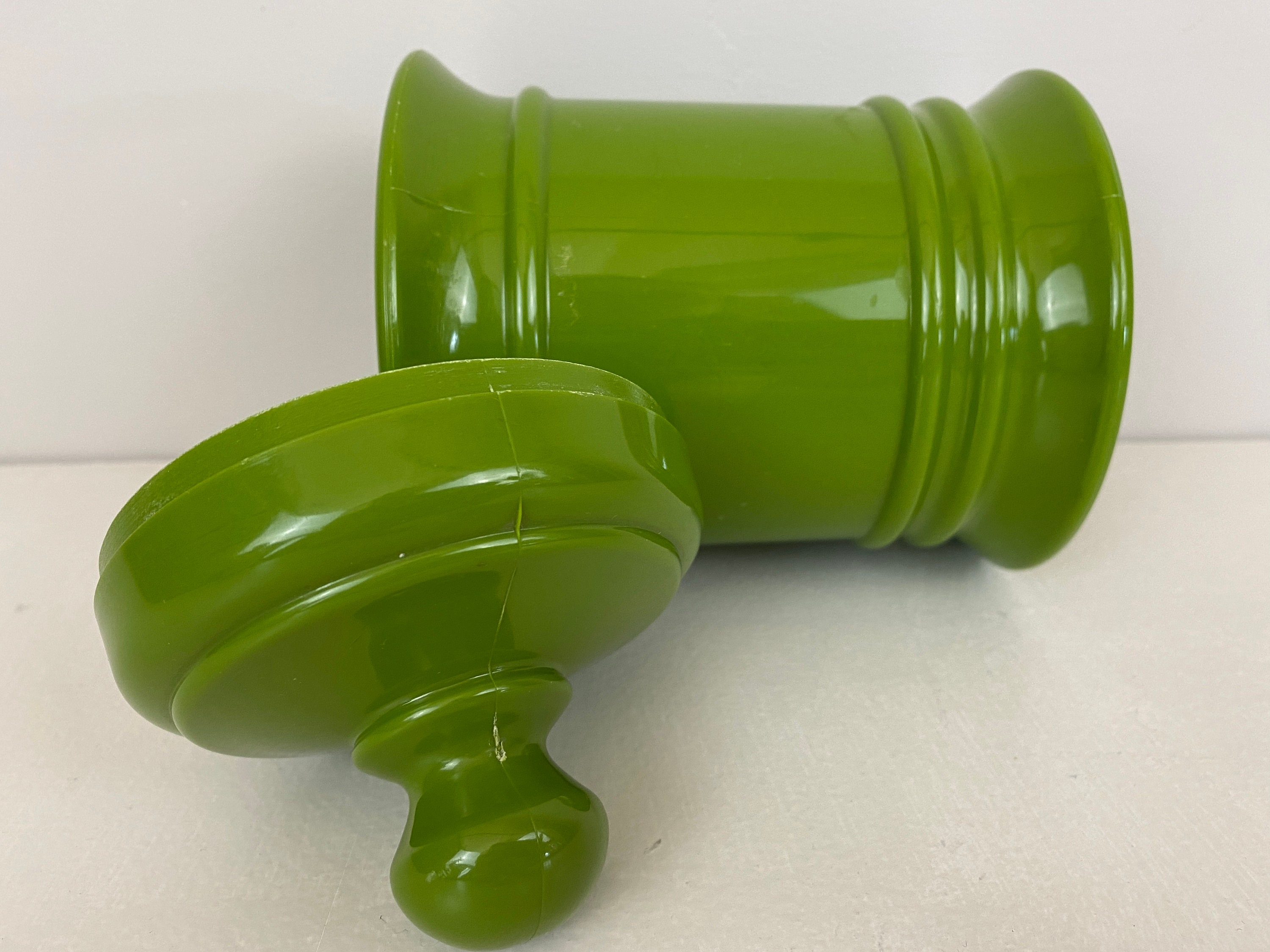 Vintage green plastic storage jar with lid, storage canister with lid 1970s / 1980s.