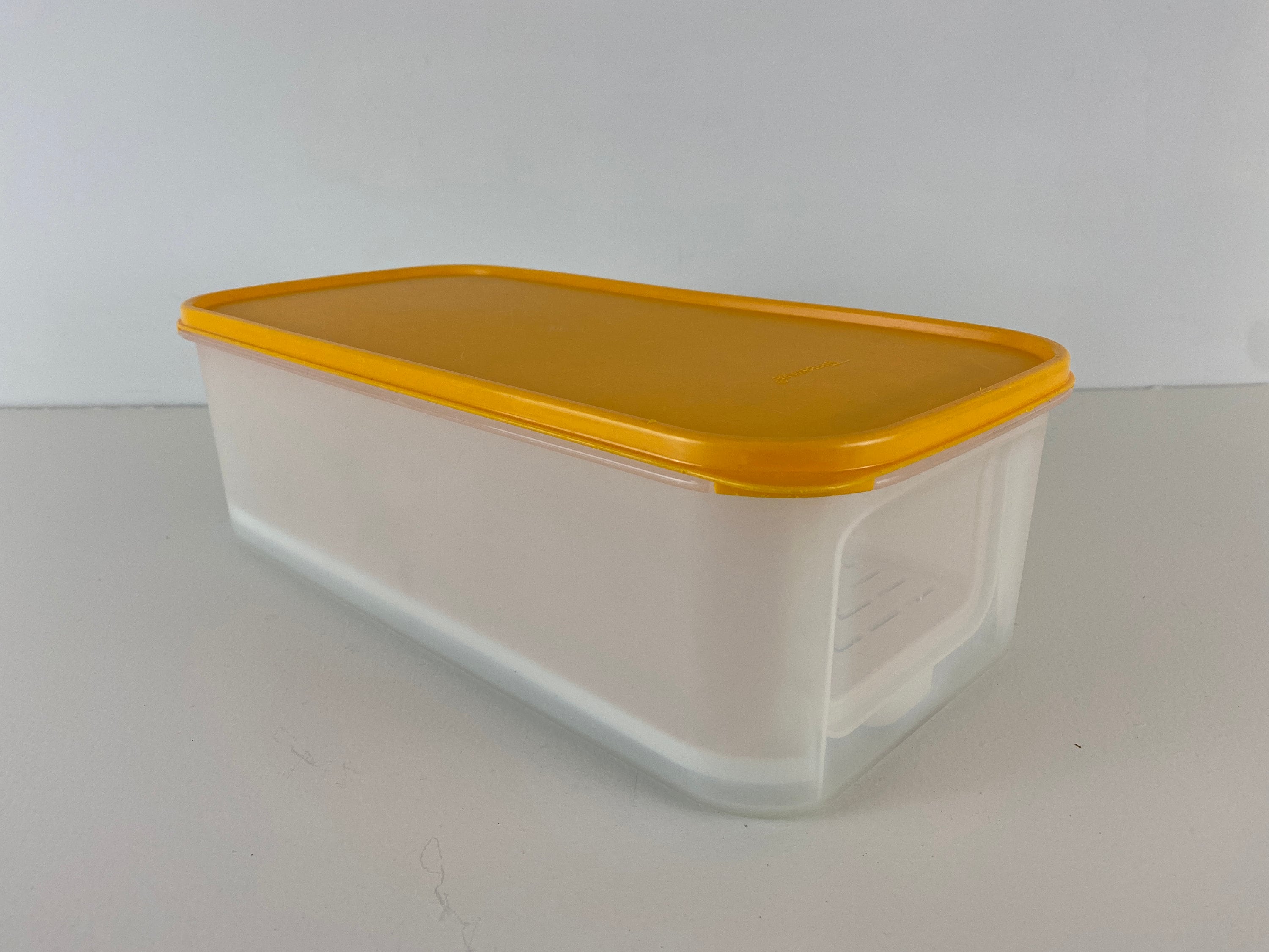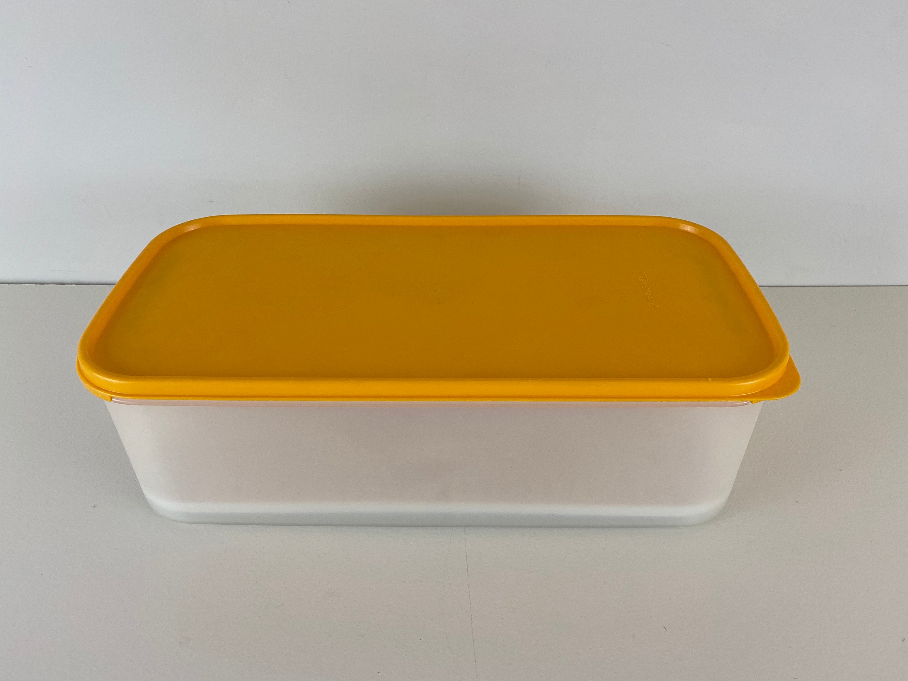 Vintage Tupperware bread box, Tupperware storage container, yellow bread container 1980s design.