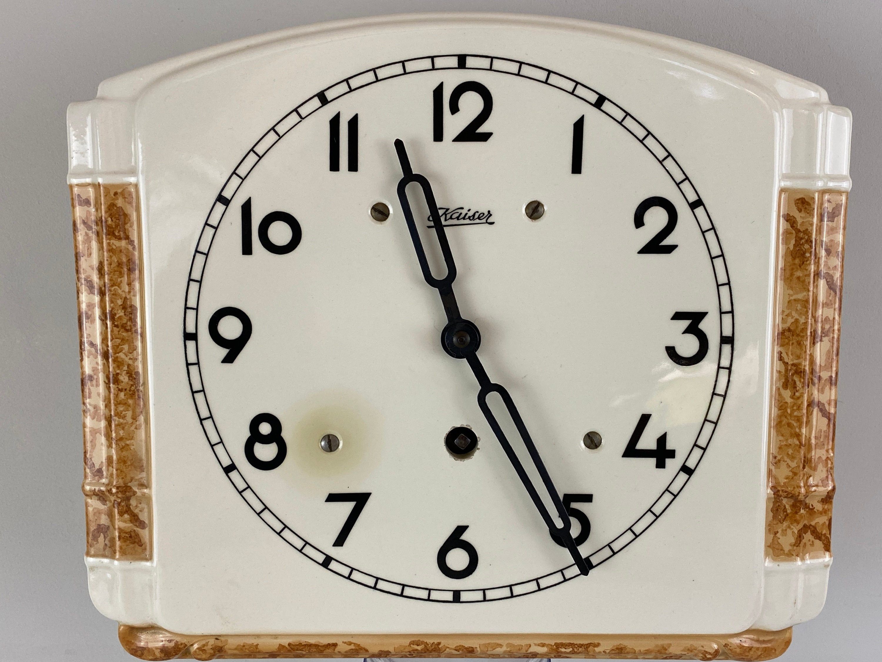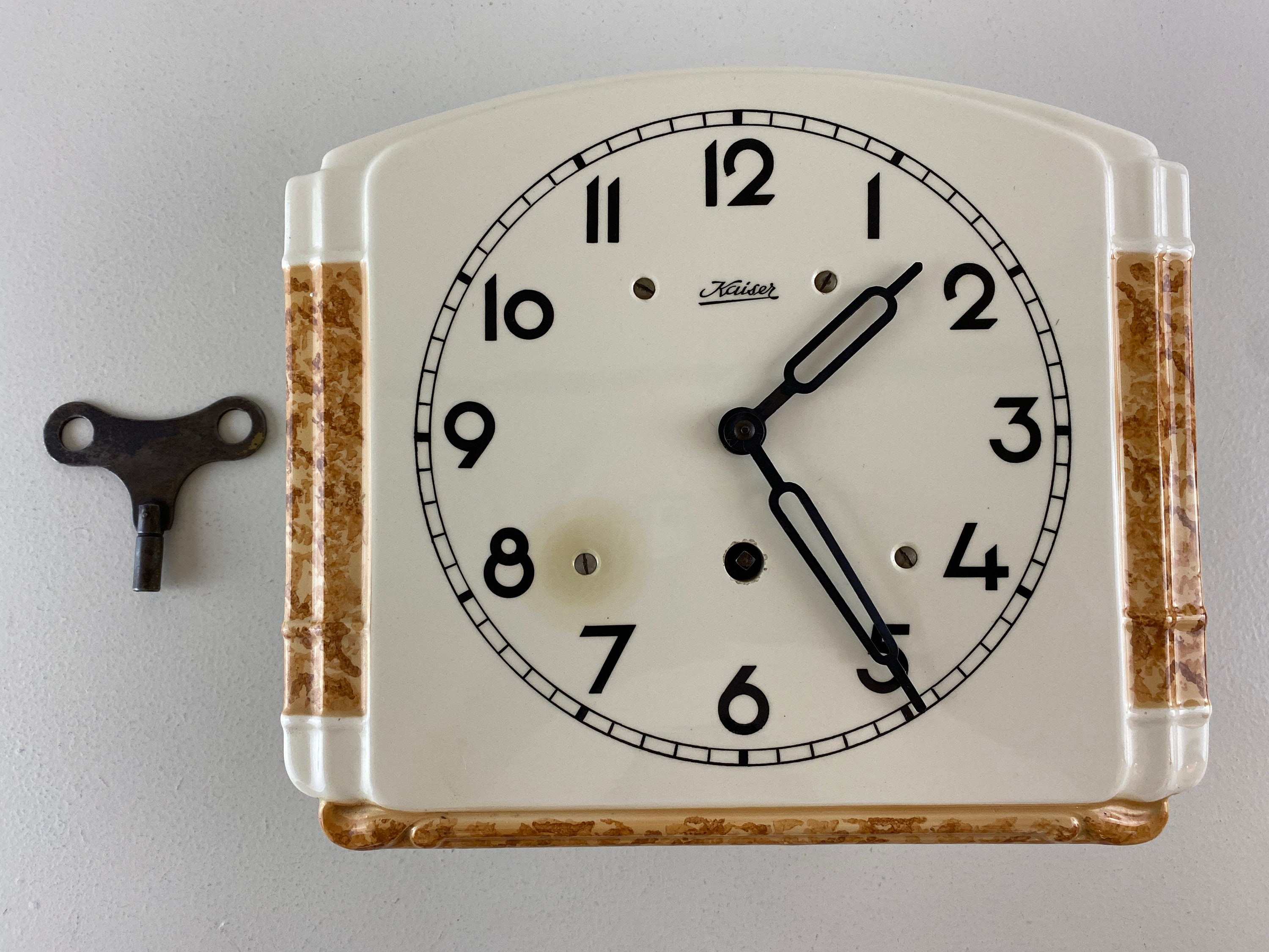 Kaiser wall clock, kitchen clock, Art Deco clock by Kaiser & Co Germany, Porcelain clock from the 1950's