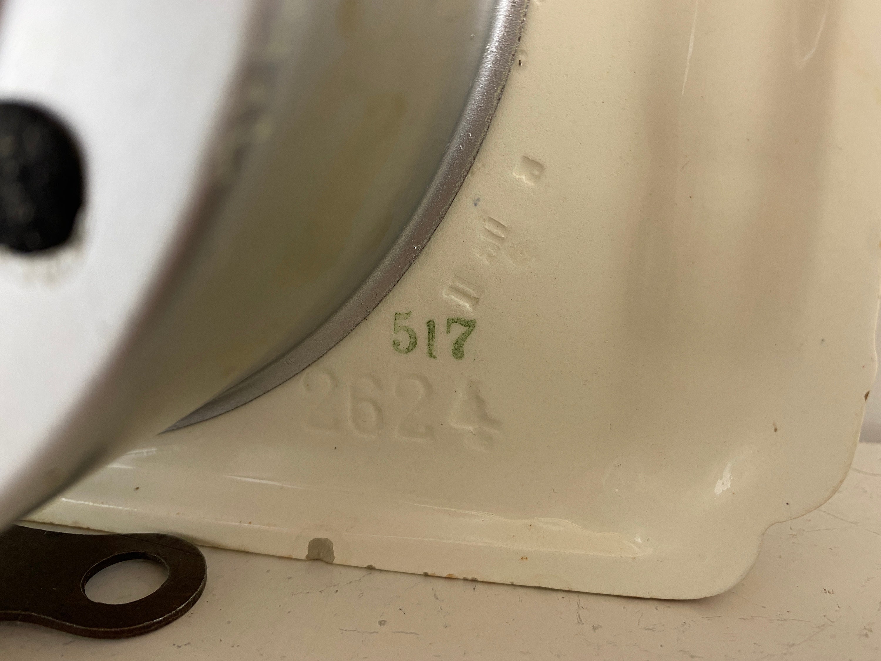 This is a gorgeous porcelain wall clock, kitchen clock from the 1950’s. It’s Art Deco style made by Kaiser & Co Germany. It’s made of white and brown marbled porcelain.