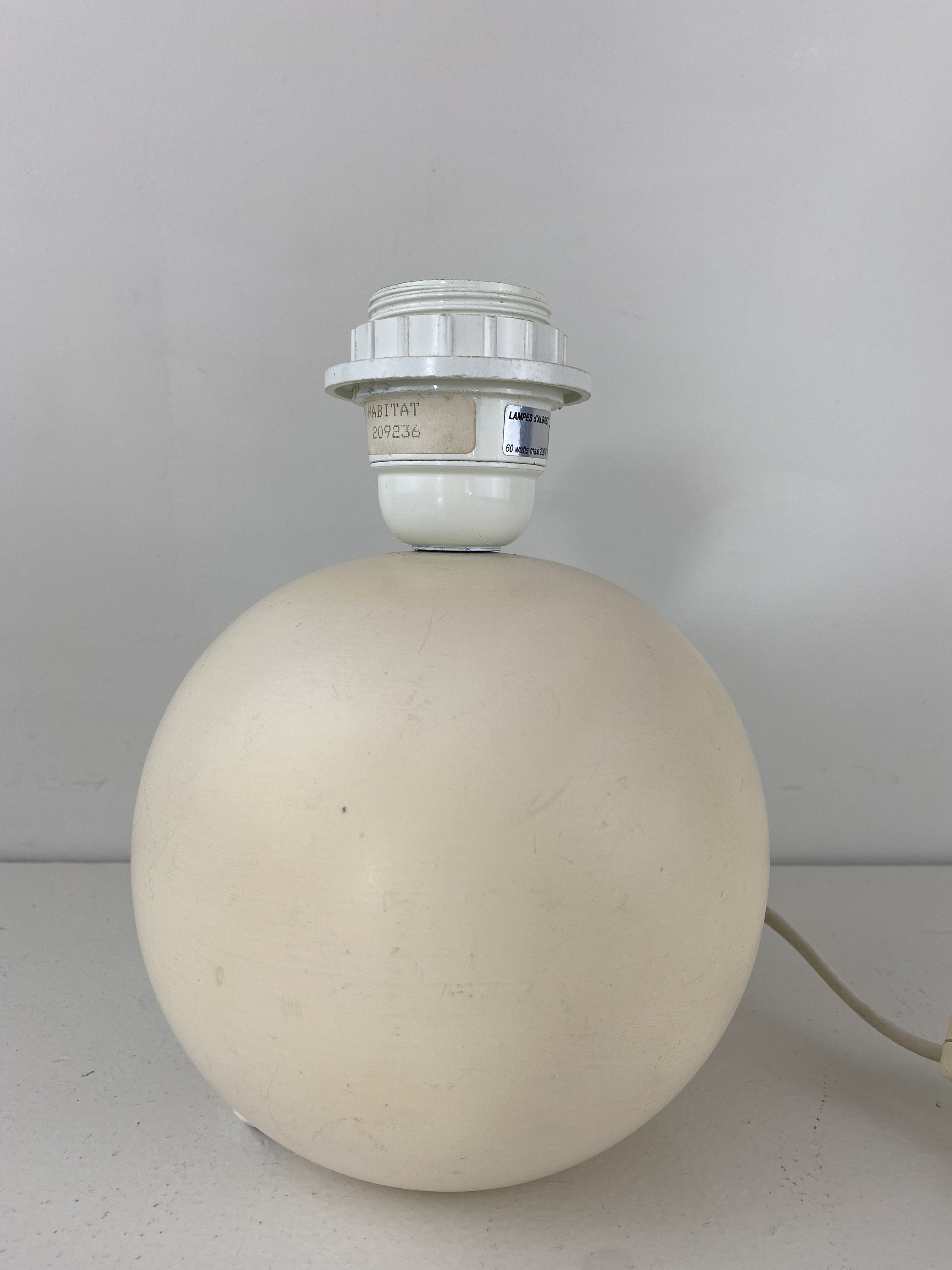Vintage round off white ceramic table lamp BASE, bulbous lamp base from the 1990’s. Marked Habitat on the socket.